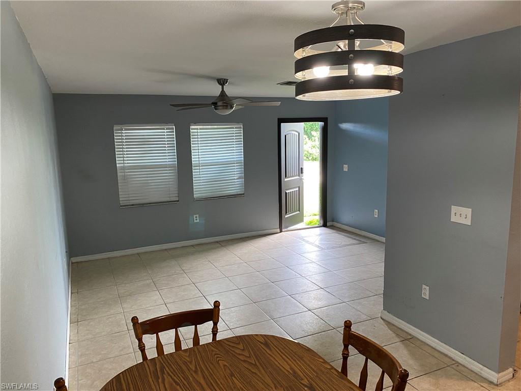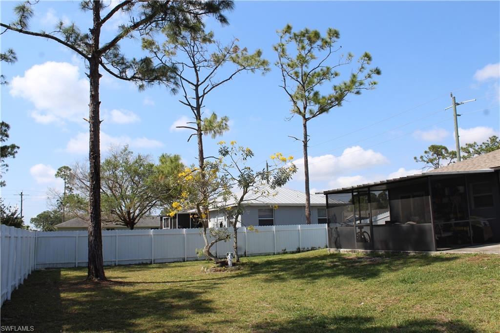 Welcome to this cozy three bedroom, two bathroom home on an oversized lot with a large fenced in backyard. Built in the year 2000, this home features new hurricane impact windows & doors, new roof in 2021, new water system in 2021, new water heater and refrigerator in 2023. Backyard has several fruit trees and is on a small freshwater canal. Warranty for impact windows and doors transfers with property ownership. This home is only two blocks from Route 82 and across the street from Lee County schools with a bus stop in the neighborhood. Excellent starter home for a family. Washer and Dryer do not convey with property. All other appliances are included.
