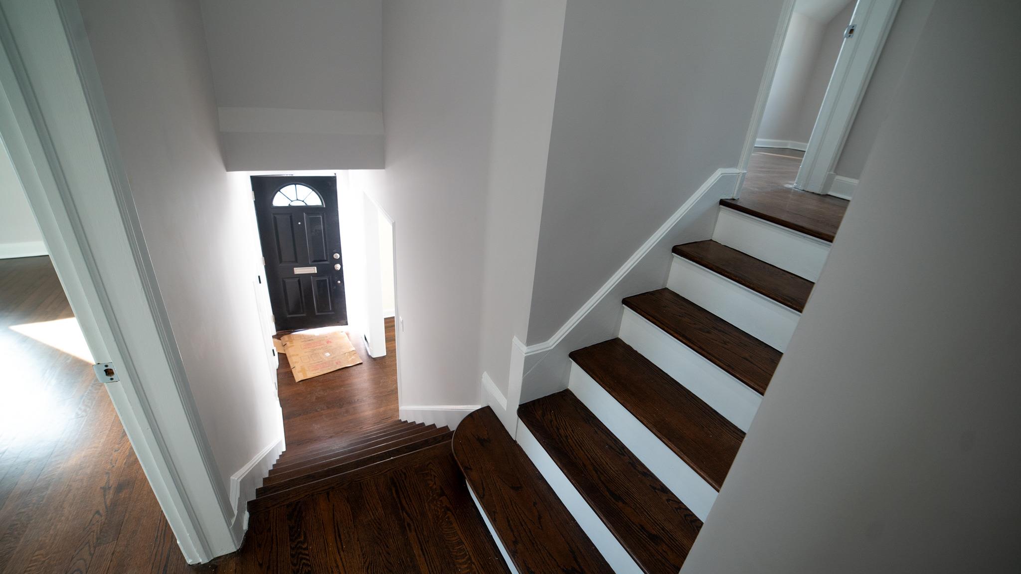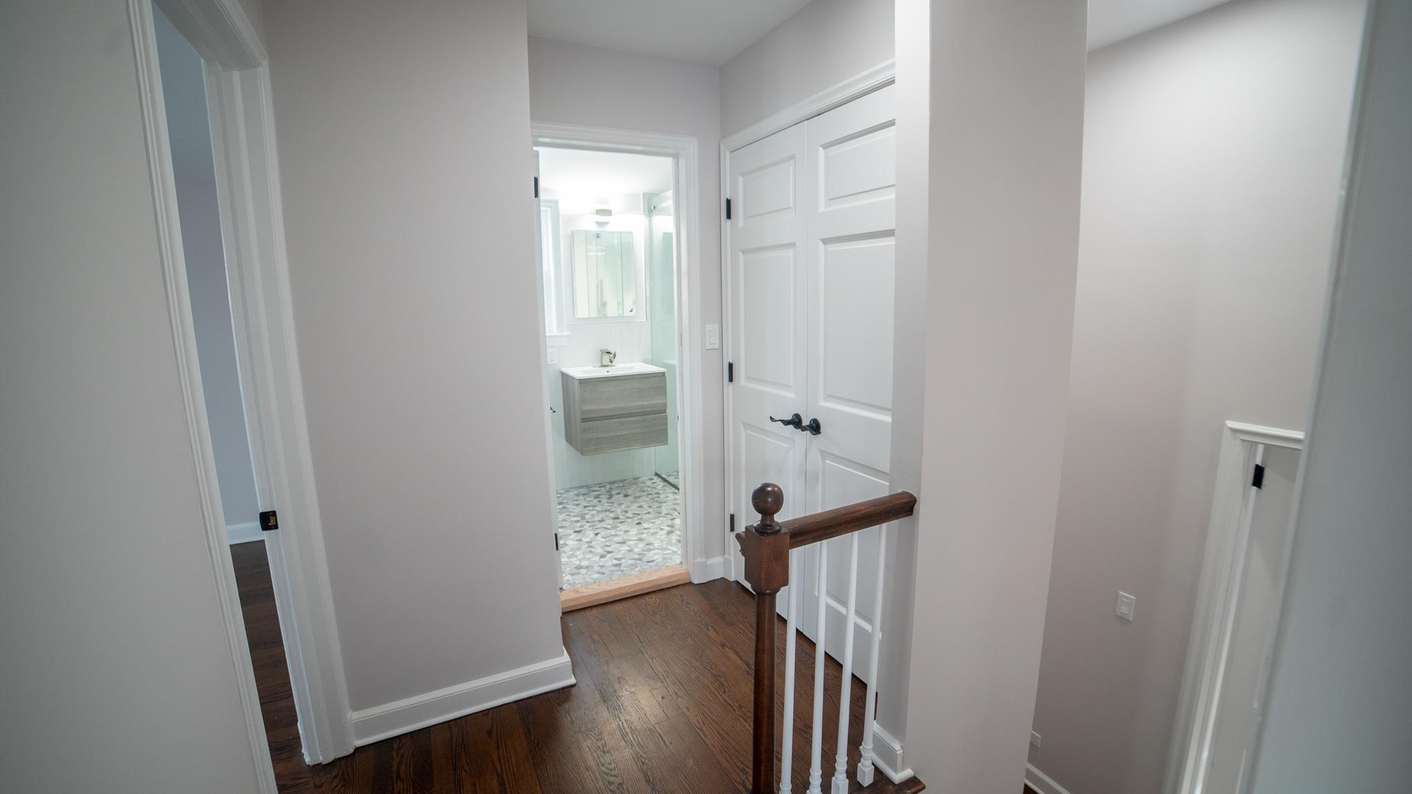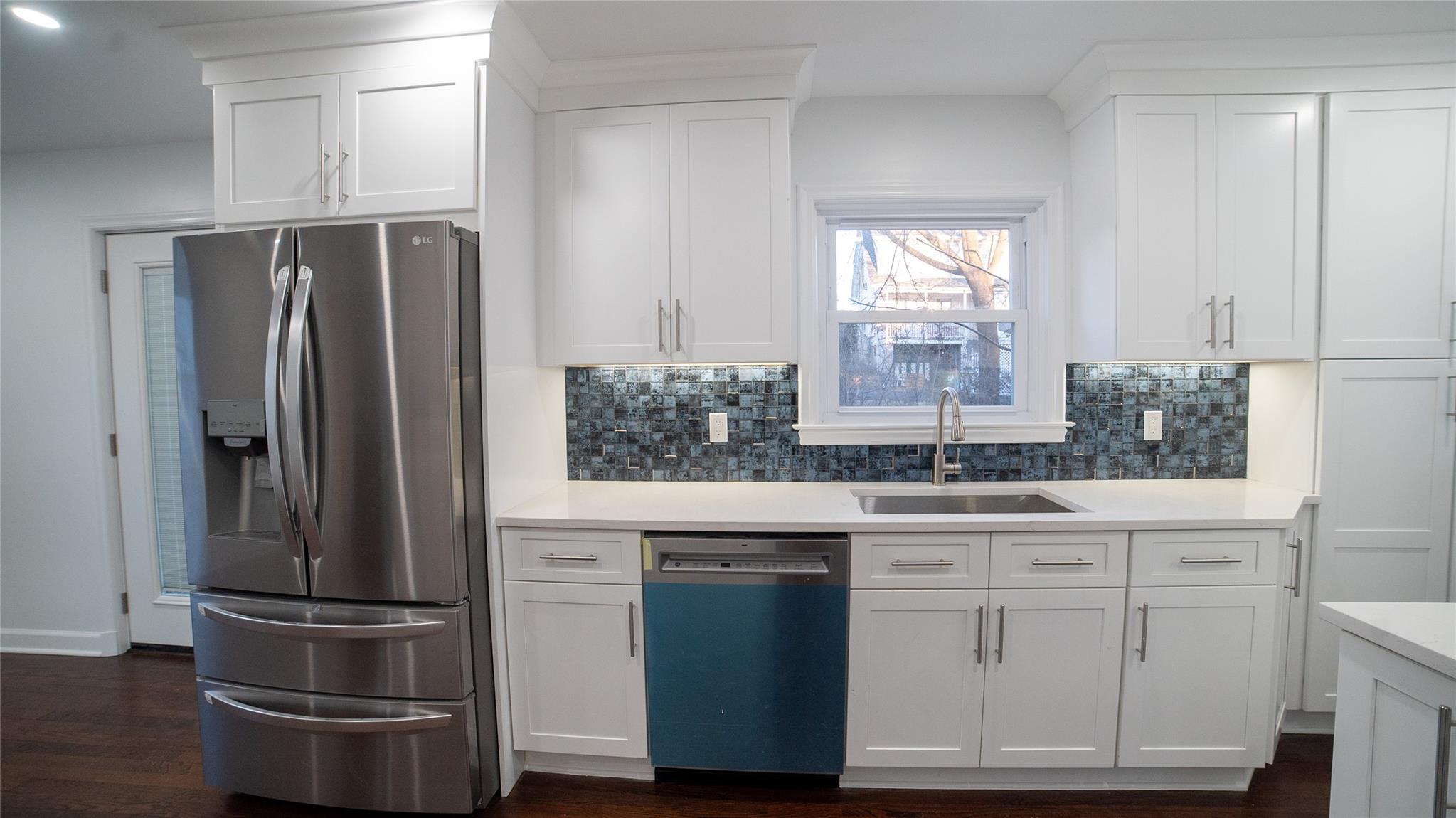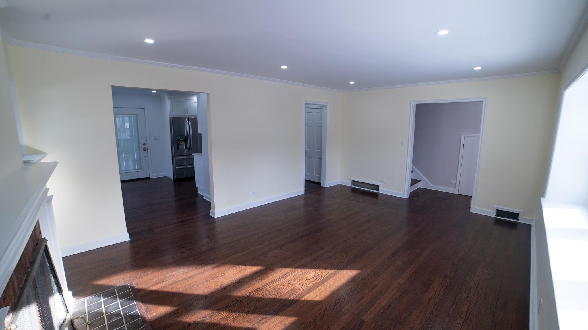 Come and see this exquisite, totally renovated 3 bedrooms/2. 5 baths home on a Cul de sac. It's as if brand new. . . featuring a new boiler and state of the art fixtures in 2. 5 bathrooms with spray jets, handheld shower sprays and rainfall shower heads. Also, fully tiled walls with seamless sliding glass doors in the showers complimented with floating vanities and quartz tops. Step into the inviting foyer area with beautiful hardwood floors continuing to the Living Room well-lit with radiant sunlight, and brand-new energy efficient windows and doors throughout the home; charmed with a rustic brick fireplace with built-ins on either side. The wall colors are soft neutrals giving a sense of elegance enhanced by the ceiling moldings. Enter the sizeable Formal Dining Room which has a door to the patio, juxtaposed to the walkthrough kitchen which has all new stainless-steel appliances, shaker wood cabinets, working counter space, glass-tiled backsplash and quartz countertops - all convenient for the Chef in your family! A door from the kitchen leads to a full unfinished, walkout basement with laundry hook-ups. Leading from the foyer up a few steps is the powder room and then on the other side to the Primary bedroom - its own full bathroom, walk-in closet and ceiling fan. There are two hall closets. Going up a few more steps are 2 sizeable bedrooms with ceiling fans. There is an upscale full hall bath with modern fixtures. This home boasts recessed lighting throughout and modern light fixtures. There is a patio area in the rear leading from the Dining Room. Lots of yard space to do some special plantings and entertaining. This home can be easily converted to Central Air conditioning as the vents are in place already. A dream house to live in!