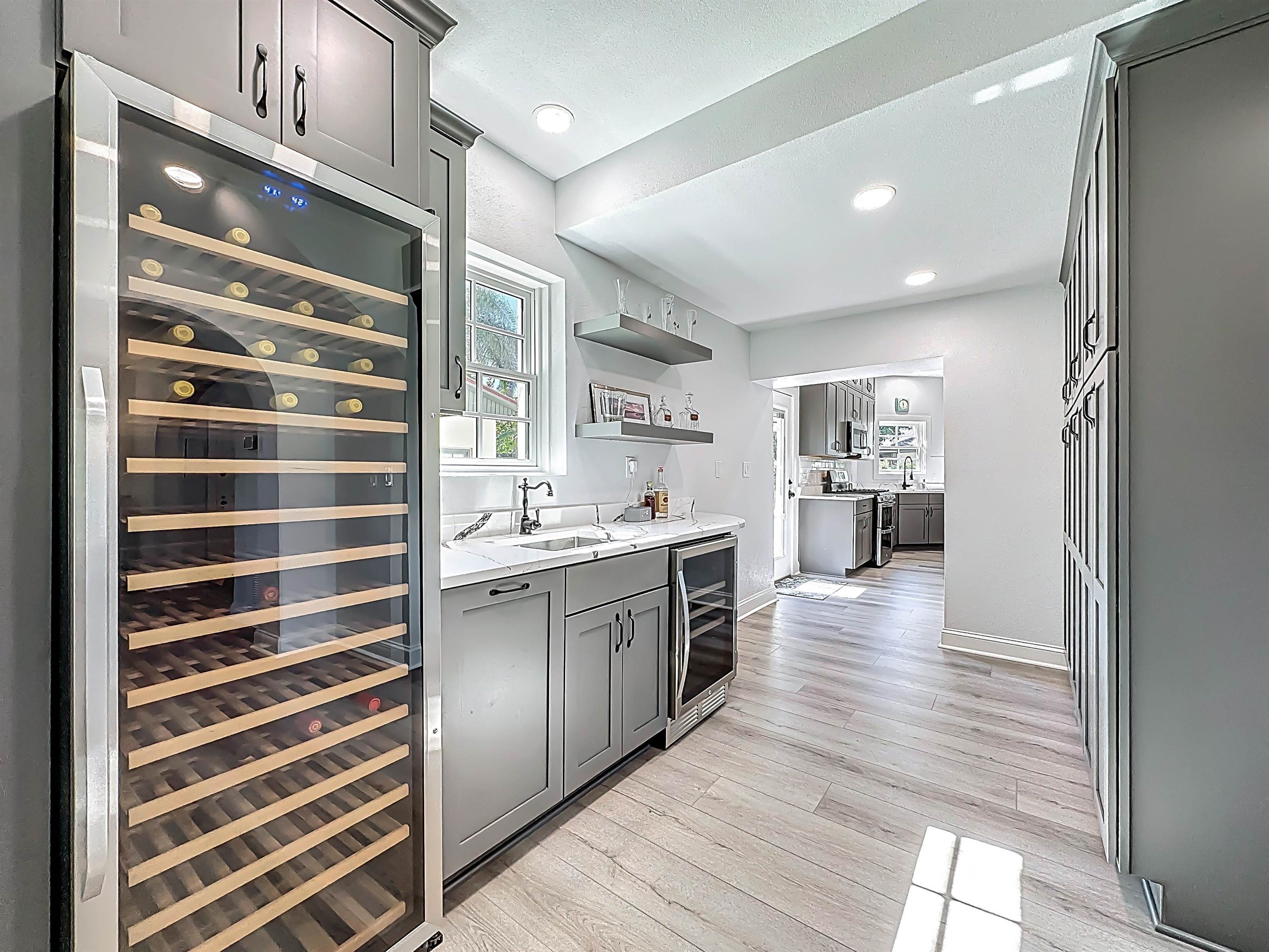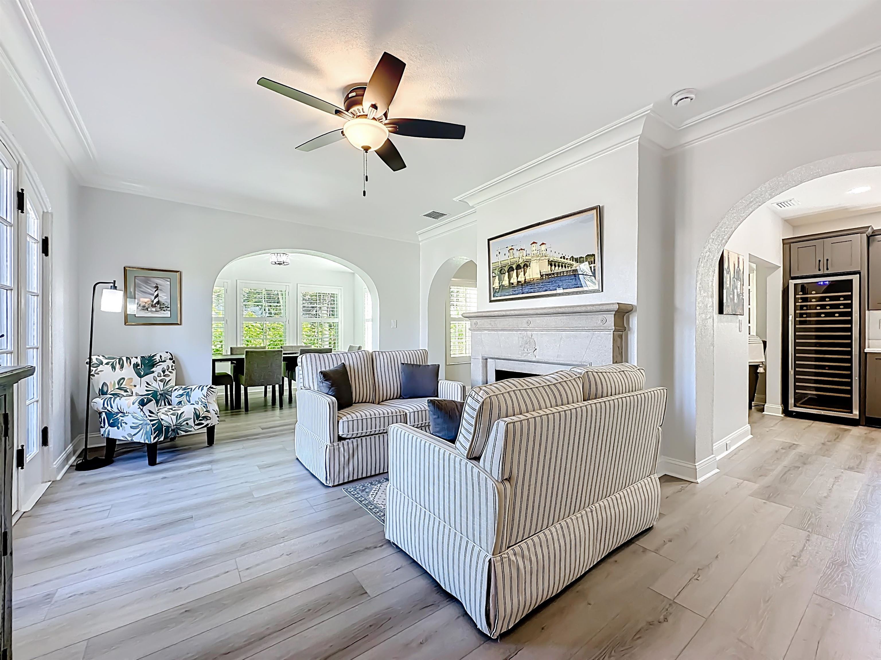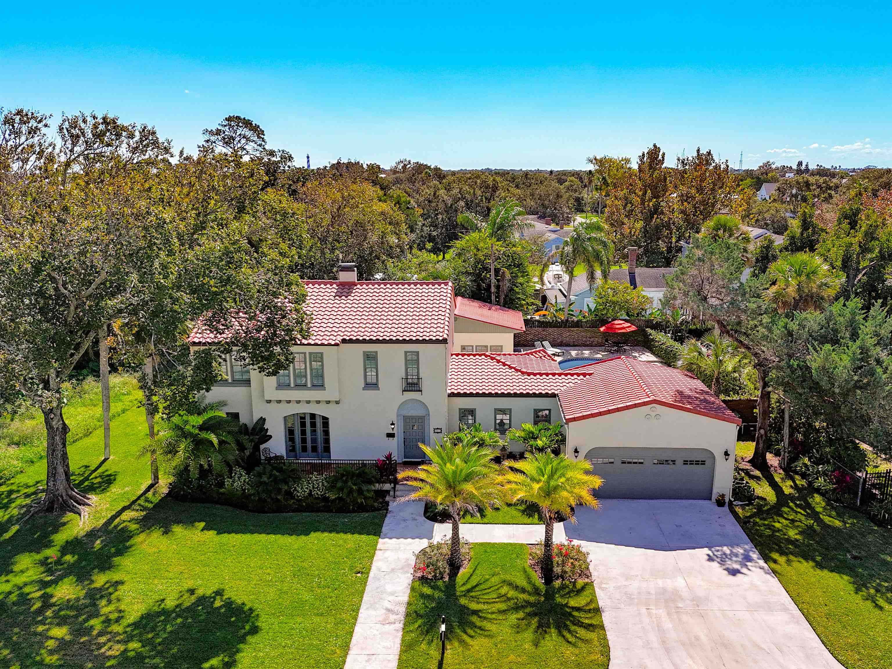 New Meets Olde! This incredibly rare home is one of only eleven that the original founder and developer of Davis Shores D. P. Davis, as well as Davis Island in Tampa, Fl, built and is considered a Landmark. Thought to have been built in the 1920's, it is rich in history but youthful in appearance as the owner has lovingly renovated, remodeled and added quite a bit of square footage, all with its traditional roots and details in mind - restoring rather than replacing treasured pieces such as the antique front entry door and arched glass entry doors with period etchings and carvings and true coquina fireplace with carved nautical details. From the moment you step inside you'll feel the rich history of this home while being surprised by its modern and spacious layout. The owners, after a thorough inspection, had it completely stripped down to the bare walls and started from there. The exterior of the home was completely refinished with new stucco added. All of the old plumbing, electrical, heating and AC systems, windows and interior doors were removed. Then the home was completely re-wired and had new light fixtures and ceiling fans installed. The Master Bedroom was redesigned to include an ensuite Master Bathroom complete with all new plumbing, plumbing fixtures and custom cabinetry to match throughout, glass frameless shower enclosure with beautiful neutral tile and a luxurious soaking tub. Second Bathroom was added with the same custom details and conveniently located near the other bedrooms. No worry about running out of hot water heater as hot water is supplied by a Gas Rinnai instant hot water system. A new energy efficient HVAC system was installed as well as all new Jeld-Wen windows with wood clad 4 over 4 glass panels, to maintain the original style and aesthetic of this home. New interior doors and hardware, as well as engineered flooring were installed throughout. Keeping with the original design of this gorgeous home, a new Barrel Type roof was also installed. A new spacious addition was added to provide a modern large kitchen which features center island, custom cabinetry, beautiful quartz countertops and subway tile backsplash, new GE appliances and a separate Wet Bar/Butlers Pantry with floor to ceiling cabinetry, and Wine Storage unit, beverage refrigerator and an additional sink. This addition also includes a Mud room, Laundry Room, downstairs Powder Room, as well as a large double car garage. This new addition was constructed and designed to keep the original style and integrity of the home and flows together beautifully. This wonderful home also has a large inground pool that was completely restored back to its original glory and included new pool equipment. The addition of brick pavers makes the pool deck come to life and created a large outdoor entertaining space that your friends and family will never want to leave. The detached building at the edge of the pool will have your imagination running wild with ideas. . . a Pool Cabana, Mother-in-Law's Quarters, Game Room, Small Apartment. . . and was left for you to design and create the space that fits your family's needs. Beautifully furnished with all new furnishings, beds and artwork that are included in the sale. The owner worked with a local nursery and landscaper to design a tropical oasis while maintaining a traditional vibe. This landscape package included a new Irrigation system with water supplied by a deep water artesian well. This gorgeous home presents you with the opportunity to own a piece of not only Davis Shores history, but St. Augustine history as well. This dream location offers a short stroll over the Bridge of Lions to numerous restaurants, coffee shops, bars and entertainment, historical sites, art galleries and our landmark college, Flagler College, all with no need to worry about where to park. Bike to the beach whenever the sun and sand call you or to concerts and the Saturday Farmers Market at the Ampitheater. Pack a picnic basket and enjoy sunrise or sunsets from our beloved Old Fort. Try Standup Paddleboarding or launch your boat in Salt Run. Climb the steps of our historical Lighthouse. The opportunities are endless! Square footage has been estimated to include the new addition. Buyer should verify all pertinent information such as square footage, room measurements, etc. Seller is a Licensed Florida Real Estate Broker. **3D Tour available at https: //www. zillow. com/view-imx/34c93ebc-a301-4937-8eb6-ac679d75b6b3?setAttribution=mls&wl=true&initialViewType=pano&utm_source=dashboard