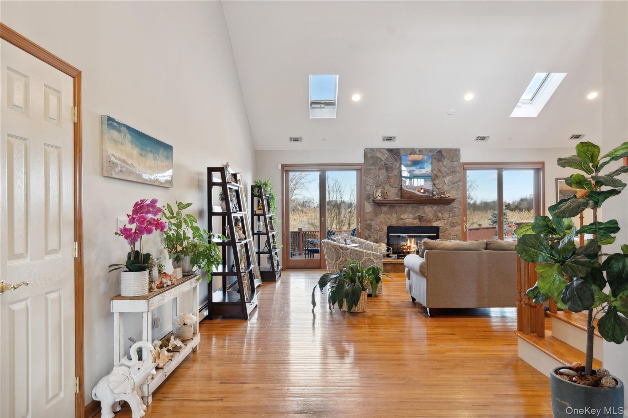 This stunning 14-room, 6-bedroom, 4. 5-bath, 6, 100 SqFt ranch-style home, built in 2001, offers breathtaking water views and a flexible floor plan, perfect for extended family or a home business. Nestled on a picturesque 1. 9-acre property, this luxury residence features soaring ceilings, hardwood floors, and an abundance of natural light. The grand entry foyer leads to an open-concept eat-in kitchen with stainless steel appliances, a center island, and Corian countertops, seamlessly flowing into the spacious living room with a gas fireplace. A formal dining room adds elegance, while a private spare room provides versatility as an ideal office or playroom. The master suite is a true retreat, boasting a walk-in closet and a newly renovated spa-like master bath. A loft area serves as a perfect recreation room, exercise room, or guest quarters. Designed for comfort and convenience, this handicap-accessible home features radiant heat, 2-zone central air conditioning, a central vacuum system, and a Generac generator for peace of mind. The huge basement and extensive storage space ensure ample room for all your needs. Outside, a solar-heated gunite inground pool and hot tub create the perfect outdoor oasis, complemented by a charming front porch and a circular driveway leading to a 3-car attached garage with 300-amp service. Many recent updates include new CAC units (2021 & 2023), a new roof (2020), a young boiler, and most appliances replaced in 2021. With breathtaking views, modern amenities, and an unbeatable location by the water, this exceptional home is a rare find.