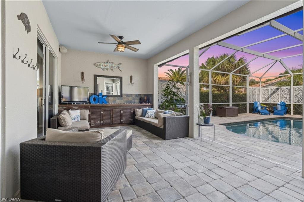 Move-in ready with the major upgrades already done — this Mahogany Run pool home features a whole-home repipe (2024), new A/C with 10-year warranty (2021), new water heater (2024), newer roof (2018) and porcelain tile flooring throughout the main living areas (2022). The layout features a split bedroom floorplan with the master suite on one side, two bedrooms sharing a guest bath on the other, and a fourth bedroom at the front of the home that works equally well as a private office, den or guest room. The master suite overlooks the pool and includes a completely renovated bathroom (2024) with updated tile, vanity and modern finishes. Nearly 2, 400 square feet of living space includes a kitchen with dark wood cabinetry, granite countertops, stainless steel appliances, walk-in pantry, and breakfast bar open to the main living area, plus a custom laundry and mudroom (2023) with butcher-block counters. Outside, one of the largest saltwater pools in the neighborhood features custom lighting, upgraded controls and decorative privacy panels, surrounded by an oversized screened lanai with patina-finished cabinetry (water line in place for an optional sink) and room for multiple seating areas — plus a fire pit patio beyond the cage. Full hurricane protection is already installed with roll-down shades, accordion shutters, clear storm panels and generator hookup, and the oversized garage accommodates up to a 17. 5-foot boat. Located within the guard-gated golf course community of Gateway Greens, with tree-lined streets and mature landscaping, just minutes from I-75, RSW Airport, JetBlue Park, shopping and dining. HOA includes TV and internet through Comcast. Community amenities are offered through optional membership at The Club at Gateway, where residents may choose to enjoy golf, tennis, pickleball, fitness, dining, swimming, a dynamic social scene and much more. For buyers who want a home where the work is already done, this is it. Virtual walkthrough available 24/7 for convenience.