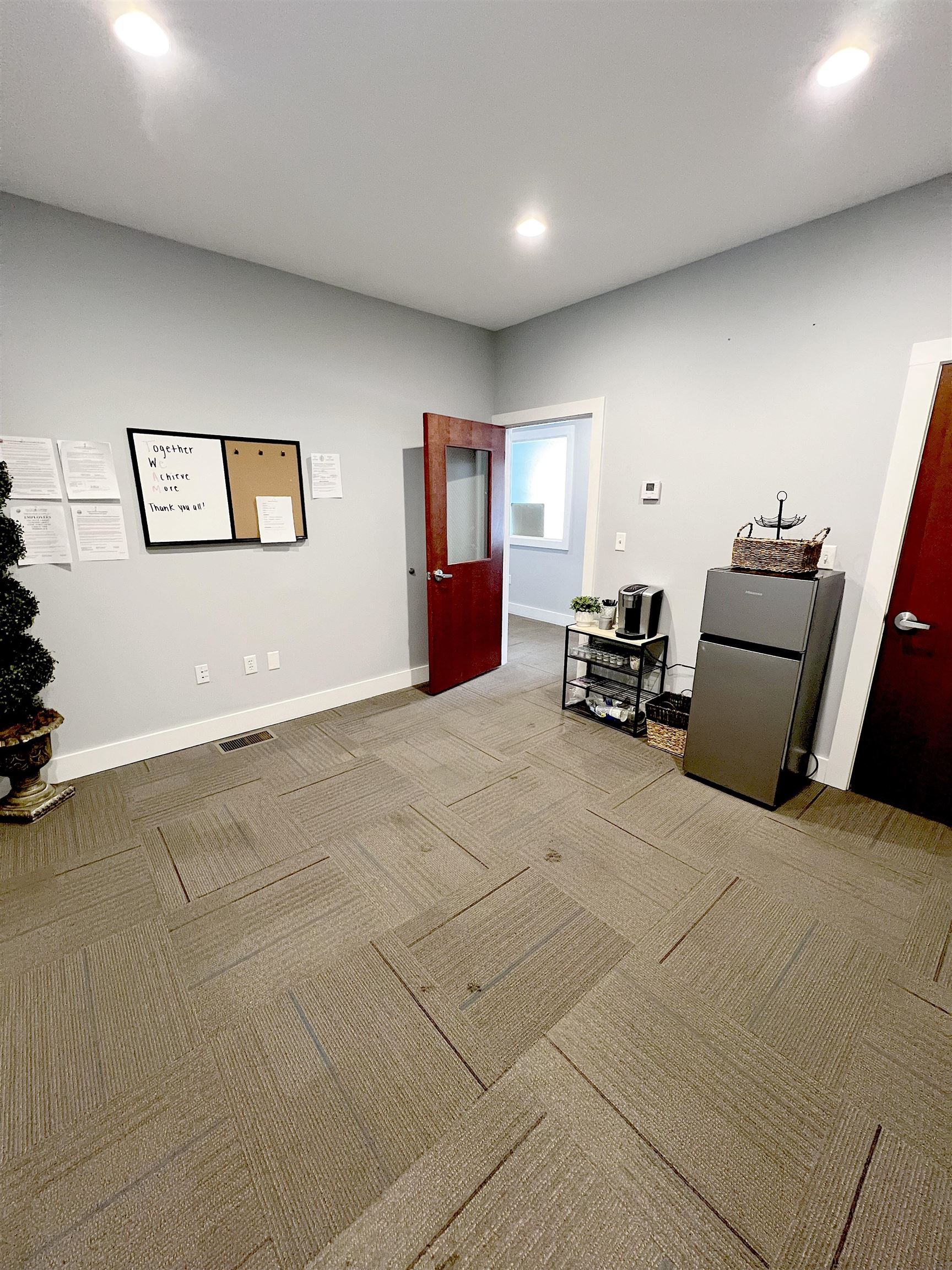 4 Private Offices in the upper space (One with attached half bath) and a 5th Office, Half Bath and 32' L x 20' W Garage Bay on the First Level. The Garage Door has an Impressive 18' x 14' Garage Door to accommodate large equipment or vehicles. Plenty of space for Shelving, Storage or Inventory. 8 Parking spaces, 2 Large L Shaped Desks and UTILITIES are Included! Broker Interest. Make an Appointment for a showing today!