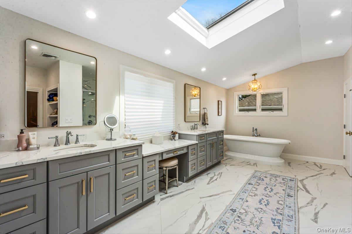 Recent Price Improvement! This home is full of unexpected surprises – A must-see in person to truly appreciate the updates throughout, bright & sunny interior, spacious floorplan, and craftsmanship. Old Canterbury stunning sprawling home. Welcome to this exceptional residence, the epitome of luxury living. This expansive home features four generously sized bedrooms, each with its own bath, plus three additional half baths for added convenience. As you enter, you are greeted by a grand foyer and a breathtaking bridal staircase, setting the tone for the elegance that unfolds throughout. The first floor is awash with natural light, pouring through oversized windows and creating a warm, inviting ambiance. The formal living room, with its charming wood-burning fireplace, provides a cozy retreat, while the formal dining room offers the perfect space for hosting memorable gatherings. Culinary enthusiasts and entertainers will fall in love with the spacious, bright kitchen, showcasing pristine white finishes and top-of-the-line stainless-steel appliances, including a Sub-Zero refrigerator, Wolf double wall oven, 6-burner Wolf stove, and 2 Miele dishwashers. A delightful breakfast area completes this kitchen. The sun-filled den offers a peaceful spot to unwind, featuring a cozy fireplace that adds warmth and character. The adjoining dining area flows seamlessly to the backyard through sliding doors, perfect for effortless outdoor living and entertaining. A conveniently located powder room enhances the first-floor layout. Additionally, the first floor includes an en-suite bedroom and a private office, ensuring comfort and convenience at every turn. On the second floor, the spacious and private primary en-suite offers the ultimate sanctuary, designed for both relaxation and ease. It boasts a generously sized walk-in closet with a stackable washer and dryer, while the newly updated spa-like primary bath features a luxurious soaking tub, a rejuvenating 2-person walk-in shower, and elegant double vanities. An additional large en-suite bedroom, a fourth bedroom, and a beautifully appointed hall guest bathroom complete the upper level. The finished basement provides a world of possibilities, featuring a chic recreation area, a wine cellar for connoisseurs, a gym, a convenient laundry room, and an additional bath. Step outside to your private, fully fenced yard, featuring a heated gunite in-ground saltwater pool – perfect for year-round enjoyment. Relax by the firepit or practice your putting skills on the lush putting green. The space is completed with a convenient pool bathroom, accessible through an outside entrance, offering ease and privacy. This tranquil oasis is ideal for both peaceful relaxation and entertaining guests. Don’t miss the chance to make this serene backyard retreat your own!