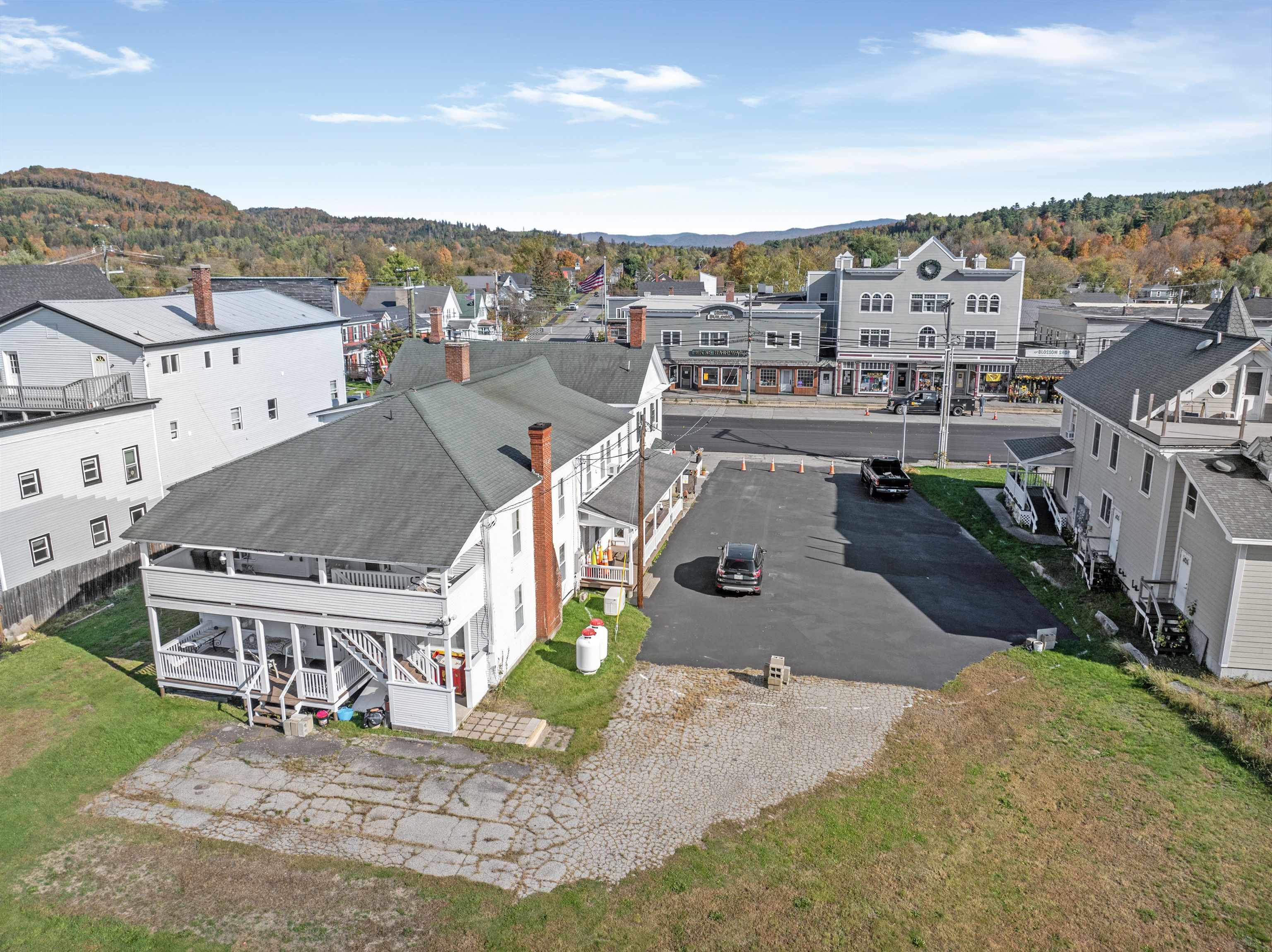 Price Improvement! IMAGINE THE POSSIBLITIES HAVING 1. 4 ACRES OF PRIME LEVEL LAND IN THE CENTER OF TOWN! On Main Street, this well-maintained building with over 6200 sq ft of living space is filled with town history from the first Post Office to a hospital to an inn and tavern to the former Nugent Motor Company and still in the Nugent family. Currently the front commercial space is well appointed and houses "Creative Native", a store filled with crafts, collectables, art, jewelry and beautiful gift ideas. Besides this storefront are 4 other units for added income. 3 of the units have access to the pleasant, covered porches in the rear. One unit used for the owner's living quarters has direct entry to the garage. Maintenance & updates include a new storage shed, freshly painted exterior, standby generator and an extensive video surveillance camera system. With the amount of land included there is potential for unique commercial development. Possibly a motel, private restaurant, popular food chain or store, keeping the existing building for income and building a new residence in the back. The land is actually 2 parcels combined. There is so much here to work with to make your ideas a realization! The new price, the location and the size of this property downtown makes it worth your consideration.