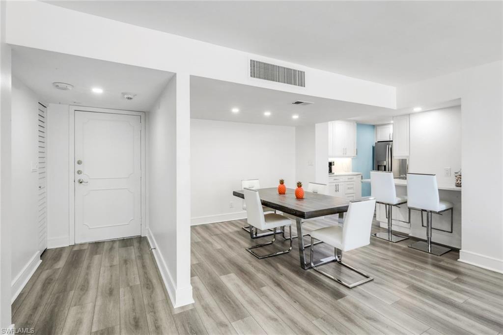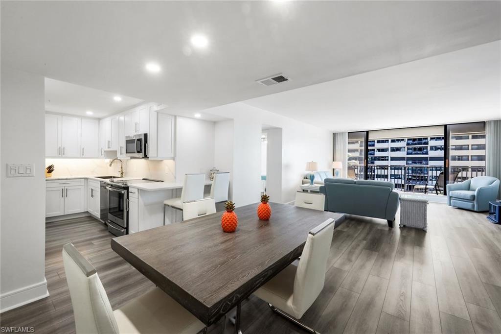 Upon entering, you are greeted by a welcoming atmosphere, where the salty breezes and toes in the sand beach access creates an instant sense of relaxation. The living area, bathed in natural light streaming through sliding glass doors to your private balcony allowing you to bask in breathtaking sunsets with Southwestern exposure. Modern design elements are seamlessly integrated throughout the interior, offering a stylish and contemporary living space waiting for you to add your personal finishing touches. A fully equipped kitchen invites culinary creativity, offering modern appliances and ample storage space for all your beachside dining essentials. The primary suite offers a peaceful sanctuary accented by quartz counters, a marble surround, & dual sinks. Discover the perfect blend of beachside living and easy access to everything Naples offers. Gulfside is perfectly positioned on the picturesque sugar sand beaches of the Gulf while walking distance to waterfront dining, and boutique shopping at the Village on Venetian Bay. The Waterside Shops, including Saks and other luxury venues, are only 1. 5 mile away, while superb shopping and restaurants on Naples' 5th Avenue are just a 10-minute drive. Don't wait to enjoy your very own slice of paradise!