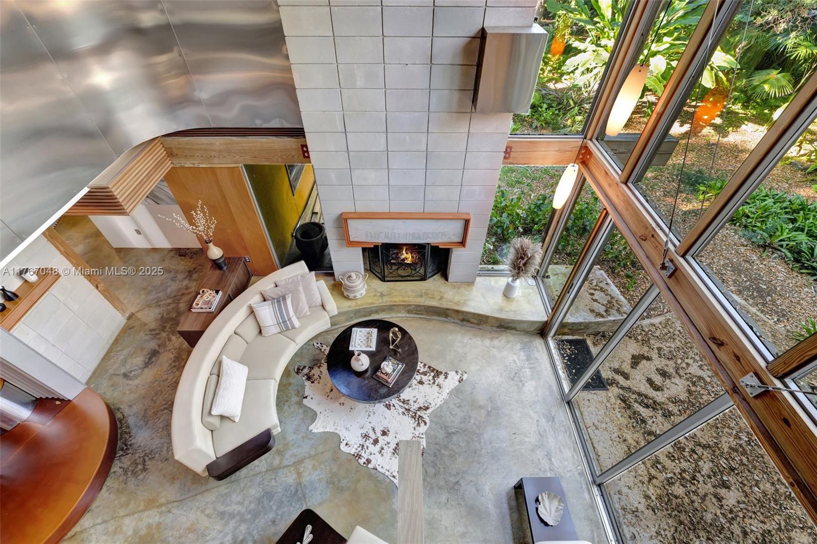 "The Fox Den, " an architectural masterpiece by Scott DiStefano, blends contemporary design with organic materials in the Frank Lloyd Wright tradition. This 4-bedroom, 3. 5-bath home sits on a 10, 500 sq ft wooded lot in Riverland Woods. Features include exposed concrete, timber framing, copper fascia, and stainless steel elements throughout. The versatile floor plan offers a loft space and attached studio/office with separate entrance. Custom built-ins and strategic windows frame views of the landscaped grounds. Distinguished by galvalum cladding and corrugated metal, the home boasts concrete floors and appliances. Located minutes from downtown Fort Lauderdale, this internationally recognized residence represents organic contemporary architecture at its finest.