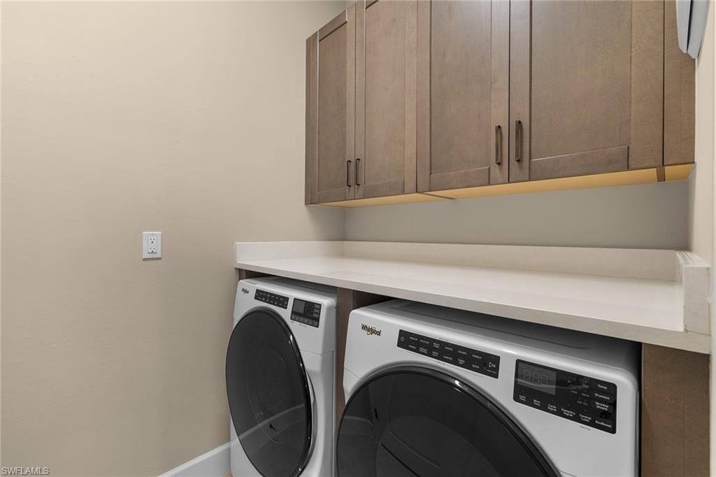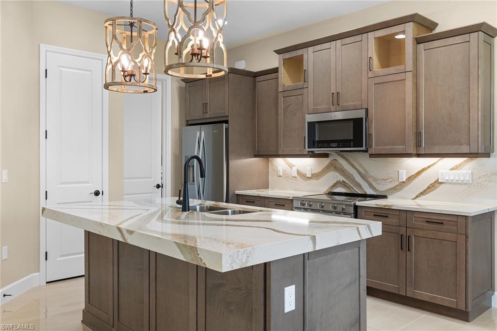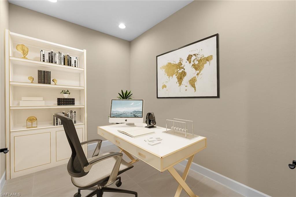 Exceptional, never-lived-in home in a quiet cottage enclave at Isles of Collier Preserve. Welcome to 7282 Saona Court, a beautifully upgraded residence in a peaceful enclave of cottages in sought-after Isles of Collier Preserve. This two-bedroom plus den, two-bath home stands apart with an impressive collection of premium upgrades that elevate style and comfort. Thoughtfully designed with soaring ceilings and an airy, light-filled layout, the home showcases designer tile flooring throughout and custom millwork that adds refined architectural detail. The chef’s kitchen is a centerpiece, featuring high-end stainless steel appliances, thick-cut quartz countertops, custom cabinetry and a generous island, ideal for everyday living and effortless entertaining. The primary suite is a serene retreat, offering spa-inspired finishes and designer fixtures that create a luxurious escape. Go outside to the private lanai, where lush landscaping and tranquil views enhance the home’s peaceful setting, ideal for morning coffee or evening relaxation. Residents of Isles of Collier Preserve enjoy an exceptional resort-style lifestyle with a state-of-the-art clubhouse, fitness center, pickleball and tennis courts, resort-style pool with lap lanes, on-site dining, scenic biking and walking trails, and kayaking. Ideally just minutes from downtown Naples, fine dining, luxury shopping and world-class beaches, this impeccably upgraded home presents a rare opportunity to enjoy luxury coastal living in a quiet, intimate setting. Photos in this listing have been virtually staged.