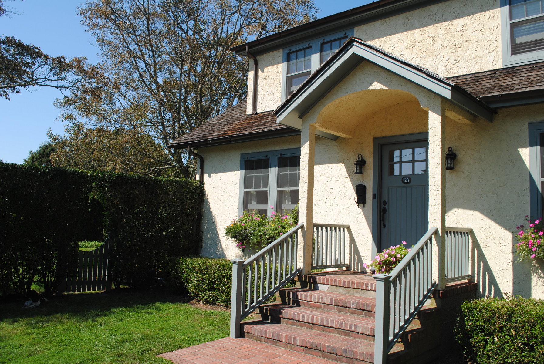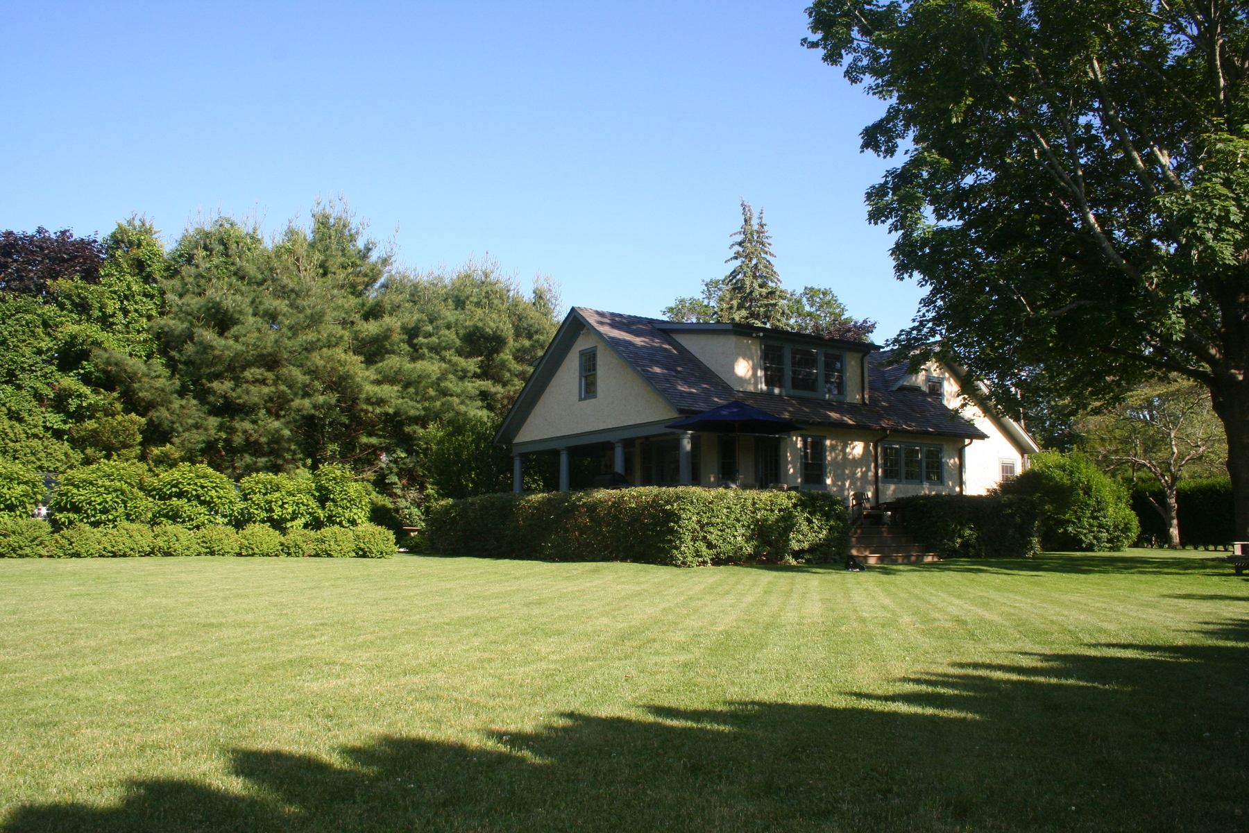 Super village location on very quiet street. Architects own, has been totally renovated to a very high standard. This two story features a living room with fireplace, separate dining room, eat-in chef's kitchen, four bedrooms, two and one half baths, central air, covered porch, pool and great grounds. Steps to train, jitney, shops and restaurants. Great family home.