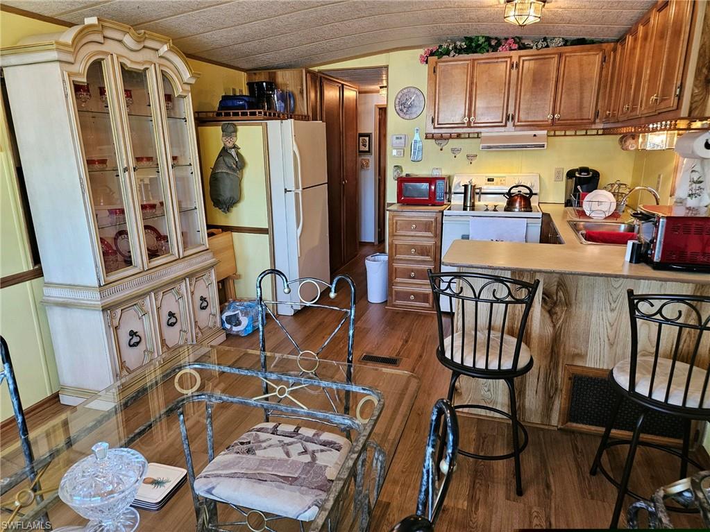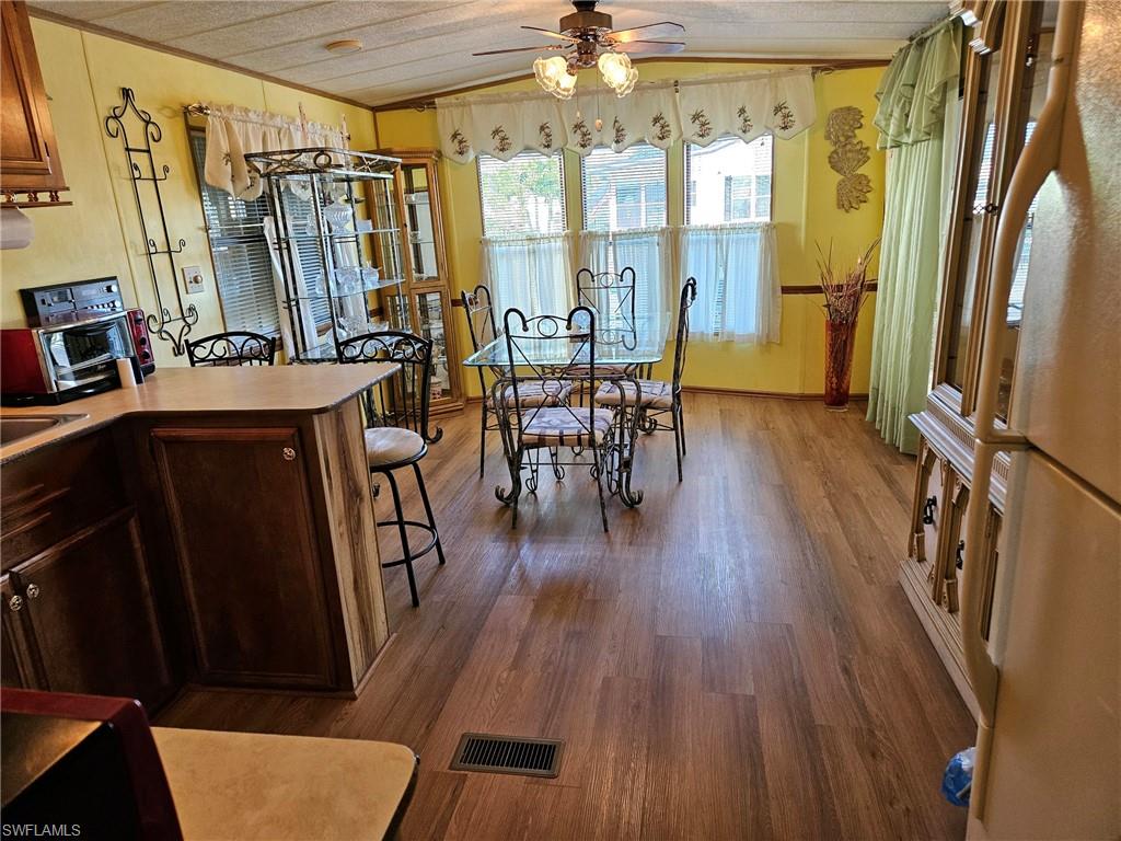 PERFECT WINTER GET AWAY OR SWEET YEAR ROUND RESIDENCE FEATURING LARGE KITCHEN/DINING ROOM, SPACIOUS LIVING ROOM AND TWO FULL BATHS, 1 BEDROOM, WITH BEAUTIFUL WOOD LAMINATE FLOORING. ENOUGH PARKING FOR TWO VEHICLES AS WELL AS A PRIVATE PATIO OUT BACK. ENCHANTING SHORES IS AN EXTREMELY WELL MAINTAINED AND MANAGED 55 PLUS RETIREMENT PARK WITH MULTIPLE AMENETIES AND ACTIVITIES AS WELL AS HAVING ACCESS TO THE GULF OF AMERICA. BOAT PARKING IS AVAILABLE FOR A NOMINAL ANNUAL FEE. ESC IS CENTRALLY LOCATED BETWEEN DOWNTOWN NAPLES AND ITS GLAMOROUS STORES, EATERIES AND BEACHES AND LOVELY, POPULAR MARCO ISLAND AND ALL IT HAS TO OFFER. THIS IS AN AFFORDABLE CHOICE TO LIVE THE HIGH LIFE IN ONE OF THE MOST POPULAR VACATION SPOTS IN THE COUNTRY.