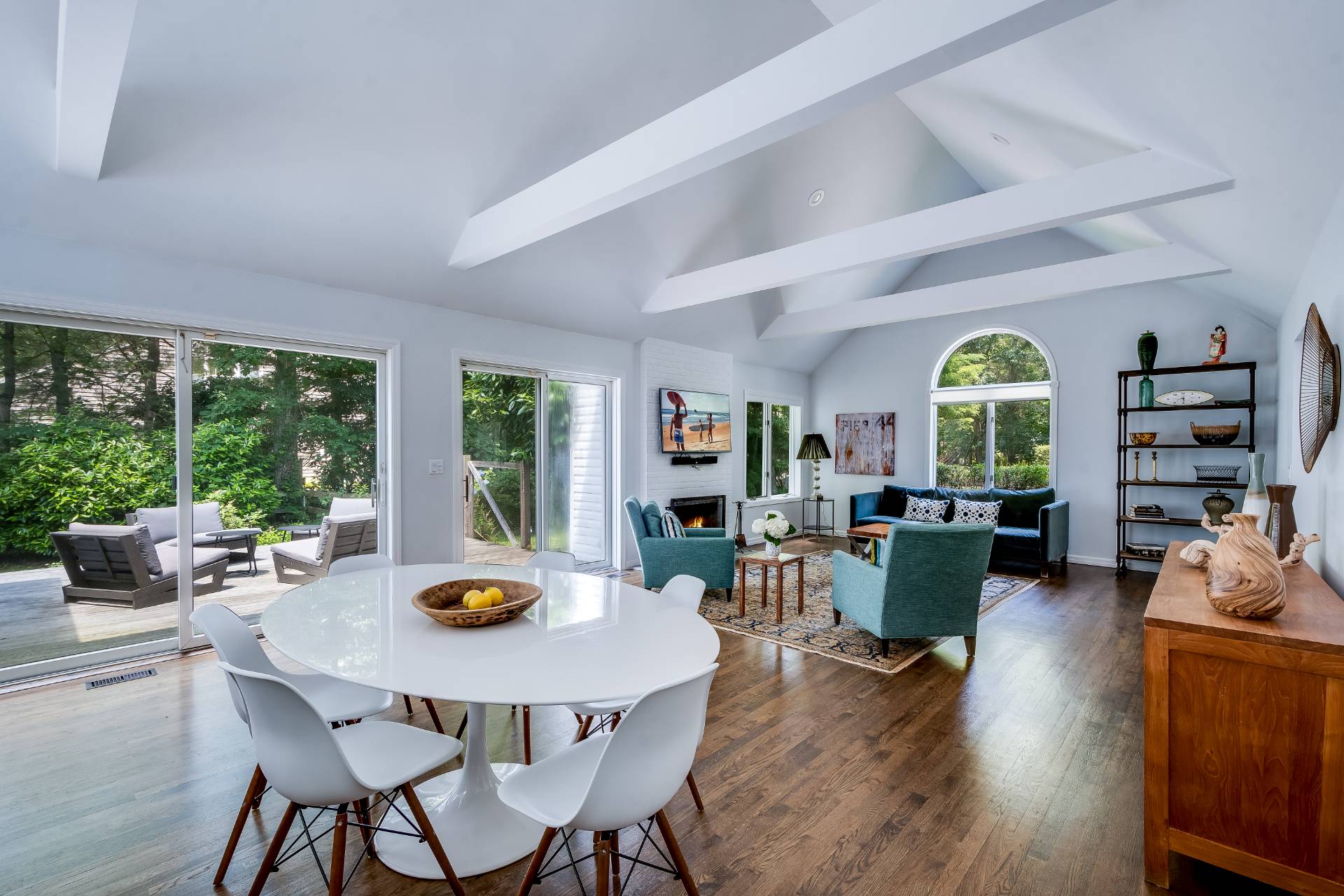New renovated three bedroom, three bath home at 44 Tansey Lane Bridgehampton. Open gourmet kitchen and living/dining space with vaulted ceilings. CAC and heated pool backing reserve. Located in a quiet cul de sac in private community. Two week minimum weekly rental.