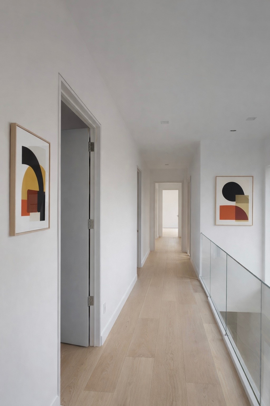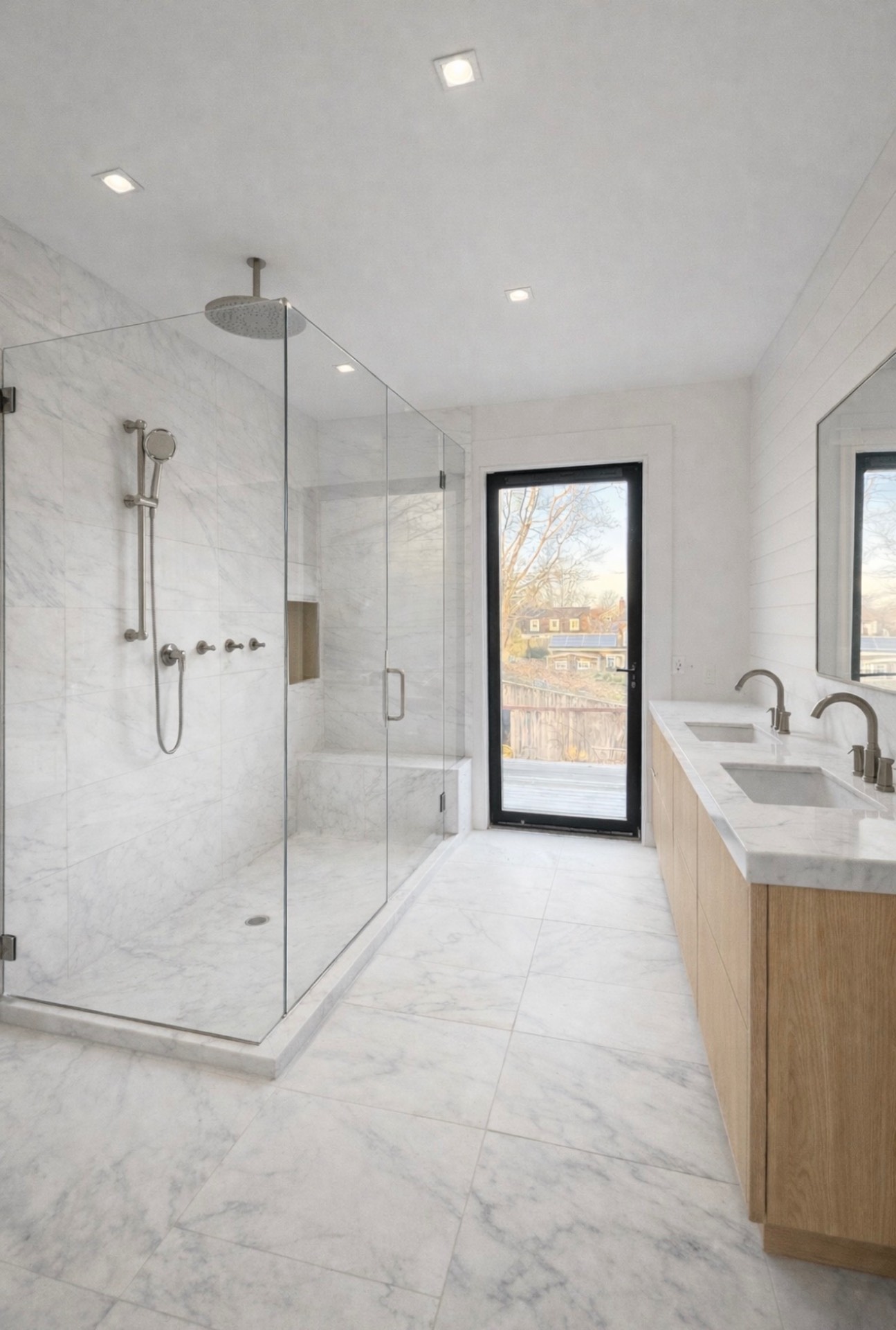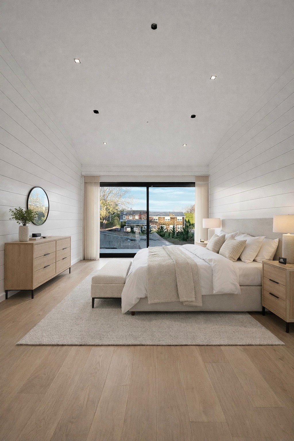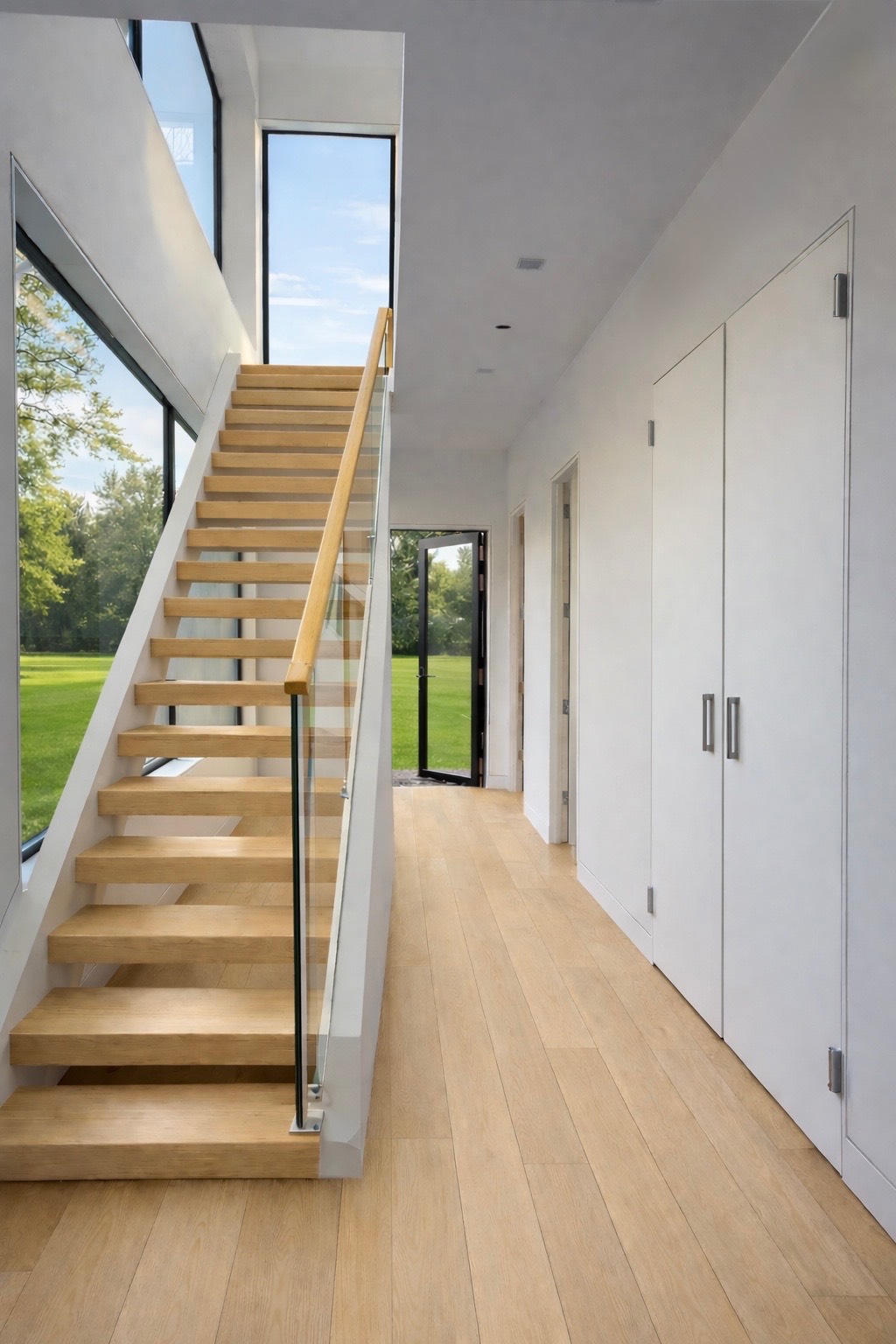 This newly custom-designed 2, 514 SF home offers 4 bedrooms and 4 baths, featuring a separate one-of-a-kind oversized barn with 18-foot ceilings. A striking 8-foot by 4-foot pivot door opens to an expansive open-concept floor plan with 10-foot ceilings throughout. The modern kitchen is equipped with Subzero appliances and can be tailored with the buyer's choice of materials and finishes. Throughout the home, wide-plank engineered oak flooring and sleek, minimalistic wood trim create a sophisticated atmosphere. The upper-level primary bedroom and bath are generously sized, complemented by three additional guest bedrooms, each with its own en suite bath. The upper level also includes a laundry room and a versatile office/den, featuring floor-to-ceiling windows that flood the space with natural light. The outdoor space boasts a heated Gunite pool with marble coping and a rear IPE wood deck. The lower level, with its 10-foot ceilings and walkout area, offers an additional 900 square feet of space, ready to be customized to fit the new owner's needs. Large 8-foot glass sliders bring even more light and a seamless connection to the outdoors.