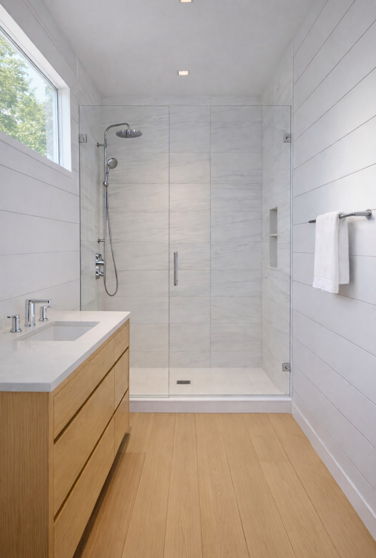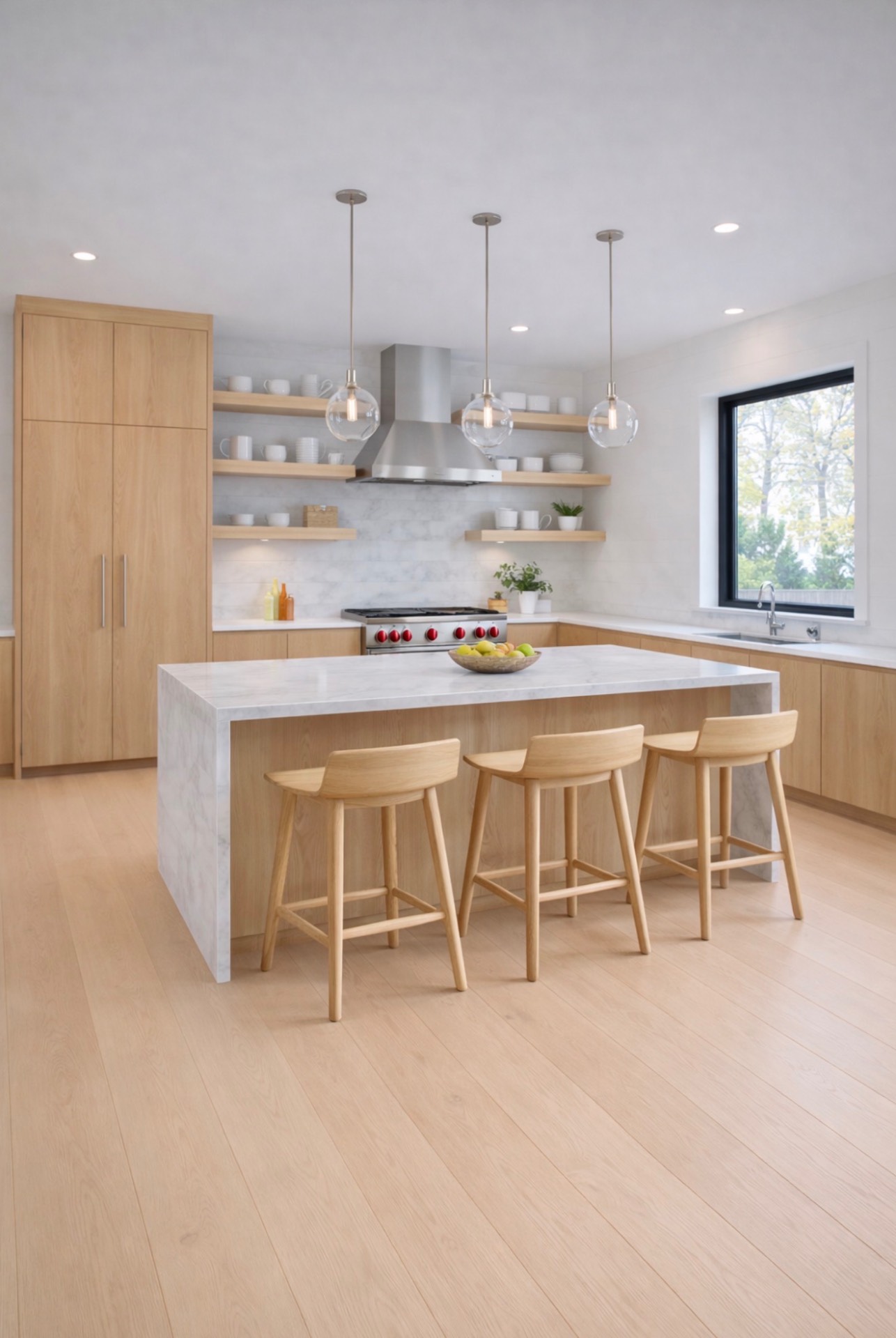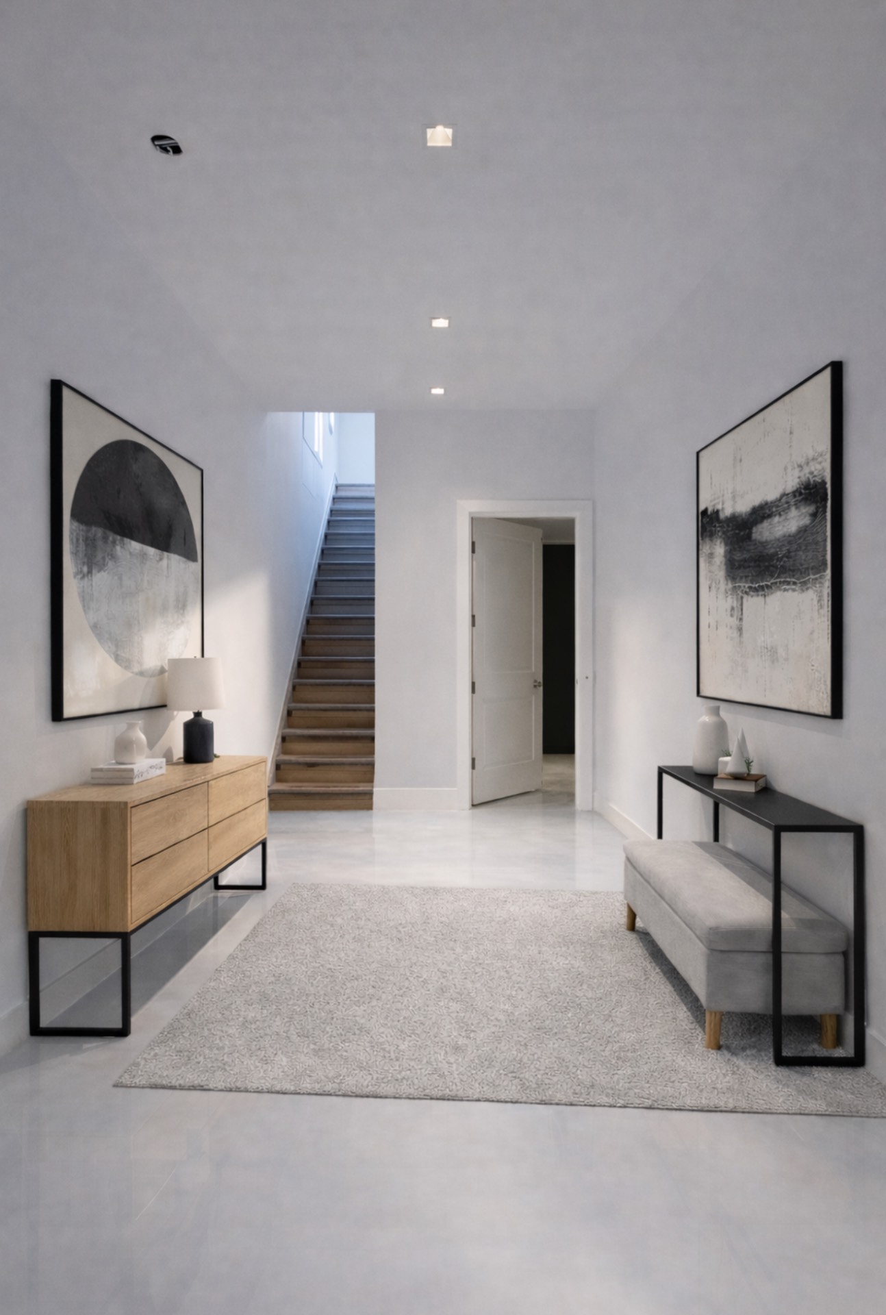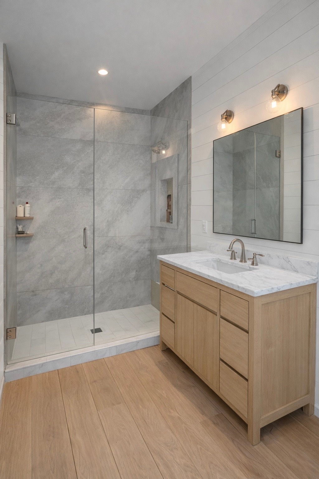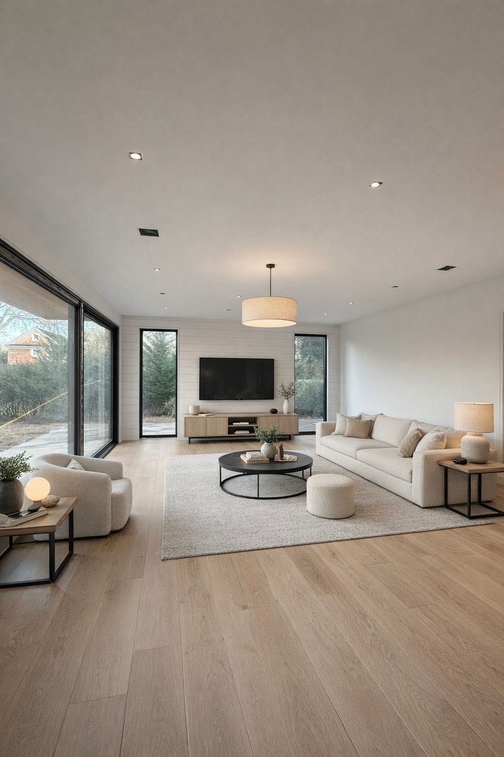 This newly custom-designed 2, 514 SF home offers 4 bedrooms and 4 baths, featuring a separate one-of-a-kind oversized barn with 18-foot ceilings. A striking 8-foot by 4-foot pivot door opens to an expansive open-concept floor plan with 10-foot ceilings throughout. The modern kitchen is equipped with Subzero appliances and can be tailored with the buyer's choice of materials and finishes. Throughout the home, wide-plank engineered oak flooring and sleek, minimalistic wood trim create a sophisticated atmosphere. The upper-level primary bedroom and bath are generously sized, complemented by three additional guest bedrooms, each with its own en suite bath. The upper level also includes a laundry room and a versatile office/den, featuring floor-to-ceiling windows that flood the space with natural light. The outdoor space boasts a heated Gunite pool with marble coping and a rear IPE wood deck. The lower level, with its 10-foot ceilings and walkout area, offers an additional 900 square feet of space, ready to be customized to fit the new owner's needs. Large 8-foot glass sliders bring even more light and a seamless connection to the outdoors.