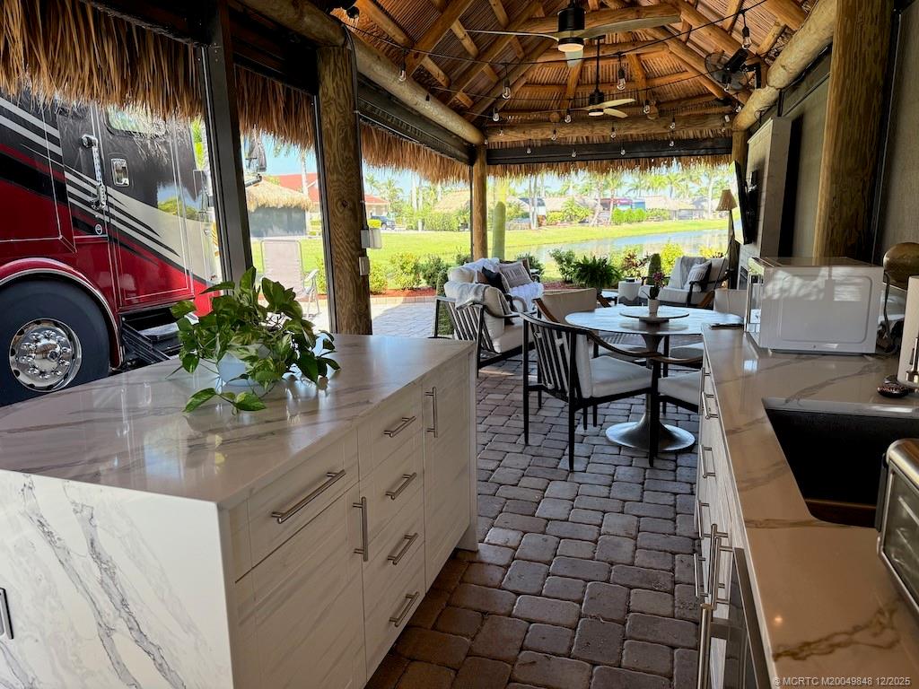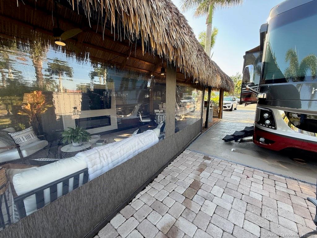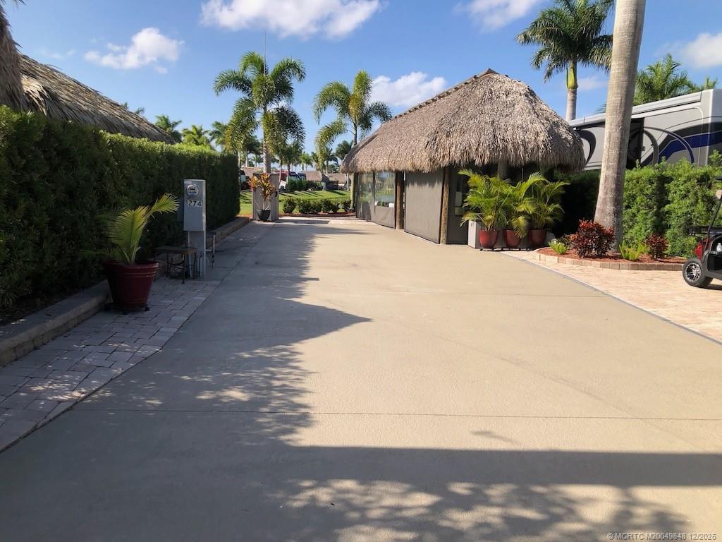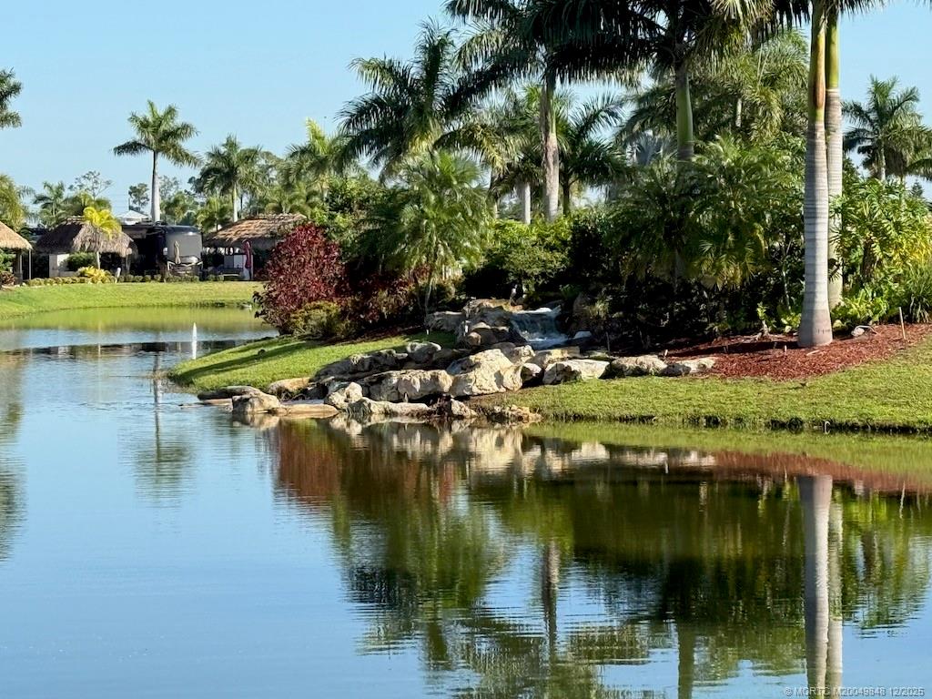 Simply ?tunn?ng Lot with ?re?thtaking W?terfall View! This e?c?ptional pull-in lot offers a prime location, just steps away from the clubhouse and all community amenities. Surrounded by mature landscaping that ensures privacy on both sides, it provides the perfect retreat to sit and listen to the waterfall and watch the golfers tee off nearby. Built in 2021, the spacious tiki features automatic screens and a fully equipped, beautiful quartzite kitchen complete with an island featuring a waterfall edge. The elegant TV wall with a cozy fireplace insert adds to the luxurious feel. Included in the price are all furnishings, storage units, plus a top-of-the-line $5, 000 Napoleon grill! Tastefully decorated with a warm, homey touch, this lot is the perfect spot for you and your coach. With that incredible waterfall view and the gorgeous amenities, it’s an opportunity you won’t want to miss — this gem won’t last long!