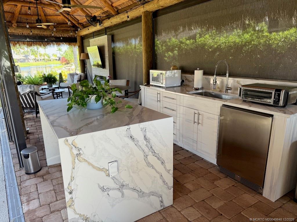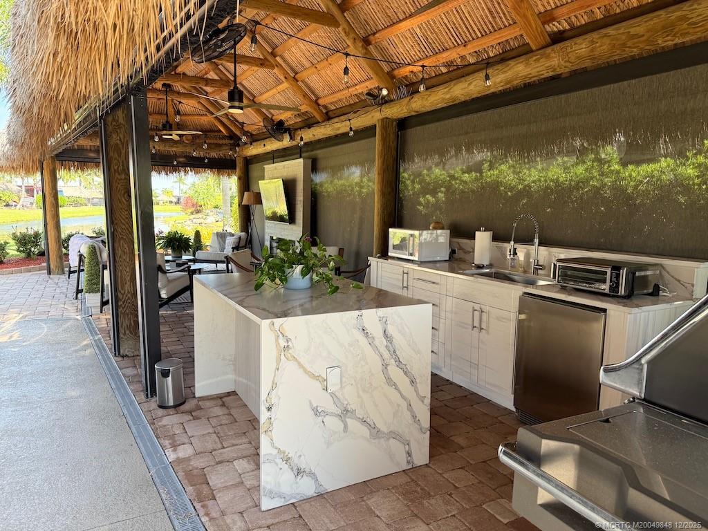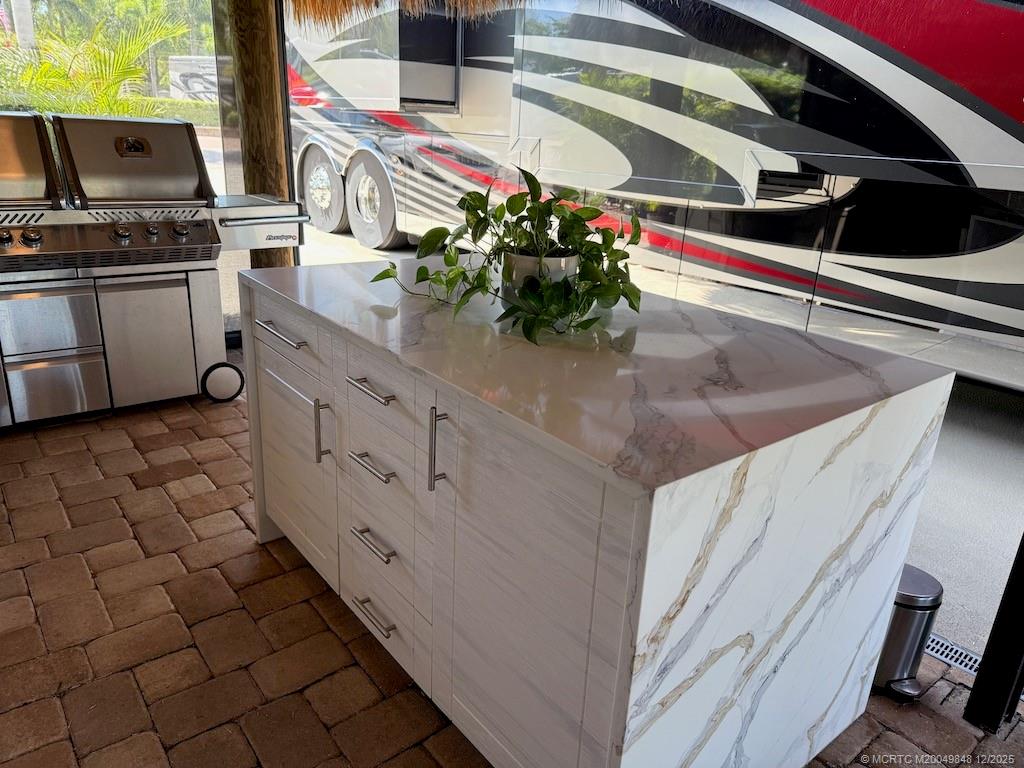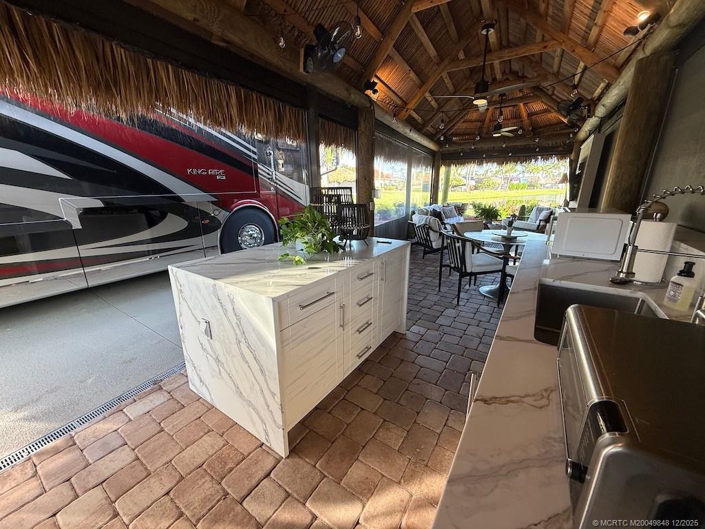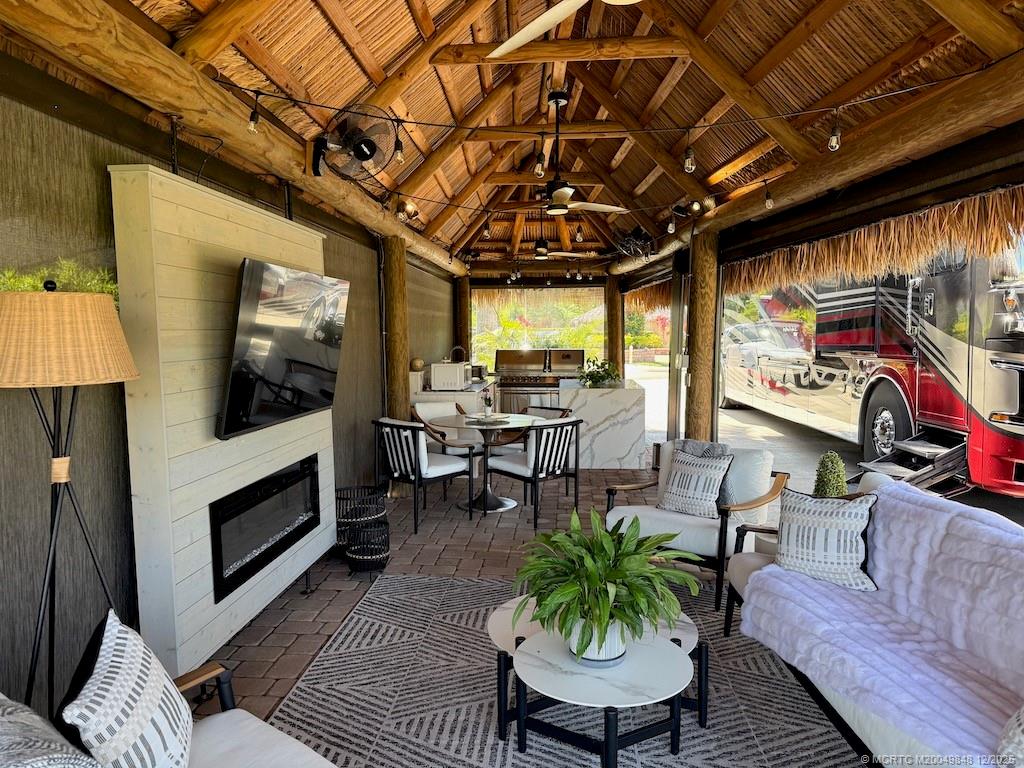 Simply ?tunn?ng Lot with ?re?thtaking W?terfall View! This e?c?ptional pull-in lot offers a prime location, just steps away from the clubhouse and all community amenities. Surrounded by mature landscaping that ensures privacy on both sides, it provides the perfect retreat to sit and listen to the waterfall and watch the golfers tee off nearby. Built in 2021, the spacious tiki features automatic screens and a fully equipped, beautiful quartzite kitchen complete with an island featuring a waterfall edge. The elegant TV wall with a cozy fireplace insert adds to the luxurious feel. Included in the price are all furnishings, storage units, plus a top-of-the-line $5, 000 Napoleon grill! Tastefully decorated with a warm, homey touch, this lot is the perfect spot for you and your coach. With that incredible waterfall view and the gorgeous amenities, it’s an opportunity you won’t want to miss — this gem won’t last long!