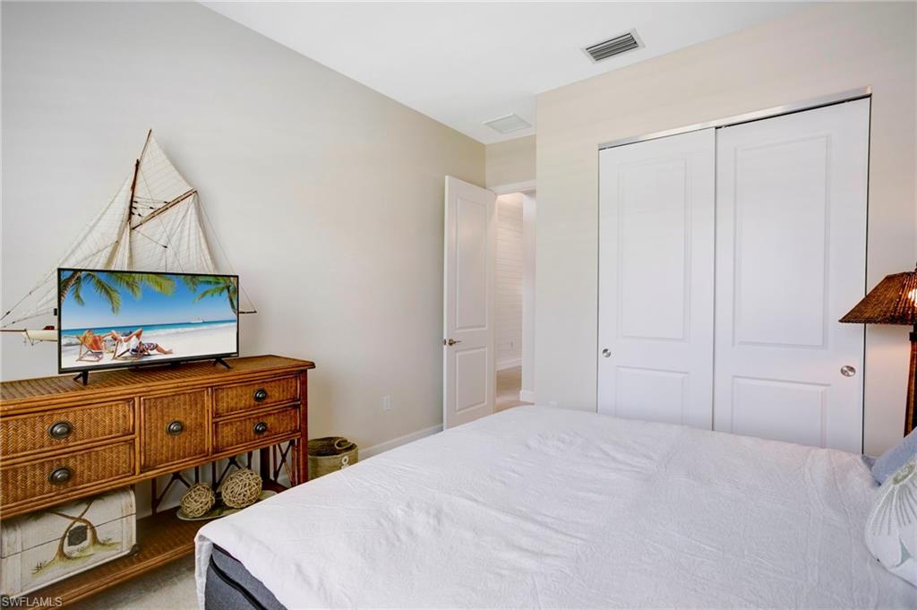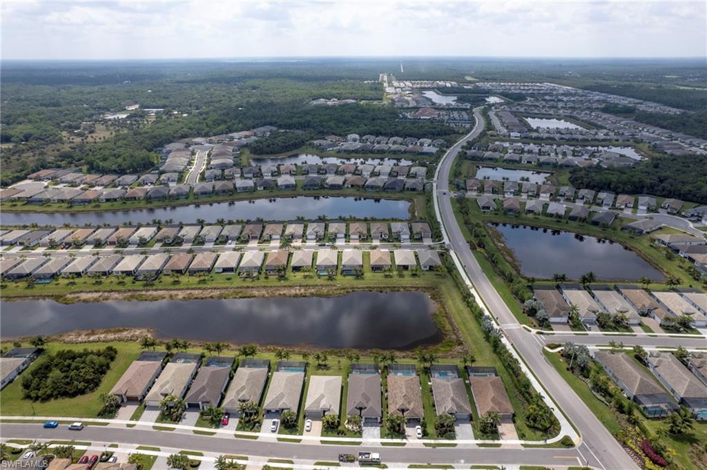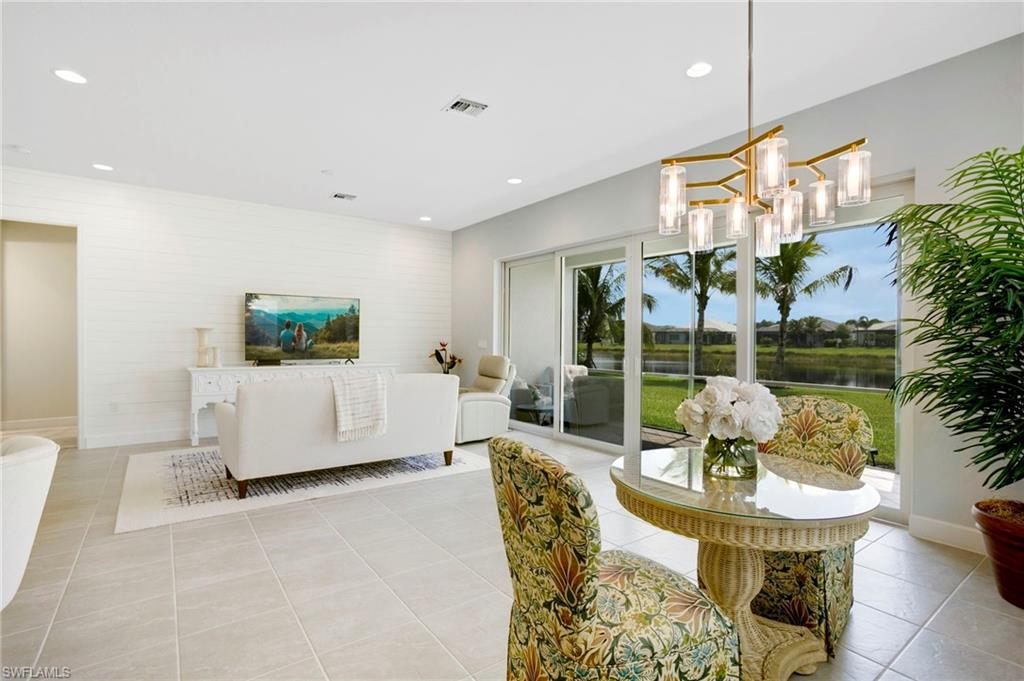 This stunning Pelican model home offers an unparalleled blend of luxury and comfort in the highly sought-after Valencia Trails, Naples’ premier 55+ community. From the moment you step inside, the soaring 14-foot ceilings and custom shiplap detailing create an immediate sense of sophistication. The open-concept design seamlessly connects the kitchen and living areas, making it ideal for both everyday living and elegant entertaining. The chef’s kitchen is a true showpiece, featuring quartz countertops, a gorgeous marble backsplash, a natural gas stove, premium stainless steel appliances, and an upgraded pantry with pullout trash bins. Level 3 wood cabinetry with soft-close functionality and elegant molding adds a touch of refinement, while ample recessed lighting enhances the space. The living area is further elevated by a striking shiplap accent wall, providing warmth and charm. Step outside to your private screened lanai and take in the breathtaking lake views that set this home apart. Whether you’re enjoying a quiet morning coffee or hosting guests for an evening gathering, this tranquil retreat offers a seamless blend of indoor-outdoor living. With ample yard space to accommodate a custom pool, which is pre-plumb for and a lanai pre-plumbed for an outdoor kitchen, this home is designed for relaxation and entertaining at its finest. The combination of tile flooring throughout and cozy carpeting in the bedrooms ensures both style and comfort. Beyond your doorstep, Valencia Trails offers world-class amenities designed to enhance an active and social lifestyle. The impressive 43, 000-square-foot clubhouse features a full-service restaurant and bar, a state-of-the-art fitness center, a full-service salon and spa, and multiple recreational spaces, including card rooms, an art studio, and a learning kitchen. For those who love outdoor activities, the community boasts a resort-style pool, a lap pool, a resistance pool, six tennis courts, eight pickleball courts, and scenic walking and biking trails. Even your four-legged companions will feel at home with two dedicated dog parks.