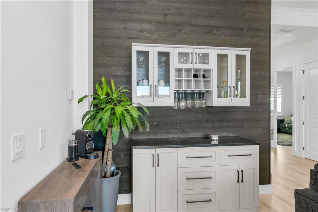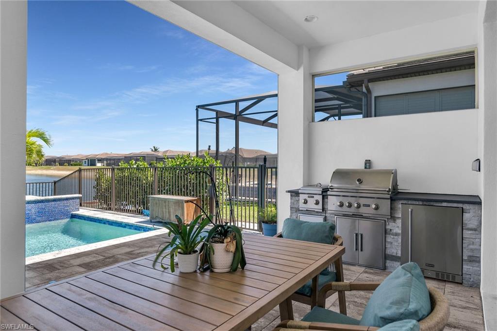 Welcome to 3697 Sapphire Cove Circle, Naples, FL, where luxury meets comfort in this stunning 5-bedroom plus den, 3. 5-bathroom residence. Boasting a spacious 3-car garage with extra storage and a high-voltage EV outlet, this home is designed for modern living. An expansive paved driveway enhances its impressive curb appeal. Step inside to discover a gourmet kitchen equipped with stainless steel appliances, quartz countertops, and custom cabinetry. The open floor plan is highlighted by soaring 12-foot coffered ceilings, solid core interior doors, and exquisite wood trim, showcasing superior craftsmanship throughout. The outdoor oasis is perfect for relaxation and entertaining, featuring a custom pool and spa with waterfall features. A fully equipped outdoor kitchen and remote-controlled sun screens create a seamless blend of indoor and outdoor living, all set against the backdrop of tranquil lake views. Built in 2023, this contemporary coastal Egret II model has been thoughtfully upgraded, including all hurricane impact doors and windows for added peace of mind. The second floor offers a versatile space, ideal for a golf simulator room or a home theater, catering to a variety of lifestyle needs. Located in a prime Naples location, this home is perfect for those transitioning to Florida. It offers convenient access to top-rated schools, sports complexes, dining, shopping centers, hospitals, and I-75, ensuring everything you need is just minutes away. Situated within the exclusive gated community of Sapphire Cove, residents enjoy access to a state-of-the-art fitness center, a resort-style pool, and a clubhouse. Embrace the Naples lifestyle in this exceptional home that seamlessly blends elegance, functionality, and convenience.