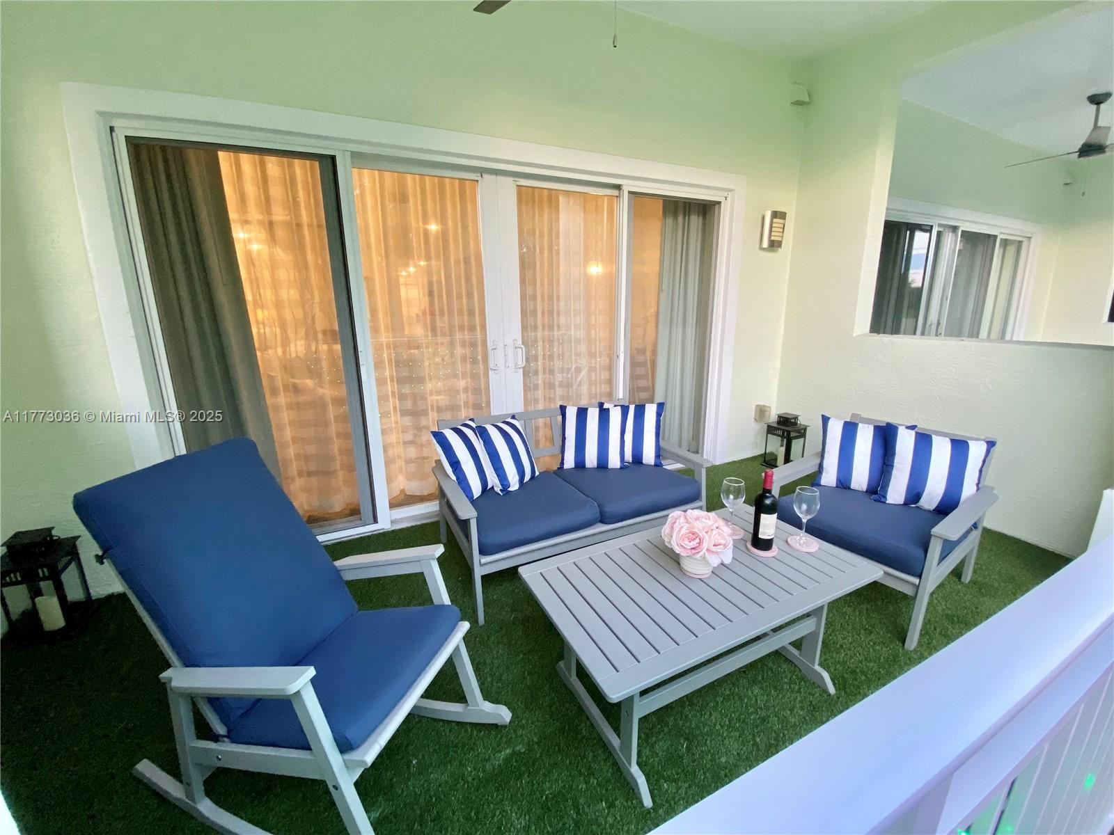 Step outside to your private patio—a tastefully designed space with artificial grass, cozy patio furniture, and mood lighting that creates the perfect ambiance for relaxing or entertaining.
