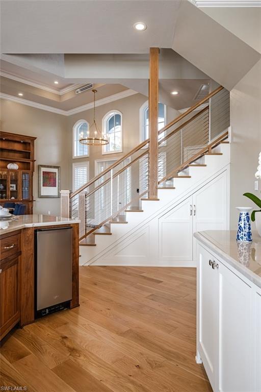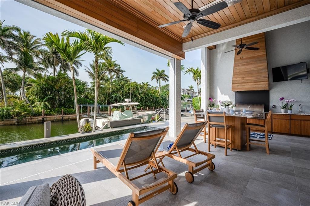 Experience the epitome of luxurious coastal living in the highly coveted Royal Harbor community! This immaculate, nearly-new coastal contemporary home is a stunning blend of innovative design and unparalleled functionality. As you step inside, you're welcomed by an exquisite custom residence where ultimate comfort seamlessly integrates with cutting-edge sophistication. Equipped with a state-of-the-art Lutron lighting system, advanced security cameras, and a spacious, oversized three-car garage, this home is built with both convenience and security in mind. Indulge in resort-style amenities that cater to every need, including a breathtaking pool and spa area, a cozy gas fireplace, and a climate-controlled wine room that will delight any connoisseur. The heart of this home lies in its true chef’s kitchen, featuring top-of-the-line Thermador appliances, including a 48” range with oven, steam oven, warming drawer, and a counter-depth refrigerator/freezer. Two expansive islands provide ample storage and maximize functionality, making it the ideal space for culinary creations and entertaining. Host guests in style with an open-concept living and dining area that flows seamlessly to the outdoor living space, where you'll find a fully equipped kitchen with a gas grill. The glamorous infinity-edge pool and spa provide a tranquil setting for relaxation and entertainment, while stunning views enhance the experience. Boating enthusiasts will appreciate the custom dock, complete with a 13, 000-pound boat lift, a 15’ x 15’ elevator lift for jet skis and kayaks, and a cozy seating area, making this the ultimate waterfront haven. Located just minutes from the renowned 3rd Street South and 5th Avenue South, this residence offers easy access to world-class shopping, fine dining, and pristine white sand beaches. This exceptional home is a true sanctuary for those who seek the finest in coastal contemporary living, offering a rare opportunity to enjoy the ultimate lifestyle.
