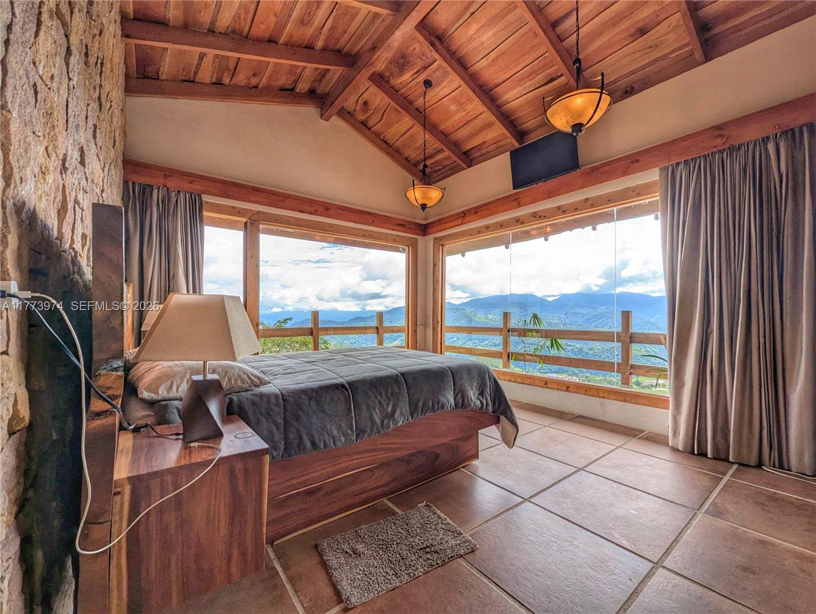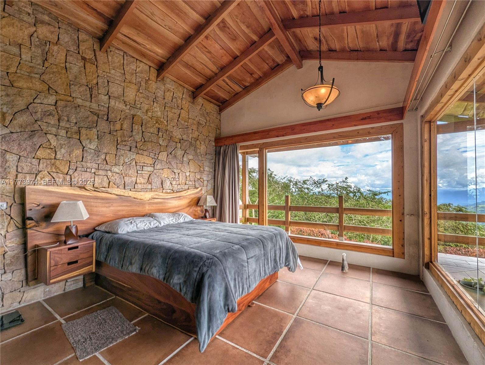 (1, 722 ft²) features durable concrete construction, stone accents, and refined wood finishes such as cedar. Expansive windows fill every room with natural light, showcasing panoramic views of majestic mountains and vibrant greenery.