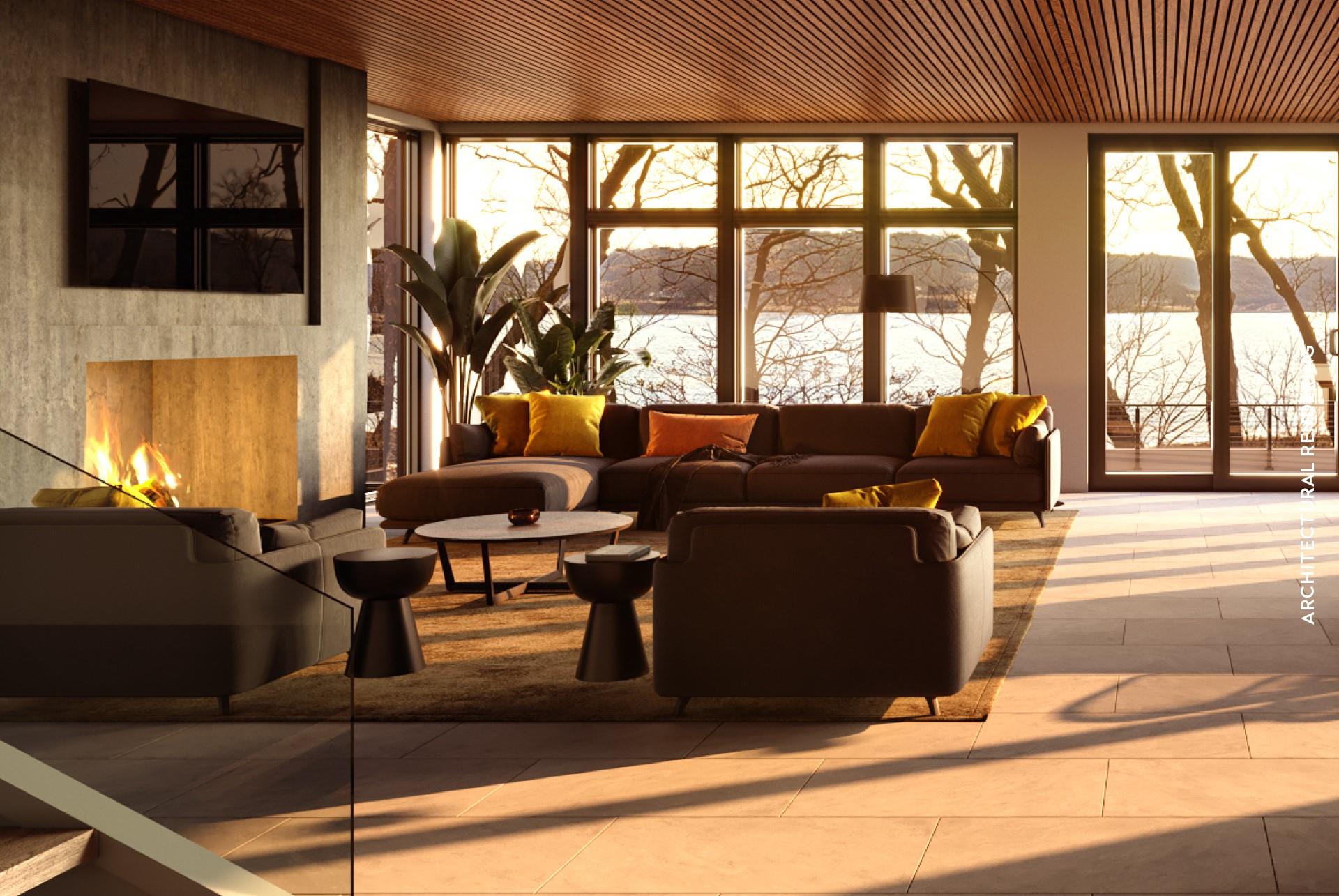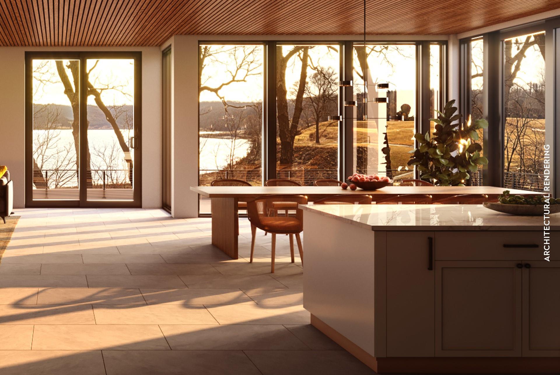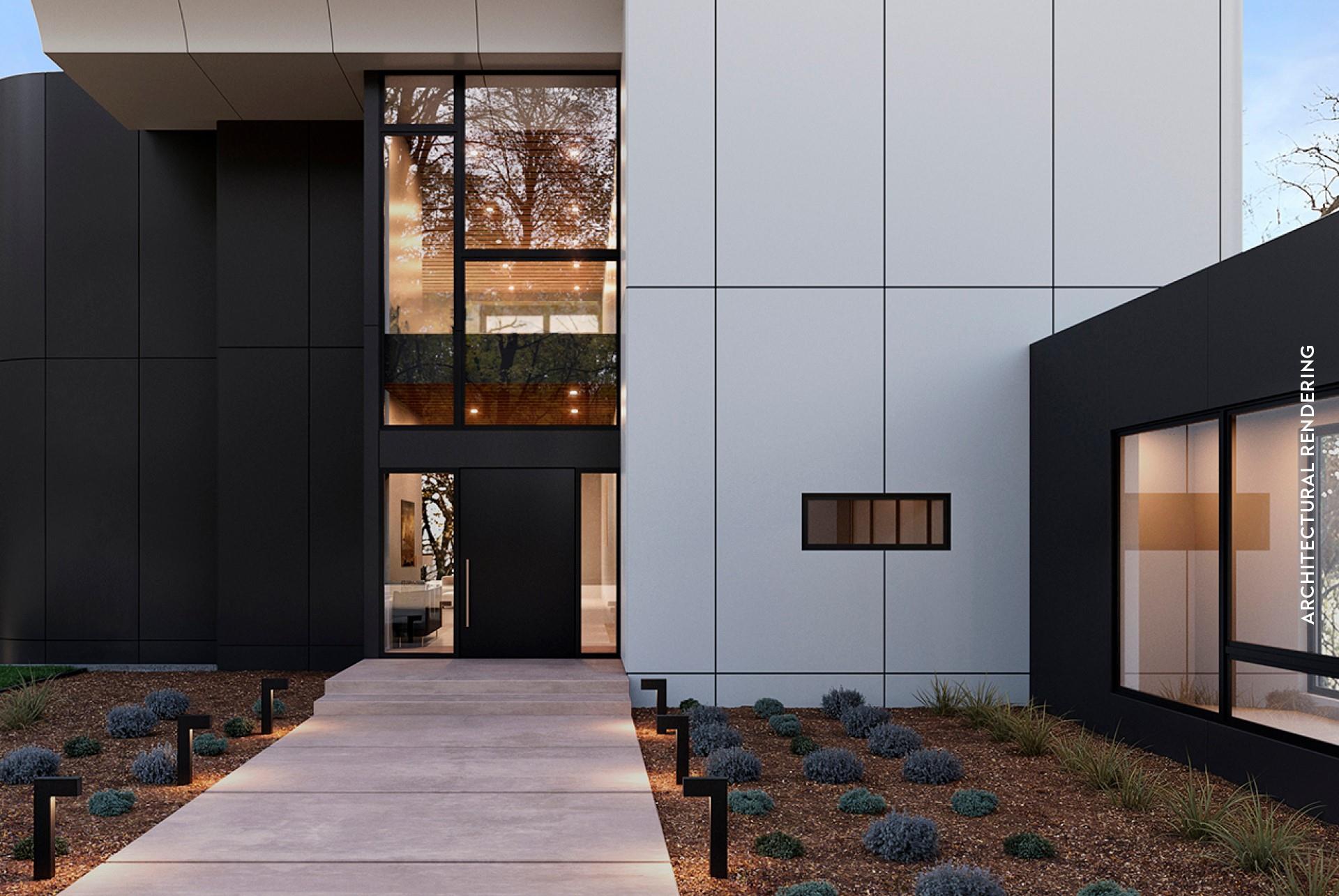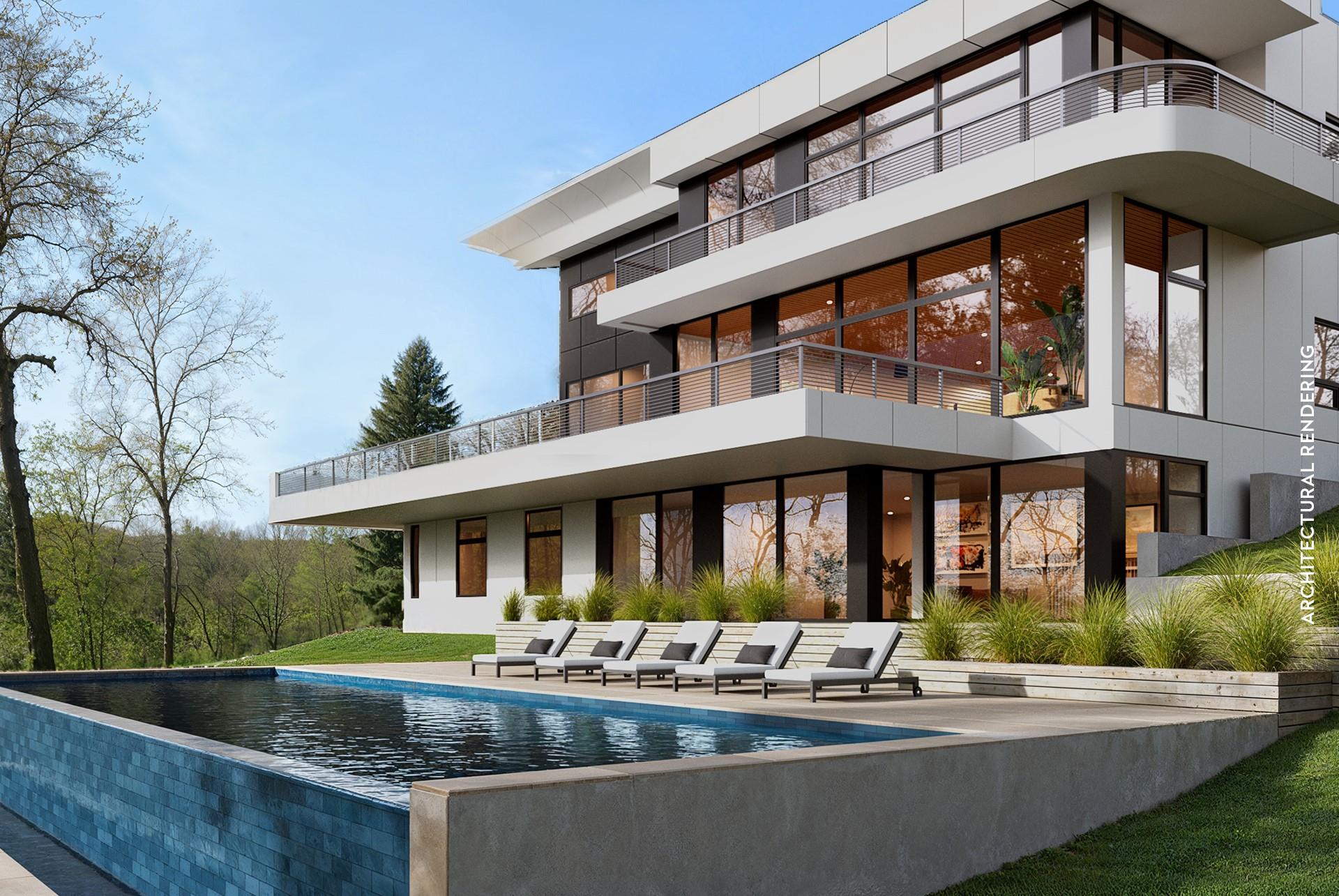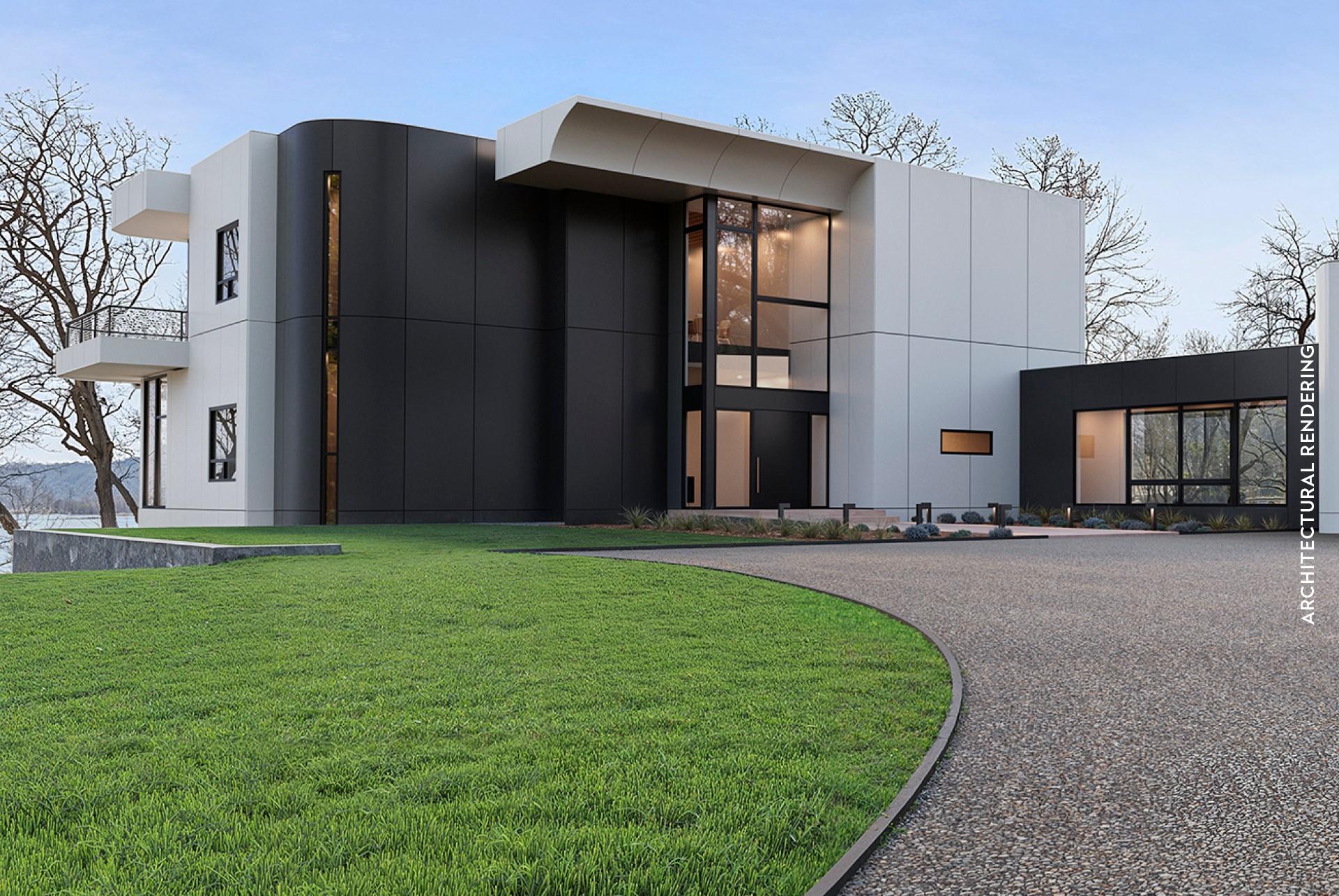 A one-of-a-kind modern masterpiece overlooking Stony Brook Harbor, this new construction home with its striking design is a beautiful juxtaposition of its natural surroundings. Designed by visionary architect, Bob King, this home is a perfect blend of industrial strength and modern elegance. The only home in the region that is wrapped in high-performance aluminum composite paneling, the exterior is not just stunning - it is virtually maintenance-free and engineered to stand the test of time. Spanning over 6, 500 interior square feet across three floors - there are five bedroom, five bathrooms, a magnificent column free 50ft x 40ft great room, lower lever with walk-out deck, wine cellar, panic/safe room, and a futuristic glass enclosed link that seamlessly connects the main residence to the four-car garage. They layout has been thoughtfully designed for both form and function. Perched on a hill near the Stillwater Road cul-de-sac, the lot is uniquely position to have a southern exposure with breathtaking water-views which is extremely rare on the north shore. Benefits of a southern exposure on this part of Long Island include increased natural light throughout the day and less wear and tear on the exterior of waterfront homes from harsh weather. Whether you walk in through the front door or use the glass link - you're immediately greeted by an expansive great room with an open kitchen / dining area, fireplace, custom 10 ft windows, massive wraparound terrace, and gorgeous views of the harbor and Nissequogue golf course. On the second floor - there are a total of 3 bedrooms, each with it's own ensuite bathroom. The primary includes a large walk-in closet, floor to ceiling windows, and a wraparound balcony. The lower level features a beautiful open room with fireplace that can be used as a rec room, home theater, gym, etc. There is two additional bedrooms with water views, a full bathroom, panic room / home safe, and a wine cellar. This level also walk out to the deck where plans are in place for the new homeowner to finish an outdoor entertainment space to their liking which can include a sauna, hot / cold plunge, and an infinity pool. All major systems are in place - power, radiant heated floors, plumbing, electrical, insulation, and ductwork - with a fully completed exterior. Whats remains is the exciting part: bringing the new homeowner's personal vision to life. Interior and pool renderings offer a glimpse of the extraordinary possibilities ahead.