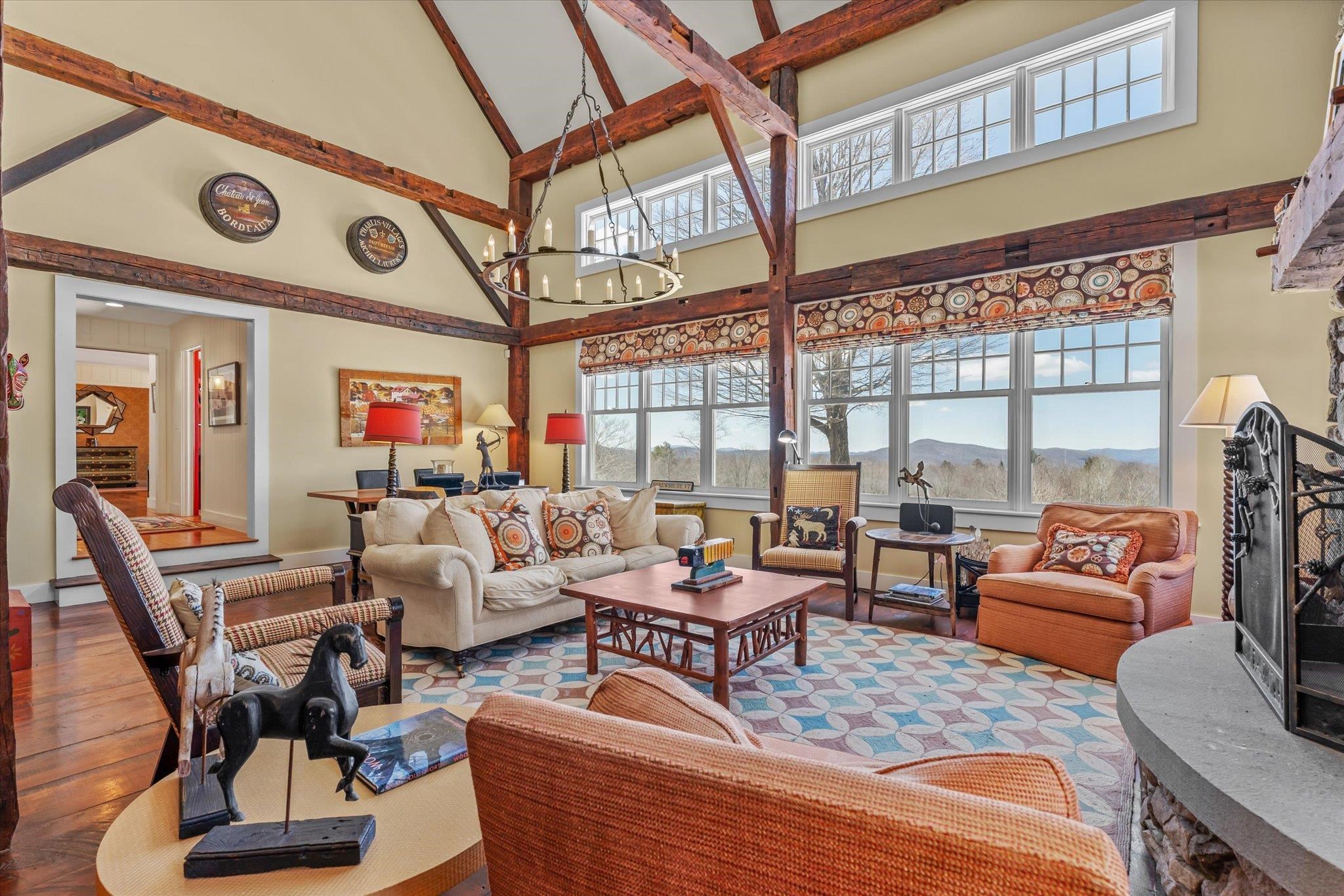 Discover the beauty of this private 124 acre country estate perfectly situated between Okemo Mountain Resort and Killington Resort, two of Vermont’s premier ski destinations. Surrounded by the Calvin Coolidge State Forest, this 7-bedroom, 6-bath retreat offers unmatched seclusion, mountain views, and a true connection to the outdoors. From nearly every room, take in sweeping views of the Green Mountains. Inside, the home balances rustic elegance with modern comfort. The grand family room features a soaring stone fireplace and mountain views, while the entertainment level with pool table, wet bar, and media room sets the stage for après-ski gatherings. A fitness room and sauna provide space to stay active and unwind, and multiple fireplaces indoors and out add warmth and charm year-round. A three-car garage offers ample storage for vehicles and gear, and the scenic forest-lined drive creates a dramatic first impression. Whether hosting friends after a day on the slopes or savoring the stillness of your private acreage, this exceptional property captures the essence of Vermont mountain living.