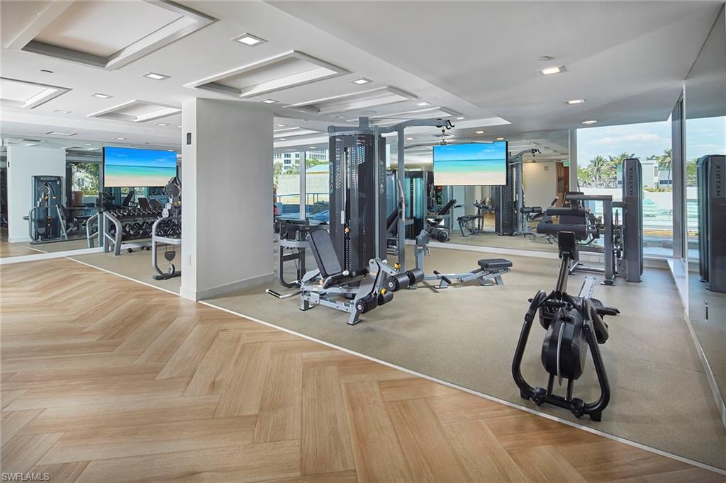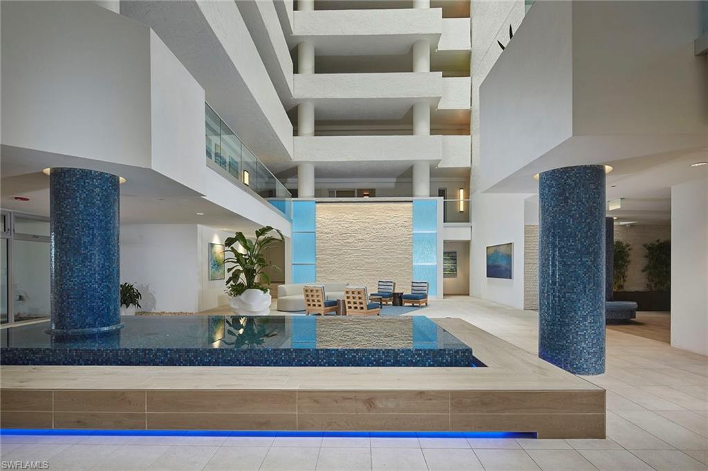 Stunning long range southerly Gulf and Park Shore beach views can be seen from nearly every room in this updated luxurious La Mer residence. The ideally located 12th-floor home was tastefully remodeled including wood flooring in the main living areas, a new kitchen with white cabinets and quartzite countertops along with stainless-steel appliances. The large great room has an adjacent dining area and two sets of sliding glass doors that open to a spacious screened-in lanai ideal for enjoying the Naples mild winters and picturesque beach views. The owner's suite has a spacious custom walk-in closet, a completely updated bath with dual sinks, quartzite countertops, large walk-in shower and endless beach and water views from the bedroom through three floor-to-ceiling windows. Additional features include electric storm shutters throughout, newer air-conditioning unit, an updated guest bath, in-residence laundry room and exterior storage closet. La Mer amenities include a modern coastal common area decor, 24-hour staffed front door, beachside resort pool and spa, direct beach access, newly remodeled fitness center, tennis and pickleball courts, gas grills, three guest suites and rooftop observation terrace. La Mer is in distance of upscale shopping and waterfront dining at Venetian Village. Also in proximity is the Venetian Bay Yacht Club which features boat docks for lease or purchase.