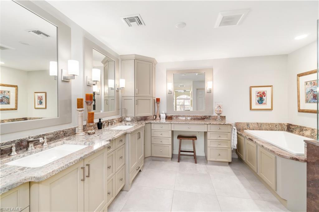 Beautifully updated condo with spectacular golf course & lake views in North Naples’ coveted “Audubon Golf & Country Club!” All the prime amenities offered in Audubon are only steps away, including an 18-hole championship golf course, tennis, pickleball, Bayside boardwalk, brand-new spectacular poolside club & café. Relax and unwind on your expansive screened-in lanai with breathtaking panoramic golf course views. This stunning residence features an open floor plan, three spacious bedrooms, a versatile den, and 3. 5 bathrooms. A private two-car garage, complete with golf cart storage, adds to the convenience. Inside, you'll find light, wide plank, wood flooring, tray ceilings, and a chef's kitchen with crisp white cabinetry, exquisite granite countertops, and a breakfast bar for casual dining. Adjacent to the kitchen, a charming eat-in area offers a beverage bar with a built-in wine cooler, perfect for entertaining. The expansive primary suite boasts stunning golf course views, private access to the lanai, and a spa-like en-suite bathroom with dual vanities, a large frameless glass shower, and a separate soaking tub. Audubon Golf & Country Club is ideally located just five minutes from the vibrant Mercato shopping center and the pristine beaches of Southwest Florida, all within a gated, and guarded community.