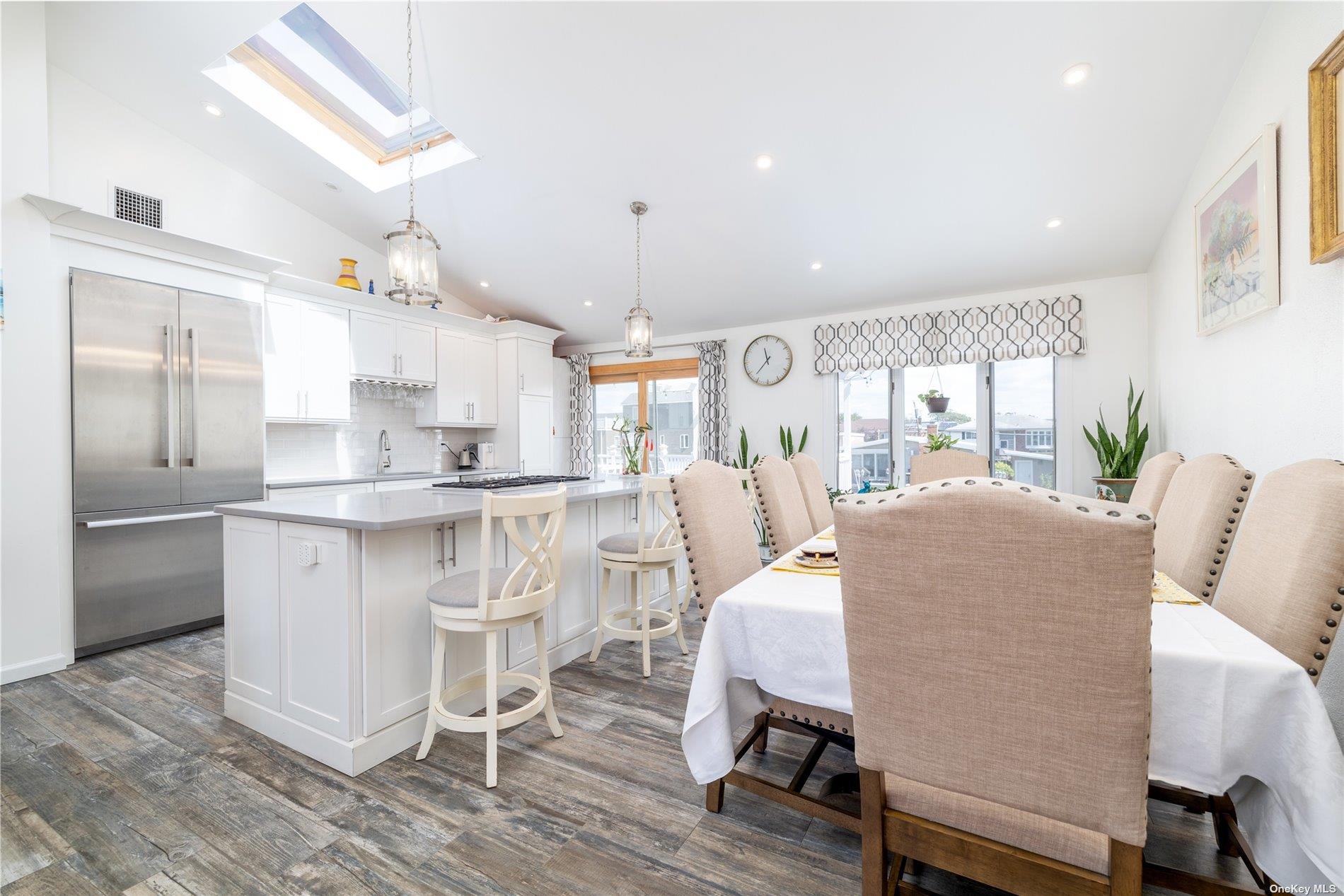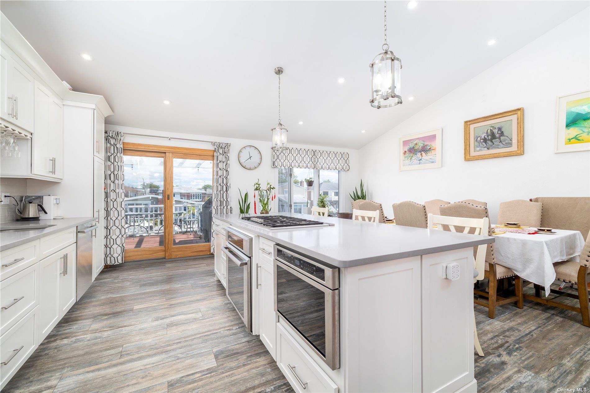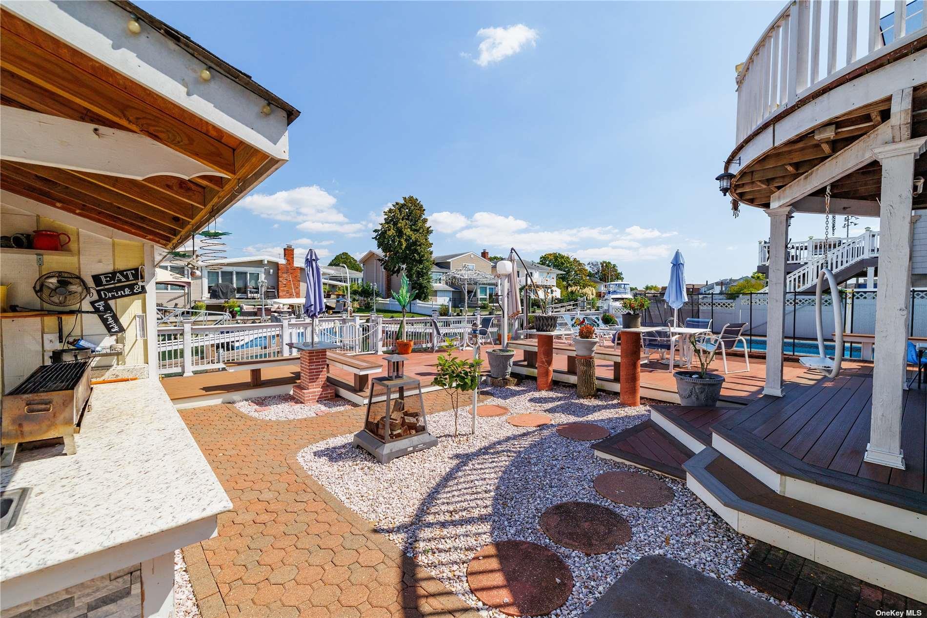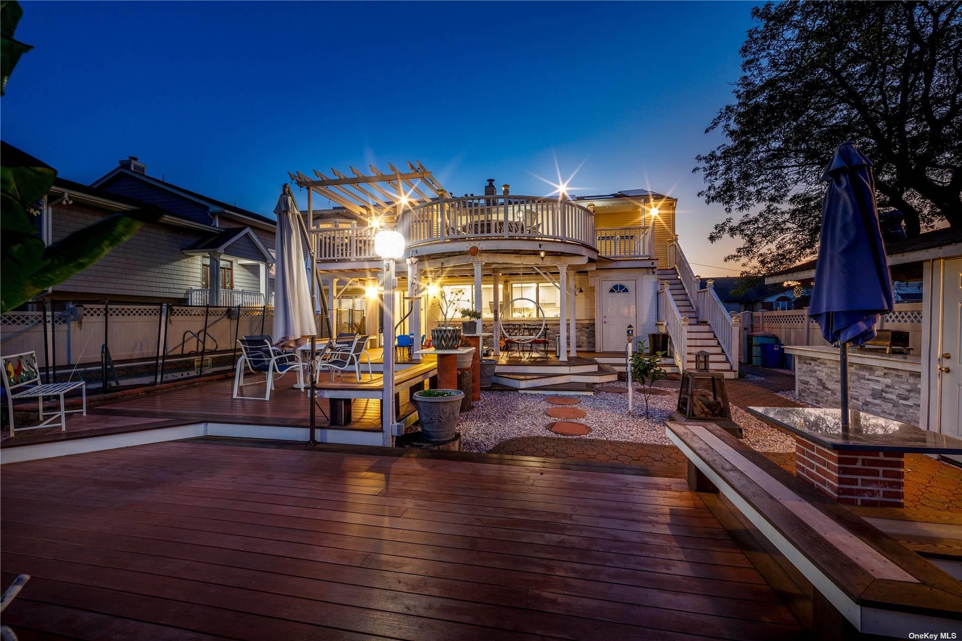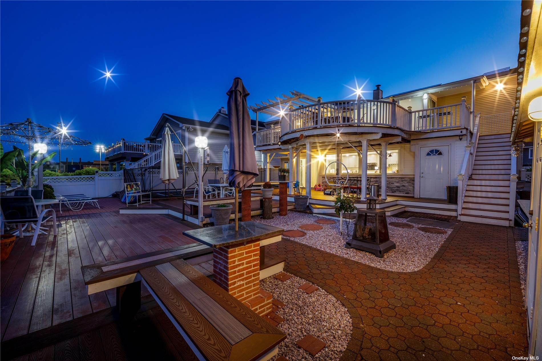 Introducing This Oceanside Waterfront 4 Bedroom 3 Bath Wide-line Stucco Contemporary Hi Ranch. Features Include a Second level Formal Living Room with Built In Cabinetry. A Dining Room and New Chefs Eat In Kitchen with a Cathedral Ceiling and Skylights, Center Island, White Shaker Cabinets, Stainless Steel Appliances, Quartz Counter Tops and Sliders To an Upper Deck. The Master Bedroom Boasts a Private Bath, Walk In Closet & Sliders To a Screened Porch and the Upper Deck. Lower Level Features a large Bedroom, a Full Bathroom 2 Car Garage and a Den with Sliders To a Your Private Yard & In Ground Heated Pool & Private Dock. Solar Panels, 150 Amp Electric, Transfer Switch & 2 Car Paver Driveway On Quiet Dead End Street. ,