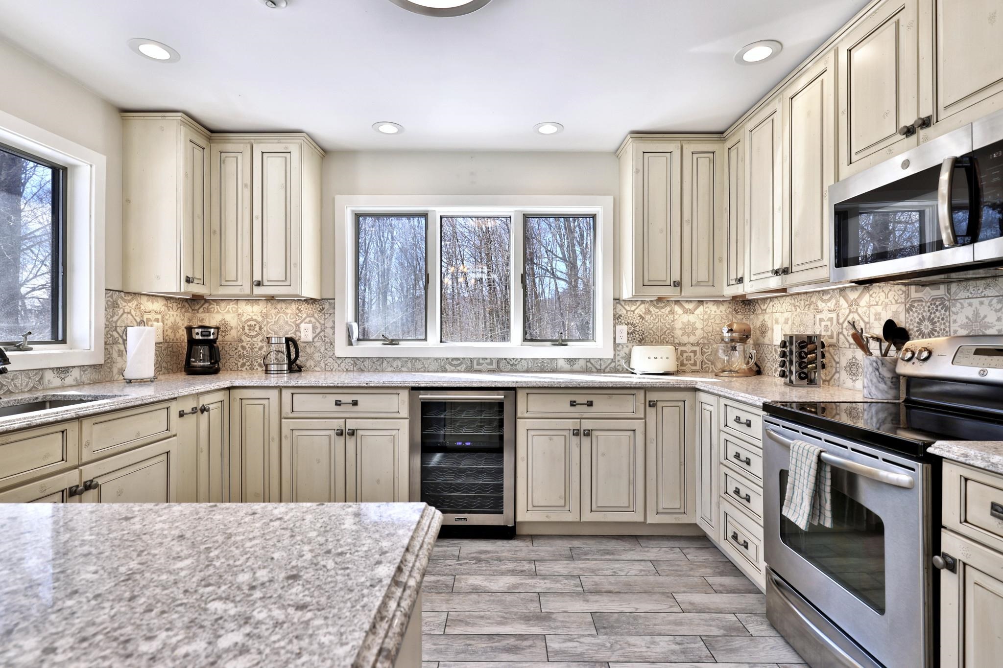 KILLINGTON – DESIRED SKI-IN/SKI-OUT LOCATION! Seize this rare opportunity to own a stunningly updated mountain retreat with direct access to the legendary Great Eastern Trail via a deeded easement. Perfectly positioned for skiers, snowboarders, and outdoor enthusiasts, this home also offers strong short-term rental potential, making it a prime investment opportunity. Step inside to a bright and airy open-concept main level, where a newly renovated kitchen, dining area, and living room flow seamlessly under soaring cathedral ceilings. The brand-new, two-story windows showcase breathtaking mountain views and flood the space with natural light. There is one bedroom conveniently located on the main floor. A wood-burning stove was previously removed for rental safety, but the setup remains for easy reinstallation to bring extra warmth and charm. After an epic day on the slopes, relax in your private, newly installed hot tub, perfectly positioned for soaking in the mountain air. This home has been thoughtfully upgraded with new flooring on the main level, a newer efficient boiler, and beautifully updated bathrooms. The lower level features a spacious bedroom, full bath, laundry area, recreation room, and bonus room, while the upper level boasts a luxurious primary suite with a full bath, plus an additional bedroom with charming log bunk beds and another updated bath. Opportunities like this don’t come often—act fast and make this Killington dream home yours today!