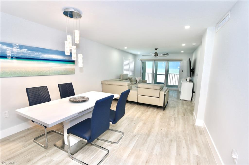 Stunning 2-Bedroom, 2-Bathroom Corner Condo with Direct Access to the Gulf. Live the dream of beachfront living in this beautifully renovated condominium, located on the desirable 1st floor mere steps off your lanai to the pristine sands and crystal-clear waters of the Gulf. Enjoy breathtaking sunsets and the sound of the surf from the comfort of your home. This condo boasts an open-concept living space flooded with natural light, thanks to hurricane-impact windows and doors throughout. The spacious living area opens to a screened-in lanai, with secondary hurricane glass sliders, access lanai and beach from both the living room and the main bedroom, offering the perfect spot to relax and enjoy the coastal breeze in comfort and privacy. Both the living room and main bedroom sliding doors feature electric shades for added privacy, all other windows are adorned with elegant plantation shutters. The gourmet kitchen is fully updated with stainless steel appliances, sleek countertops, and ample storage. The main suite is a true retreat, offering a private bathroom and direct access to the beach through sliding glass doors. The second bedroom is perfect for guests or family, with plenty of space and style.