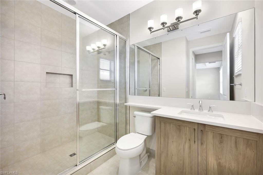 New construction ready for immediate delivery! This "Cascade" home with Lake View offers Impact Resistant Windows throughout and has 5 Bedrooms plus a Loft, 7 Baths, and a 2-Car Garage, an open kitchen with stainless steel GE Appliances including Gas Cooktop and Quartz Countertops. The master bedroom offers a coffered ceiling, spacious closets and a master bath with separate shower and tub. Other features include: Glass Entry Door, 24 x 24 Tile in Main areas, Wood flooring in Loft, extended width of driveway and more! RiverCreek is Estero’s hottest new gated community and features numerous amenities for everyone including a 12, 000 square foot Clubhouse with Resort–style pool, event room, fitness center, indoor sports court, tennis, pickleball, basketball and more!