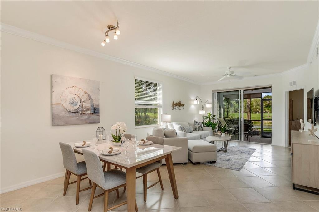 This sensational 2+Den/ 2Bath Colonade end unit was just updated with a light and bright modern décor that is sure to please and is being sold turkey. It has a southern facing window in the living area and a western and southern view of the Cypress 16 lake, fairway, and the surrounding preserve. The unique characteristics of the Colonade are an oversized outdoor storage closet, a very private guest bedroom/bath, and a large eat in kitchen with lots of storage and counter space. Heritage Bay is not just a residential community; it is a union of the natural beauty of Southwest Florida, and an active luxury resort with amazing lakes, 27 holes of golf, a fun poolside cabana, luxury clubhouse grill room, active tennis, 6 pickleball, bocce programs, and a full service fitness and aerobics center. There are social events galore and the members are friendly and highly active. Every day is like a vacation with friends, and every property owner is a golf member. Building is located within walking distance to all amenities.