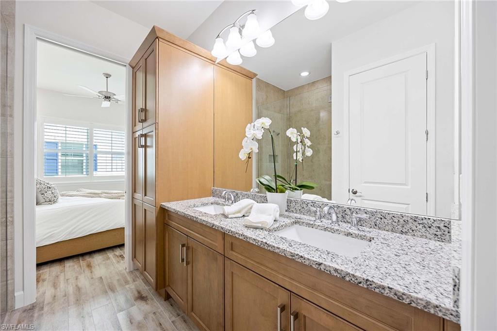 Lakeside serenity meets coastal charm in this turnkey-furnished Useppa floor plan cottage in award-winning Isles of Collier Preserve. From the moment you enter, you'll notice the soaring ceilings, wood-look tile floors and plantation shutters. At the heart of the home, a spacious island kitchen features quartz countertops, stainless steel appliances and rich shaker-style cabinetry, opening up to a bright and airy great room ideal for entertaining or simply relaxing. Step outside to your private screened lanai with breathtaking lake views and lush tropical landscaping that offers rare privacy. Tucked on a quiet street, this move-in ready home is just a short golf cart or bike ride to the community's world-class amenities including a resort-style pool, the Overlook Bar & Grill, fitness center, kayak launch, tennis and pickleball courts, and miles of scenic nature trails. All this just 10 minutes from downtown Naples and Naples white sandy beaches!