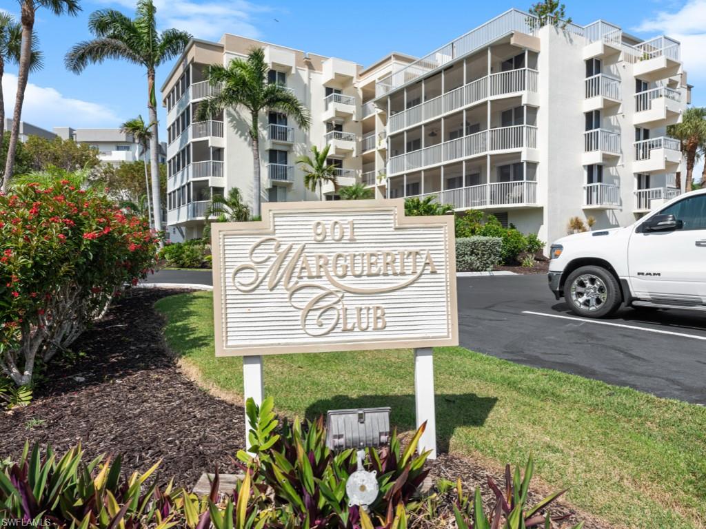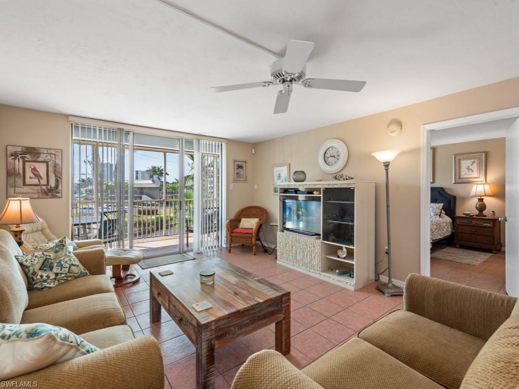 Rarely available, this charming second-floor Marguerita Club condominium on the south end of Marco Island offers 2 bedrooms, 2 baths, and a coveted boat dock. With its prime end-unit location, this condo provides ultimate privacy with an abundance of natural light, thanks to windows on 3 sides, no shared walls with neighbors & storm shutters all around. . Inside, you'll find beautiful, easy-to-maintain tile throughout & it is fully furnished. Enjoy breathtaking watercolor sunsets from the spacious western-facing patio. The building is meticulously maintained, featuring a new roof (2022) and fresh exterior paint. Owners can also take advantage of the 5th-floor sundeck, perfect for relaxation & enjoyment. Located on a peaceful side street, this condo provides the ideal balance of quiet living & easy access to Marco Island's pristine south beach. Great opportunity for those seeking an exceptional value in a prime location with the advantage of having your boat here, too! A must-see property that's ready for you to call home!