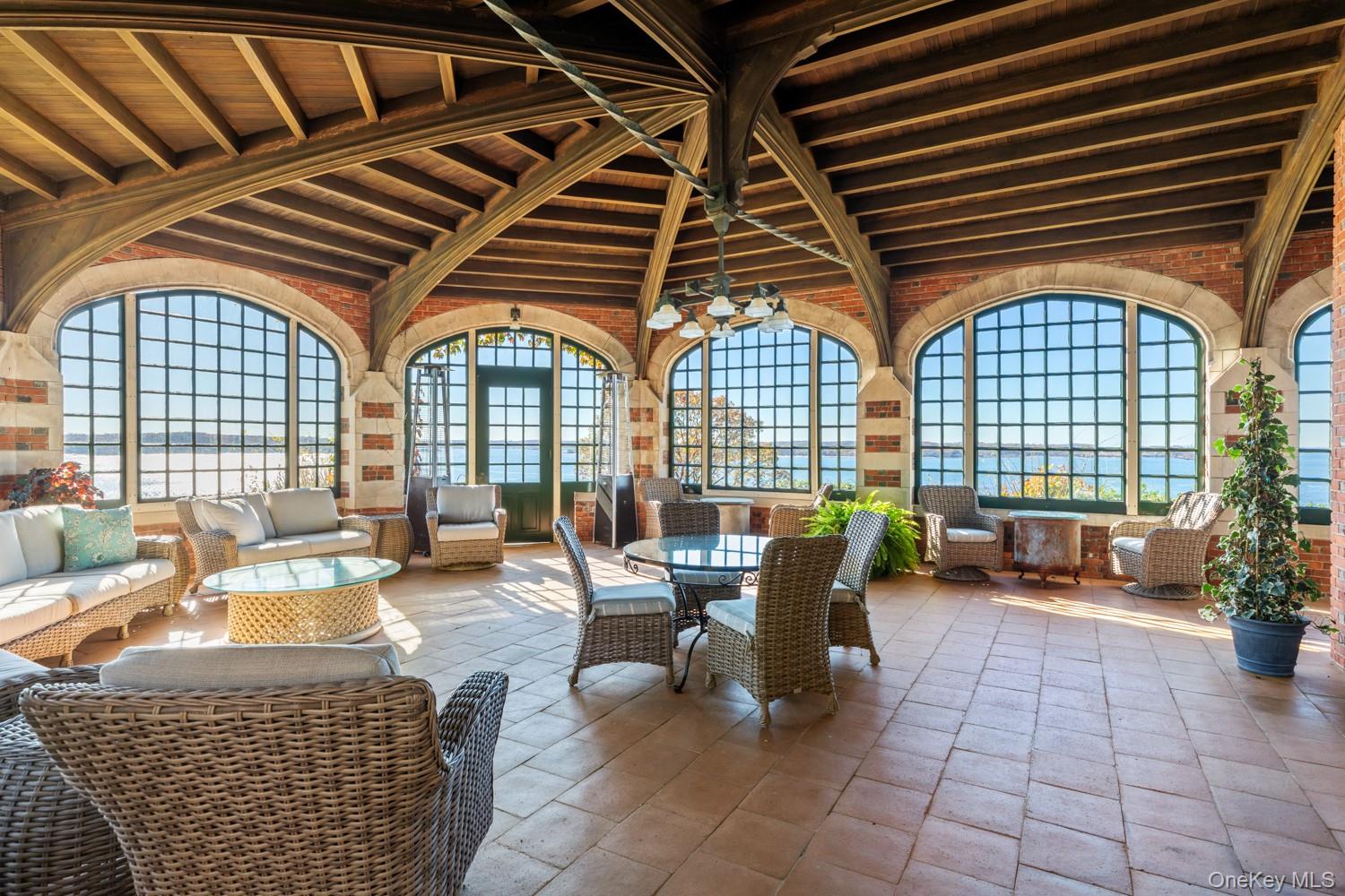 Welcome to 31 Fort Hill Drive, a landmark estate perched atop 10 private acres in the prestigious enclave of Lloyd Harbor. Set across two parcels with 1, 800 feet of private beachfront and a deep-water dock, this extraordinary compound offers uninterrupted, panoramic views of the Long Island Sound—widely regarded as among the finest vantage points on the North Shore. Steeped in natural beauty and rich American history, the estate sits on Fort Hill, a site of Revolutionary War significance where signal beacons once watched over the Sound. Today, the same elevated terrain offers a rare sense of seclusion, grandeur, and sweeping coastal vistas that change with every season and every tide. This custom brick residence is a masterwork of craftsmanship and scale, featuring 13 bedrooms, 10 full bathrooms, and four half baths. Elegant interior spaces include a sunlit solarium, a stately library, and an expansive, exquisitely detailed ballroom designed for unforgettable gatherings. Seven fireplaces, intricate millwork, and curated architectural details throughout add a sense of timeless refinement. A fully renovated gourmet kitchen anchors the home’s living spaces, offering high-end appliances, classic finishes, and effortless flow into formal and informal dining areas. Whether you’re hosting intimate family dinners or large-scale entertaining, the home rises to every occasion. Additional amenities include staff quarters, a 16-car garage with guest apartment suites above, a state of the art geothermal system, and flexible bonus rooms ideal for a private theater, wellness space, or art studio. Outdoors, a 3-acre curated garden with a greenhouse, invites peaceful strolls and moments of serenity amidst manicured plantings. From sunrise over the water to evenings under the stars, this is a home where every day is defined by natural splendor, privacy, and possibility. Just moments from Huntington Village and the train to NYC and located within the award-winning Cold Spring Harbor School District, 31 Fort Hill Drive is more than a home—it’s a legacy estate where history, beauty, and lifestyle converge.