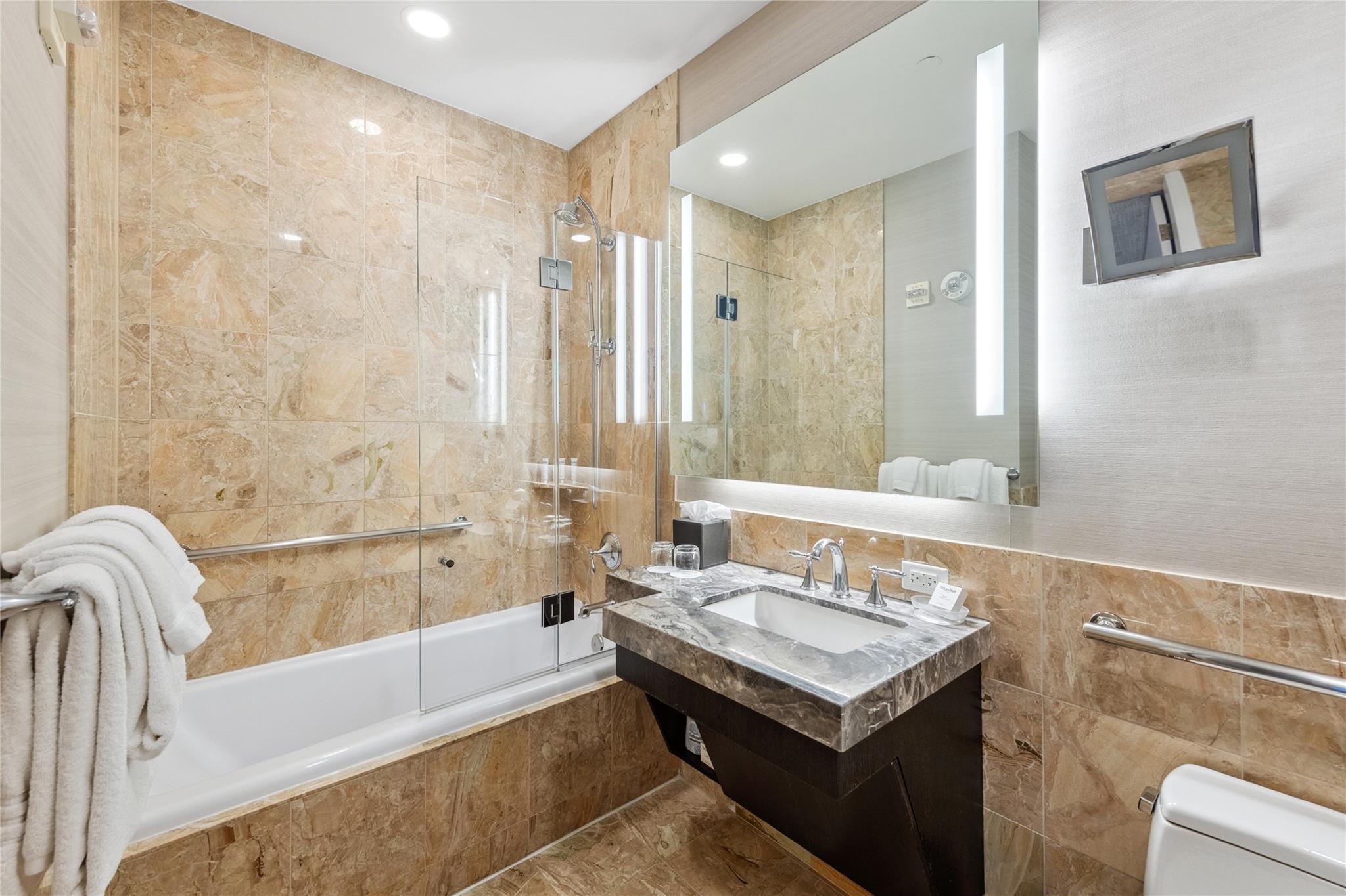 Central Park and Columbus Circle at your fingertips! Imagine enjoying it all, and earning income too! Welcome to apartment 316! Take advantage of owning this 5-Star luxurious hotel suite, fully furnished condo in the prime location on Central Park West. This newly decorated suite has floor-to-ceiling windows with iconic views of Broadway and the surrounding skylines. The perfect living and dining room combination enables one to relax or entertain in a charming space, while viewing the activity of Columbus Circle. The bathroom-lush with marble tiles, a sleek glass shower door is coupled with a marble vanity, making this modernized bathroom just ideal! A fully equipped kitchen with high-end stainless steel appliances offers an easy lifestyle with comfort. This pristine apartment is perfect for any user or investor. The 5-Star amenities include daily housekeeping and a laundry valet upon request. To relax, the building provides a complete state-of-the-art fitness center, a 55 foot lap swimming pool, and a sauna and steam shower. For ease and convenience, also provided are a business center and conference room with a library. Other amenities include a bike room, and a 24/7 garage with valet parking services available. For special dining, the famous Jean-Georges restaurant is located in the lobby of the building, providing room service.