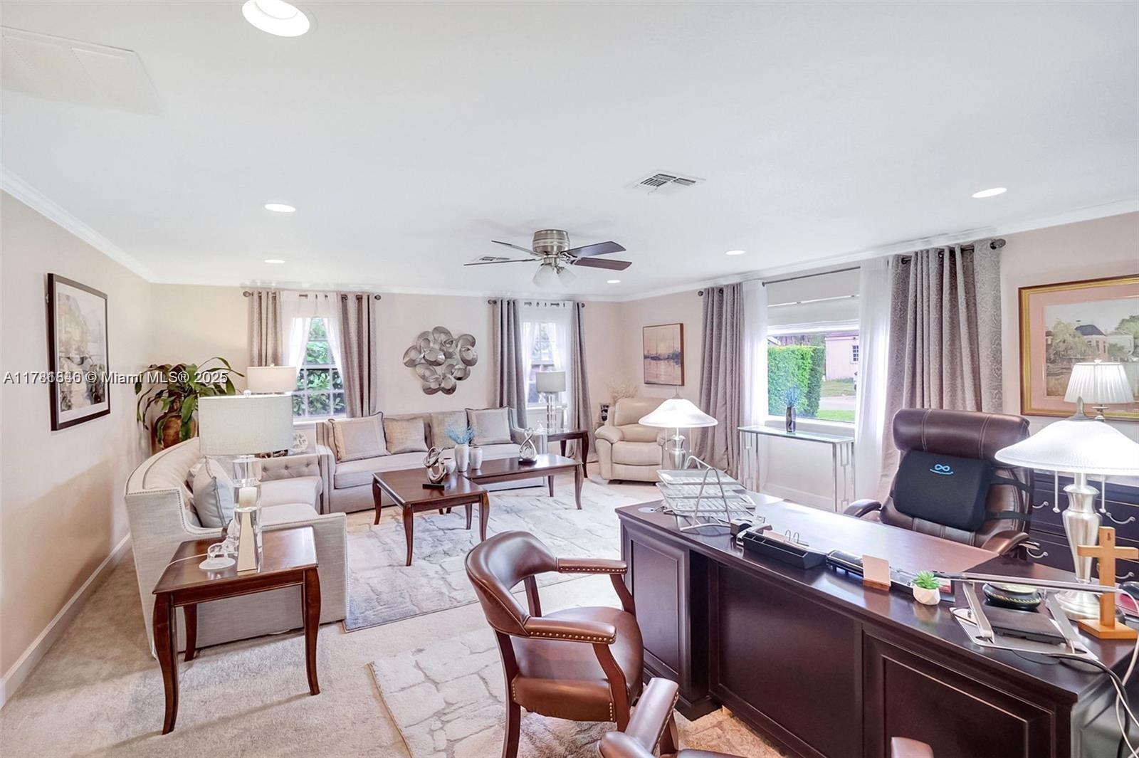 SPACIOUS SINGLE-FAMILY HOME FEATURES 2, 884 SQ. FEET OF LIVING AREA AND 3, 340 SQ. FEET TOTAL AREA. MAJOR REMODEL AND EXPANSION IN 2012 INCLUDED NEW ROOF, UPDATED ELECTRIC, NEW GOURMET EAT-IN KITCHEN & NEW DUAL ZONE CENTRAL A/C. FORMAL LIVING ROOM WITH 440 SQ. FEET (22'3" X 19'9"). LARGE FORMAL DINING ROOM. CHEF'S KITCHEN HAS DOUBLE OVEN & BUTLER'S PANTRY, LARGE BREAKFAST AREA & WALK-IN PANTRY. PRIMARY BEDROOM SUITE FEATURES WALK-IN CLOSET, DRESSING AREA AND SEPARATE TUB & SHOWER. HOME OFFICE. LAUNDRY ROOM WITH WASHER/DRYER & ADDITIONAL STORAGE. ENCLOSED TERRACE/FLORIDA ROOM. PRIVATE BACK YARD WITH OUTDOOR KITCHEN AND PERGULA. AT $484. 00 PER SQ. FOOT OF LIVING AREA, THIS PROPERTY IS AN OUTSTANDING VALUE. LOCATED ON QUIET CUL-DE-SAC, WITH QUICK & EASY ACCESS TO DOWNTOWN MIAMI SHORES VILLAGE.