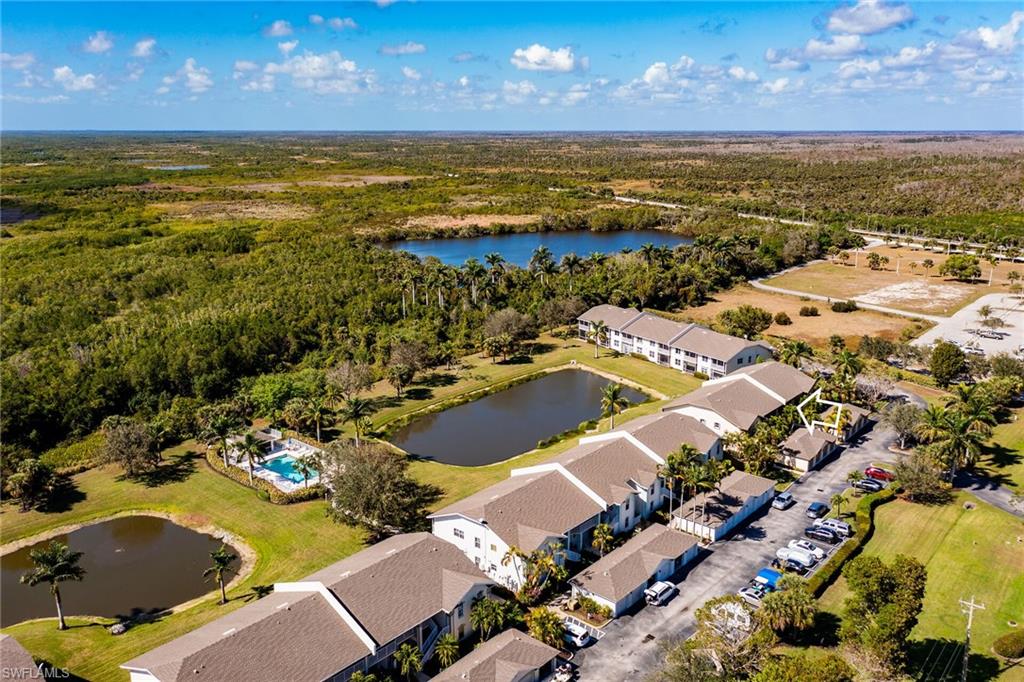 Serene lakeside living at Port of the Islands! Welcome to your peaceful retreat in the heart of the 10, 000 Islands, where nature and luxury blend seamlessly. This meticulously maintained 2-bedroom, 2-bath second-floor condo offers breathtaking views of the lake and the adjacent wildlife refuge park, providing a front-row seat to Southwest Florida’s incredible wildlife - bears, alligators, birds, fish, and more. Inside, you'll love the vaulted ceilings that create an airy, open feel, complemented by laminate flooring and plantation shutters for a modern and easy-to-maintain touch. The spacious lanai is perfect for sipping your morning coffee while taking in the sights and sounds of nature and provides security with the electric hurricane shutters. The beautiful quartz countertops in the kitchen and bathrooms add a touch of elegance, while the in-unit laundry provides ultimate convenience. This condo also includes a single-car garage, offering extra storage for your outdoor gear. When you’re ready to unwind, enjoy the heated community pool and cabana, perfect for soaking up the Florida sunshine. Located on the edge of the Florida Everglades, this home is ideal for nature lovers, boating enthusiasts, and those seeking a tranquil escape - just a short drive from Naples and Marco Island. Move-in ready and impeccably clean, this home is waiting for you to enjoy the best of Florida living!