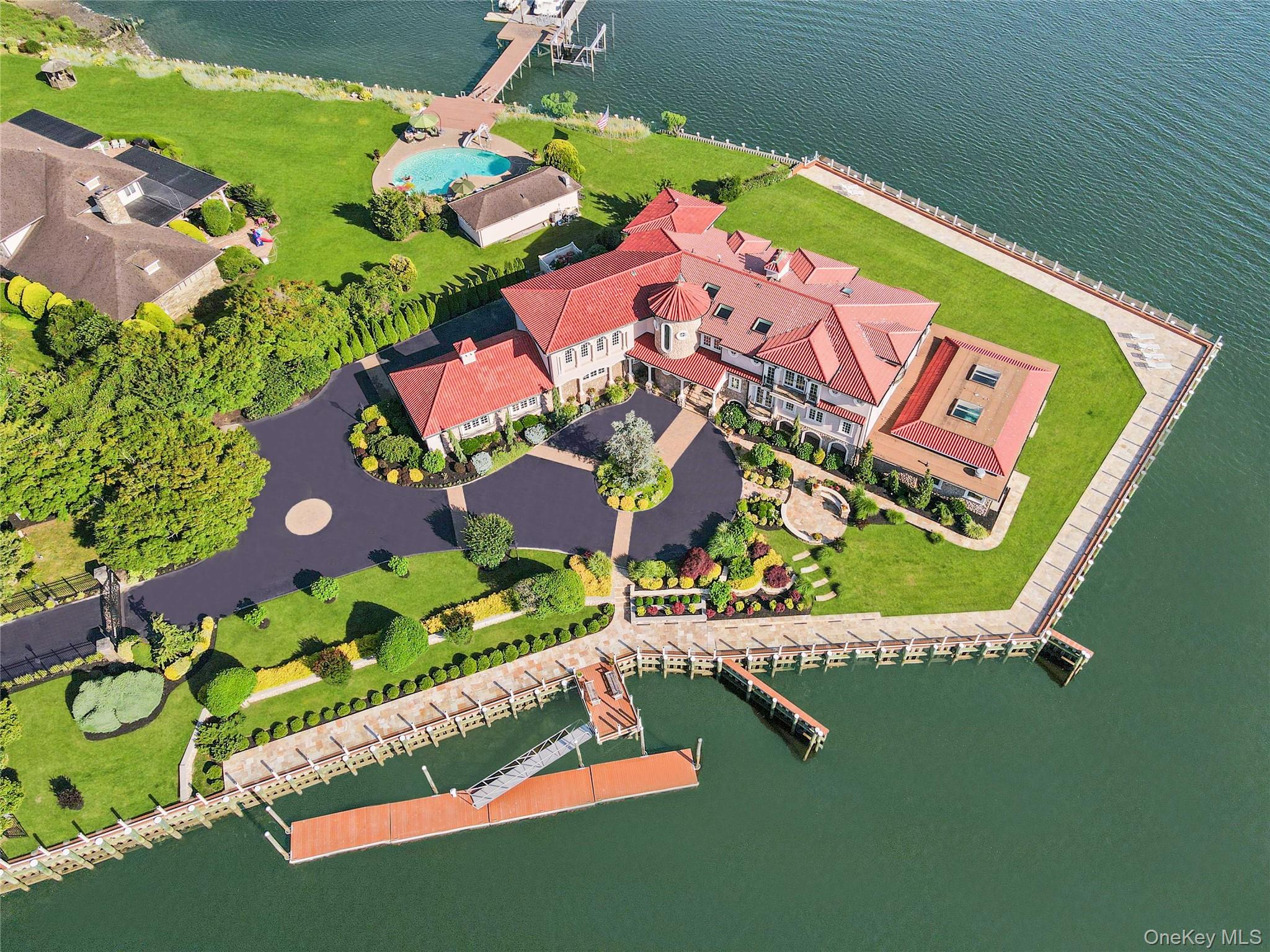 Discover an extraordinary opportunity to own a rare peninsula property in the prestigious enclave of Hewlett Harbor, where the water meets the sky in a breathtaking display. This magnificent estate is situated on a luxurious 1. 2-acre lot, offering one of the South Shore's premier waterfront locations. Imagine residing in a private resort-style haven, with 360 square feet of water frontage that captivates with panoramic views. Step inside this 12, 000-square-foot Spanish-Mediterranean masterpiece, meticulously rebuilt from top to bottom in 2014. The home features an array of luxurious amenities, including an indoor saltwater heated pool with spectacular views, perfect for year-round enjoyment. Host grand gatherings in the kitchen and cabana with a party room that accommodates over 500 guests effortlessly. This stunning residence offers expansive living spaces, including 7 spacious bedrooms—2 of which are en-suite—and 7 full bathrooms along with 3 half bathrooms. Enjoy movie nights in the dedicated home theater, rejuvenate in the gym and sauna, or unwind in the poolside cabana. An elevator ensures effortless movement between floors, enhancing the comfort and convenience of this elegant home. The location is unparalleled, just outside NYC and in close proximity to Atlantic Beach, with views stretching across the water to Long Beach. A newly replaced bulkhead and dock, complemented by a glass-fenced boardwalk, invite you to relish the mesmerizing water views. Don’t miss this rare opportunity to own a piece of paradise in Hewlett Harbor, where luxury living and natural beauty converge.