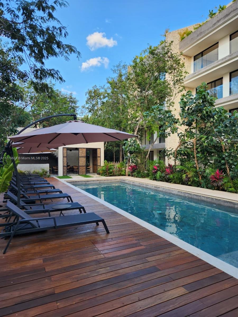 Stunning Apartments of 2/2 in Tulum’s Best Area. Located in a prime, gated community with 24/7 security and controlled access, just 5 minutes by car from Tulum’s most beautiful beaches. Each unit features air conditioning, elegant finishes, marble floors, custom wood closets and bathroom vanities, electric water heaters, modern one-piece toilets, and electric cooktops. Resort-style amenities include a swimming pool, palapa bar with restrooms, hammock area, grill lounge, holistic center, massage room, yoga space, gym, and more.