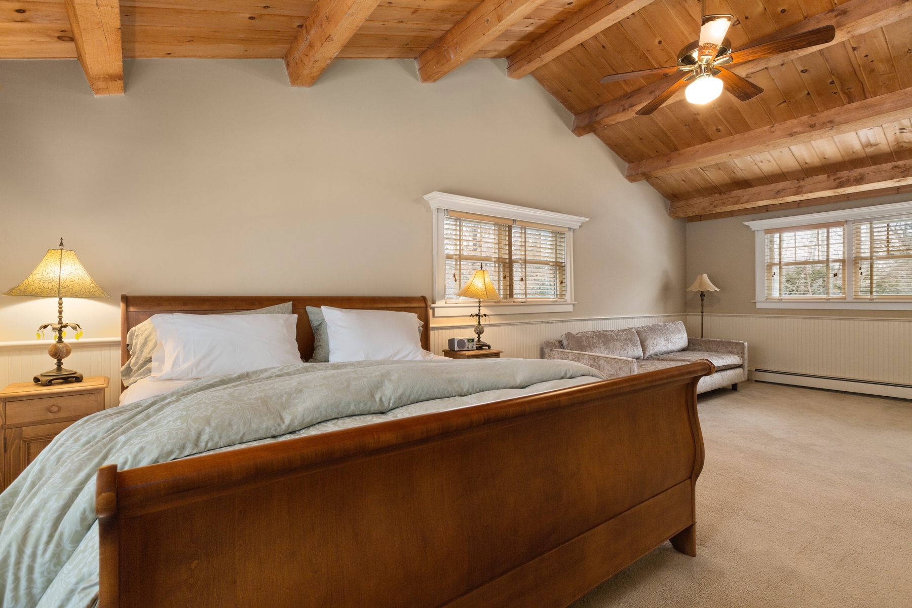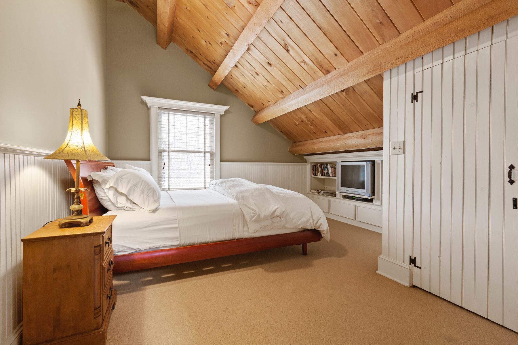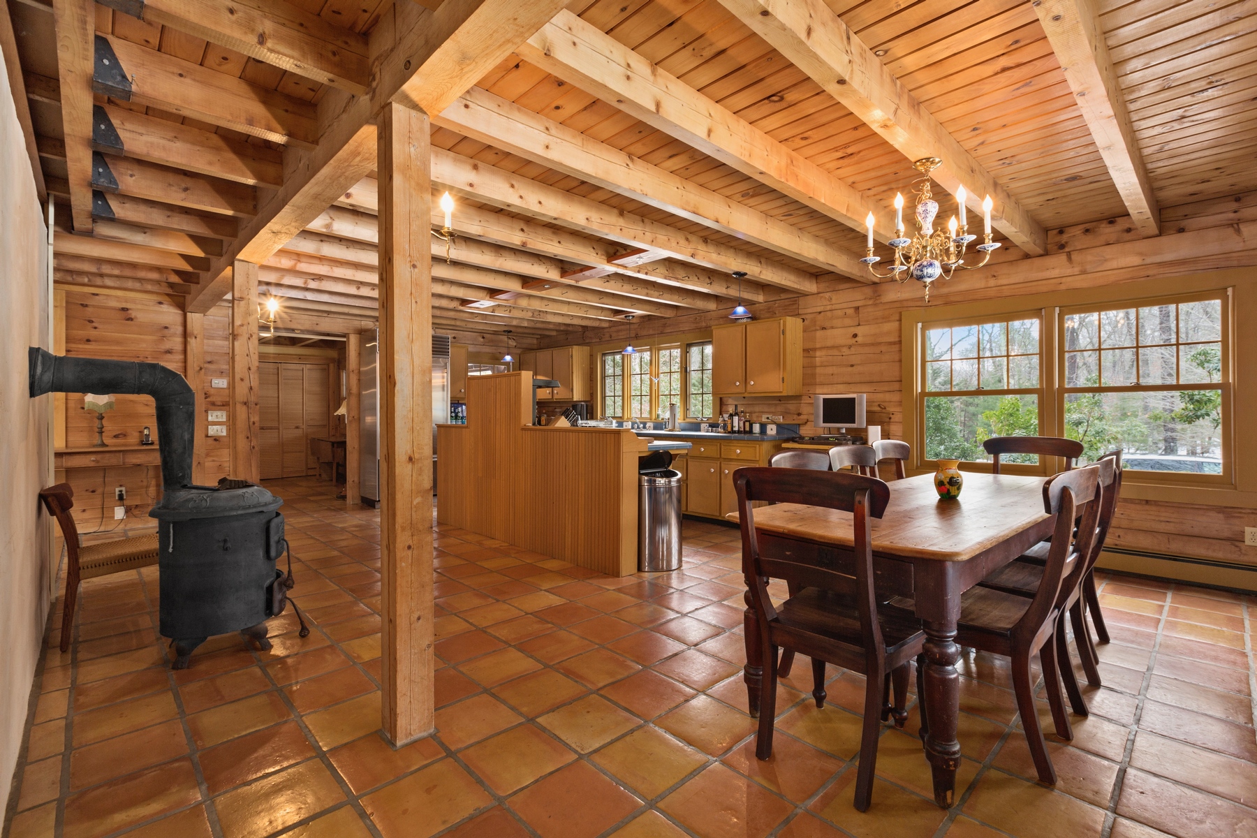 East Hampton rental with tennis close to the village. Set on four East Hampton acres with a tennis court and free-form heated Gunite pool is this one-of-a-kind log cabin built by a master carpenter. With a stunning double-height stone fireplace and five bedrooms and three baths, this is the place to truly get away. Set deep in the woods yet still close to town, the log cabin's two covered porches invite you to come and relax. Rental Reg. # 24-795.