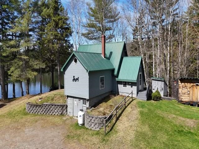 Welcome to your peaceful escape with 160 feet of owned frontage on Otter Pond—perfect for fishing, kayaking, and swimming! This lovingly rebuilt home (taken down to the studs and renovated starting in 2003) blends rustic charm with modern comforts. The main house features 2 spacious bedrooms, including a first-floor primary bedroom with water views. Upstairs, a large open loft offers versatile living or sleeping space. Enjoy pond views from the living room and soak in nature all year round. The cozy studio-style guest house is solar-powered with a covered porch and metal roof—ideal for visitors or rental potential. Entertain with ease in the 20x10 screenhouse featuring an outdoor kitchen and metal roof, surrounded by multiple picnic tables for gatherings. Energy-efficient solar panels were installed in 2015, with eight brand-new batteries added in February 2025. The property also includes a wired generator for peace of mind. Located within walking distance to larger Mayfield Pond and near ATV trails, this is an outdoor enthusiast's dream come true! Don't miss this rare opportunity to own a slice of waterfront paradise with year-round