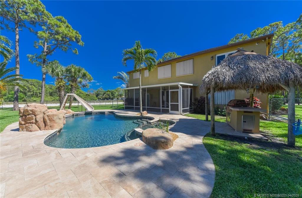 Beautifully maintained 4 br 3 bath 2 story house with pool on large lot (2+ acres). Backyard is an oasis. Fully fenced yard with electric entrance gate. Roof was replaced in 2018. Mango trees in yard along with other lush landscaping. Get the country feel while having the convenience of the city within a 10-minute drive. Picture with windows is edited