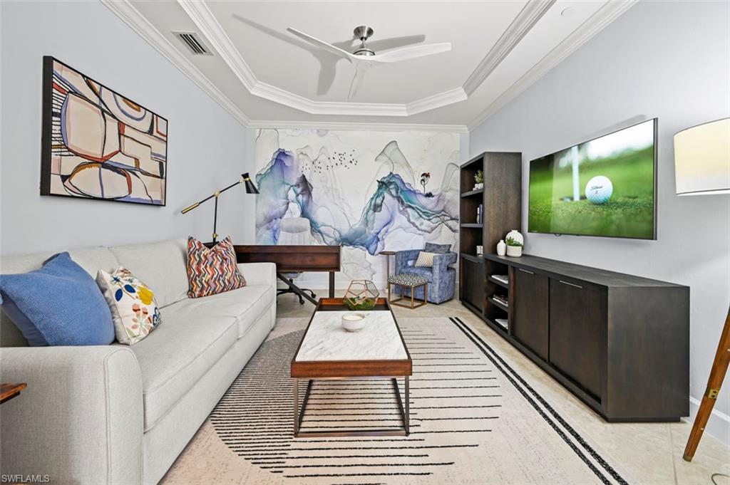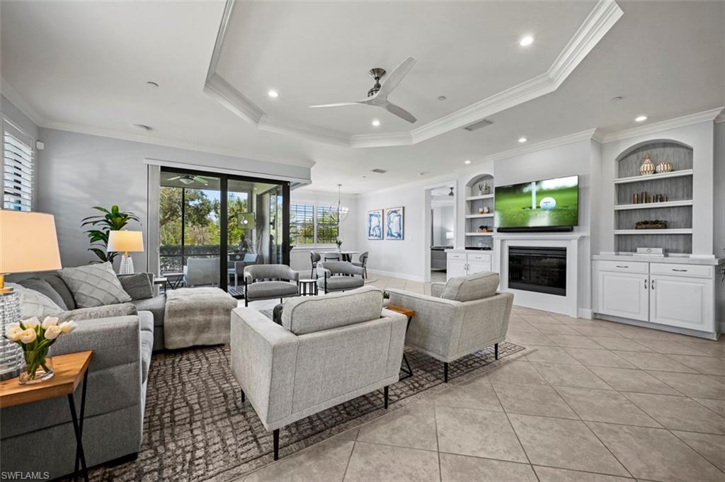 Discover resort-style living in this FIRST-FLOOR CORNER COACH HOME in Esplanade! This 2-bedroom, den, 2. 5-bath home offers 1, 956 sq ft, a 1-car garage, and a TRANSFERABLE FULL GOLF MEMBERSHIP. Nestled on a quiet cul-de-sac, enjoy stunning water, preserve, and golf course views. The open features light tones, white cabinetry, crown molding, tray ceilings, and zero-corner sliding doors opening to a screened lanai. Hurricane-ready with IMPACT WINDOWS & DOORS. Brand new Quartz countertops in kitchen and bathrooms. Esplanade’s amenities include a resort pool, tennis, pickleball, bocce, Koquina Day Spa, Techno Gym, dog park, Bahama Bar, 14 miles of trails, an 18-hole golf course, and a 15, 000 sq ft Culinary Center with dining, bars, wine tasting, and a café. Turnkey furnished and includes full golf membership and personal golf cart!