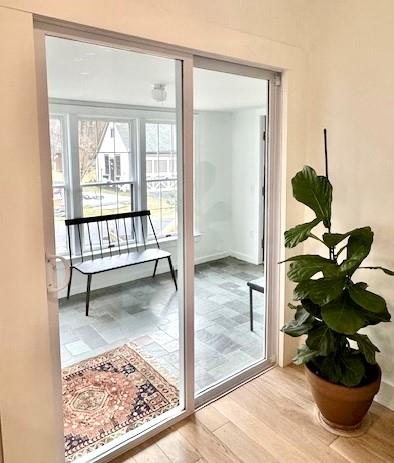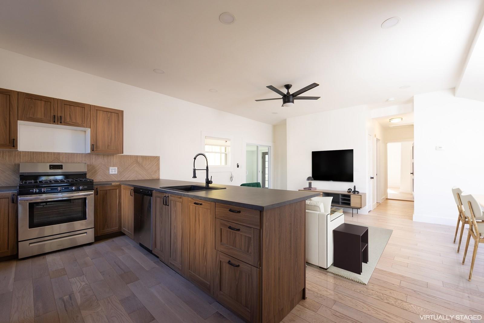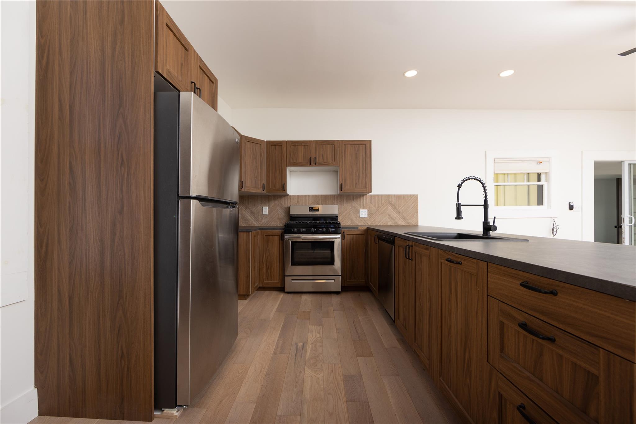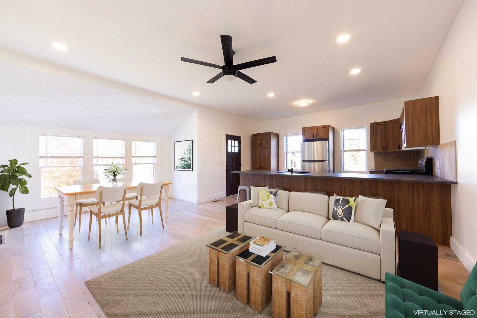 Located on a quiet block, 30 School Street is an easy stroll to Narrowsburg's beloved Main Street filled with lively coffee houses, bars, cafes and fashionable shops and galleries. But it also the perfect homebody cottage with a sturdy and simple layout, newly renovated and landscaped. From the large deck through a lovely sunroom, you will enter to the living/dining room which allows great flow for entertaining and is open to the kitchen with new Frigidaire appliances and a generous island prep space. There is a luxurious bathroom with huge stall shower off the hallway and a generously sized second bedroom with closet. The corner primary bedroom is also large and has a huge walk-in closet that includes a new stackable LG washer/dryer. Suffused with light inside and situated on a flat parcel with a big back yard (shed included), you will create four season memories, surrounded by the majesty of the Catskill and Pocono mountains in the beautiful Delaware River Valley