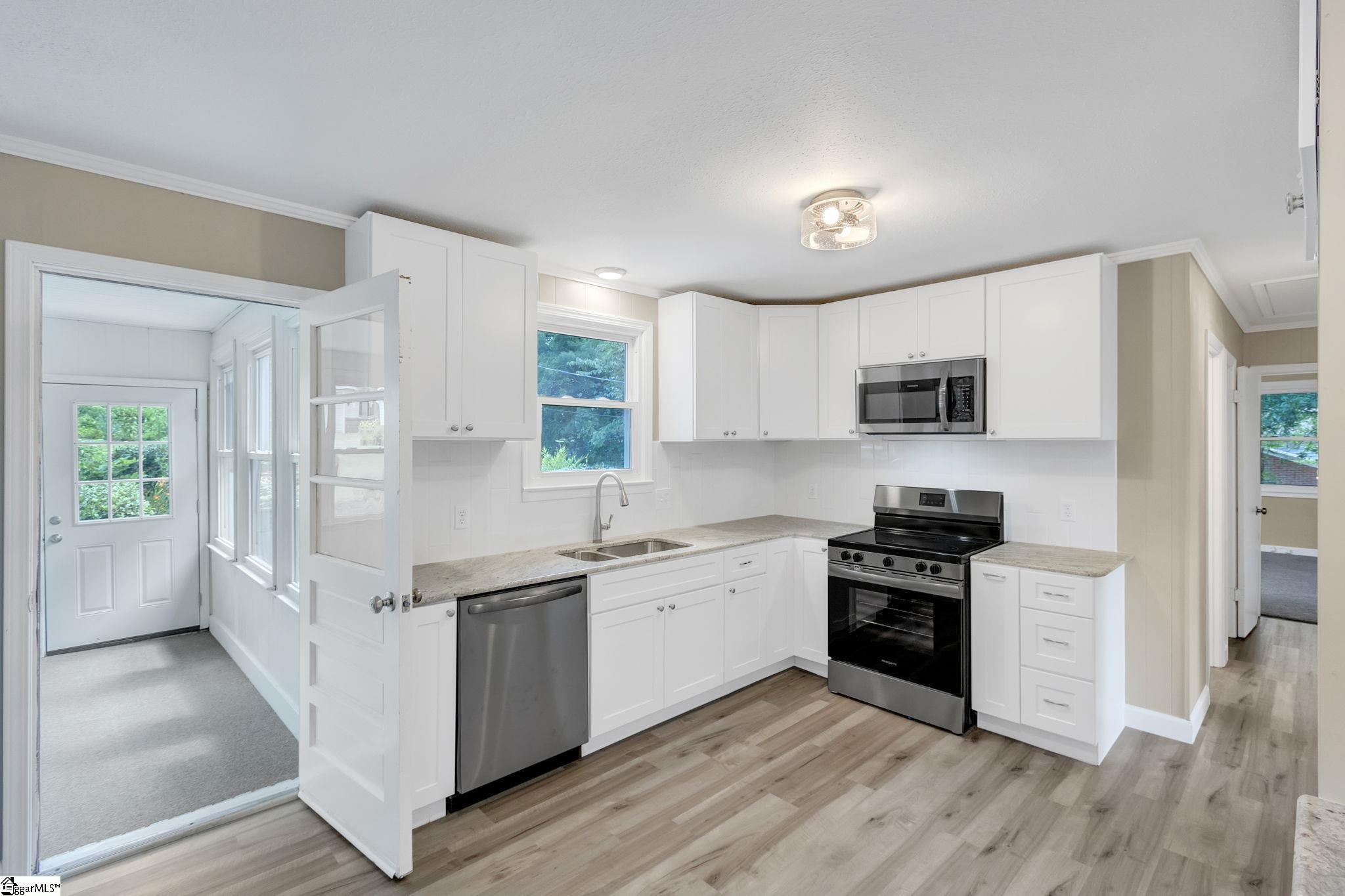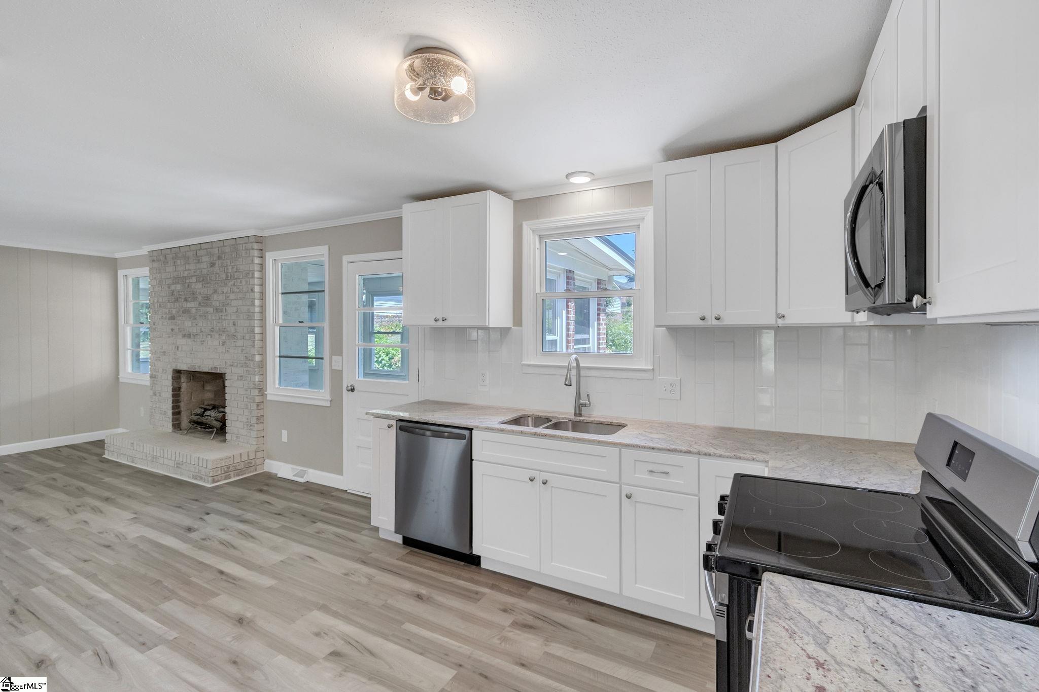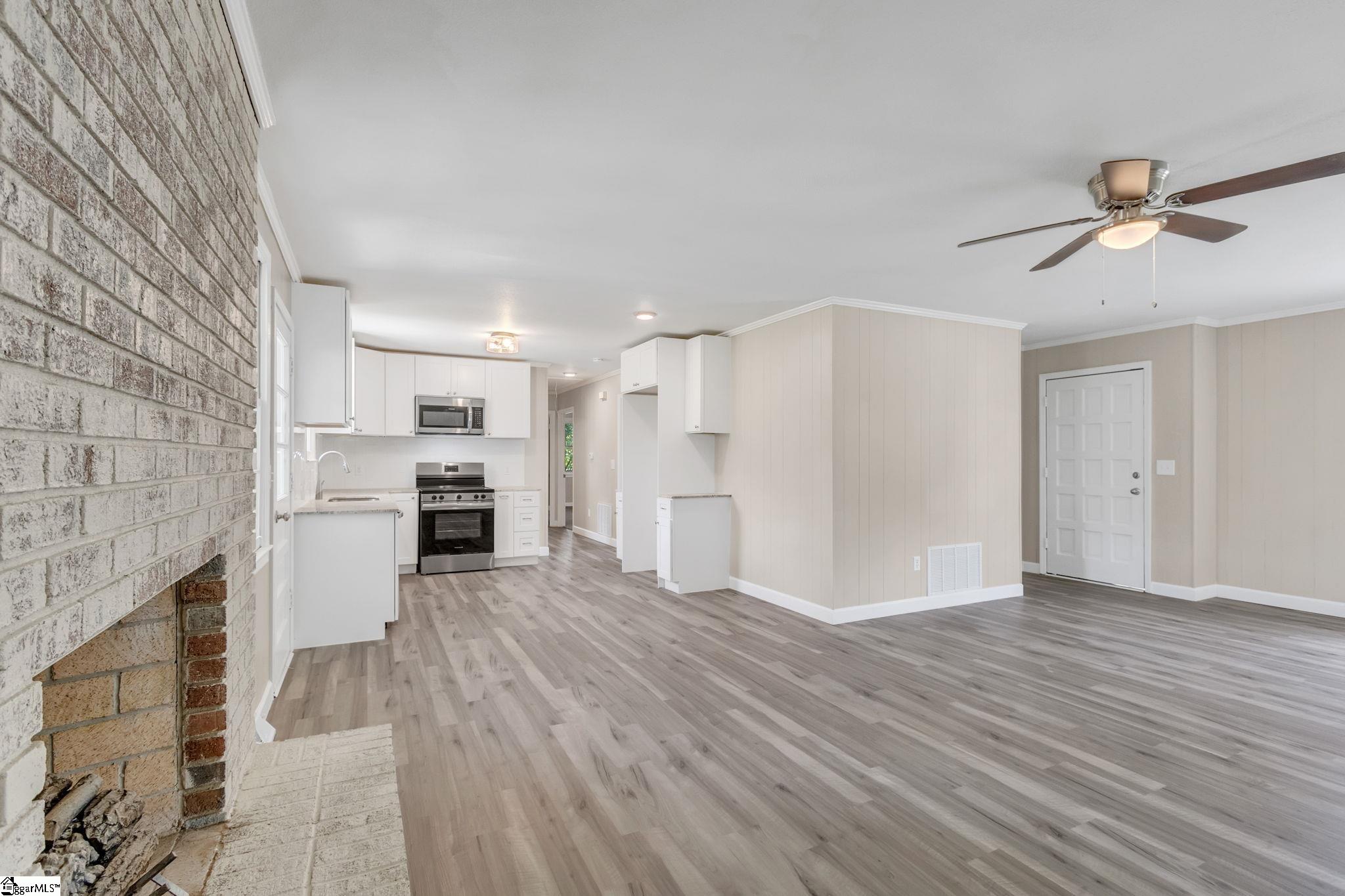 Welcome to 107 Carriage Lane! Nestled in a prime location just 4 minutes from Woodruff Rd and shopping and Southside private school, this remarkable property features a charming 3-bedroom, 2-bathroom brick home on over half an acre. Inside, you'll find a spacious living room, great room, and sunroom perfect for relaxation and entertainment. The home also includes an attached one-car garage, a 2-car open-air detached garage, and a 24x36ft workshop with an additional roll-up door. Two small sheds provide extra storage space. Enjoy the brand-new white kitchen cabinets and granite countertops though out. Upgraded luxury vinyl flooring, carpeted bedrooms, new appliances, and a fresh coat of paint complete the home. Don't miss out on this beautiful home!