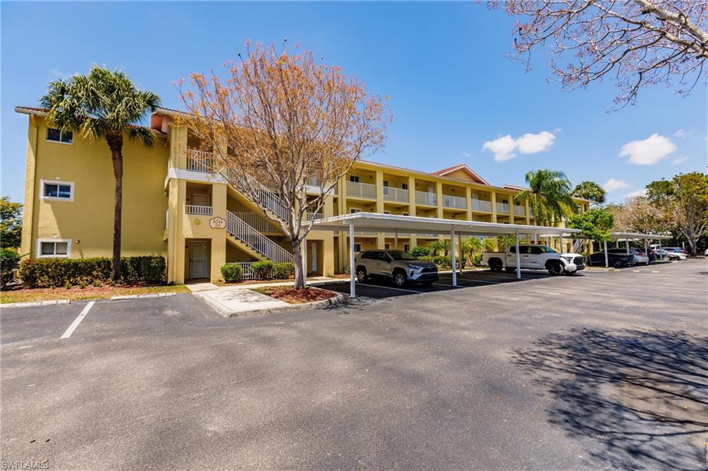 If you are looking for an affordably priced Naples condo with reasonable fees, this 2 bedroom 1 bath unit in ever popular Key Royal on Immokalee Road could be "THE ONE. " This 1ST FLOOR condo has a carport and an extended brick pavered patio with a lake view with western exposure, The home has been nicely updated with maple cabinets in a walnut finish, and newer countertops and stainless appliances including a brand new oven. There is new baseboard in the main living areas and the unit has been freshly painted. Key Royal has amenities including a large clubhouse, 24-hour exercise room, heated pool and spa, poolside tiki hut, car wash area, and garbage valet. This community also enjoys the benefits of an onsite property manager and gated entry. Key Royal is a well-maintained community in an excellent location with plenty of shopping, grocery stores, dining options and hospital/healthcare facilities less than 5 minutes away! It is also very close to A-rated schools, a public golf course, and I-75 access, and it is only 8 miles from the beach!