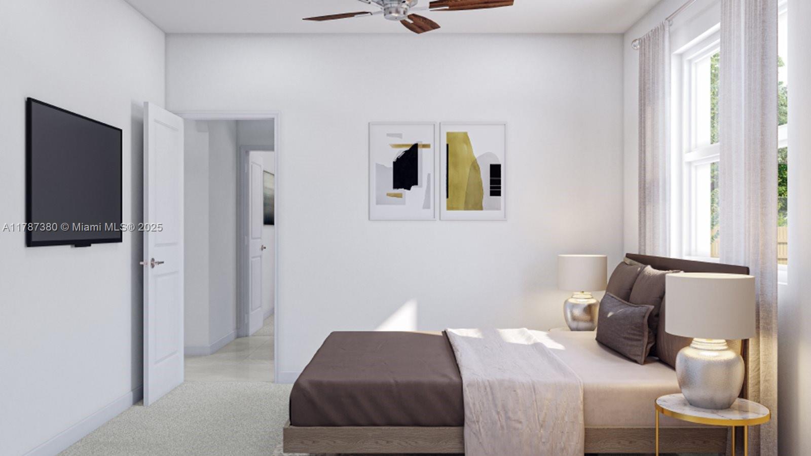 This single-story design features impact-resistant windows and a formal dining room at the end of the foyer, followed by a breezy open floorplan shared between the Great Room and kitchen that works to maximize the footprint of the interior. At the front of the home are three secondary bedrooms with easy access to a full-sized bathroom, while tucked away in a private corner is the serene owner’s suite.
