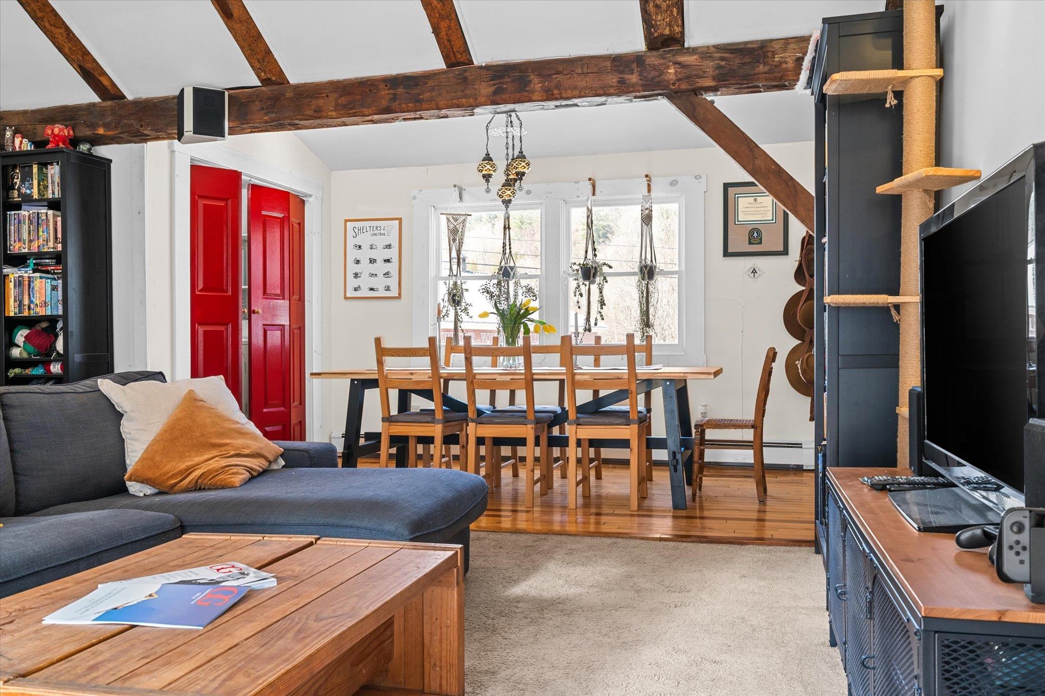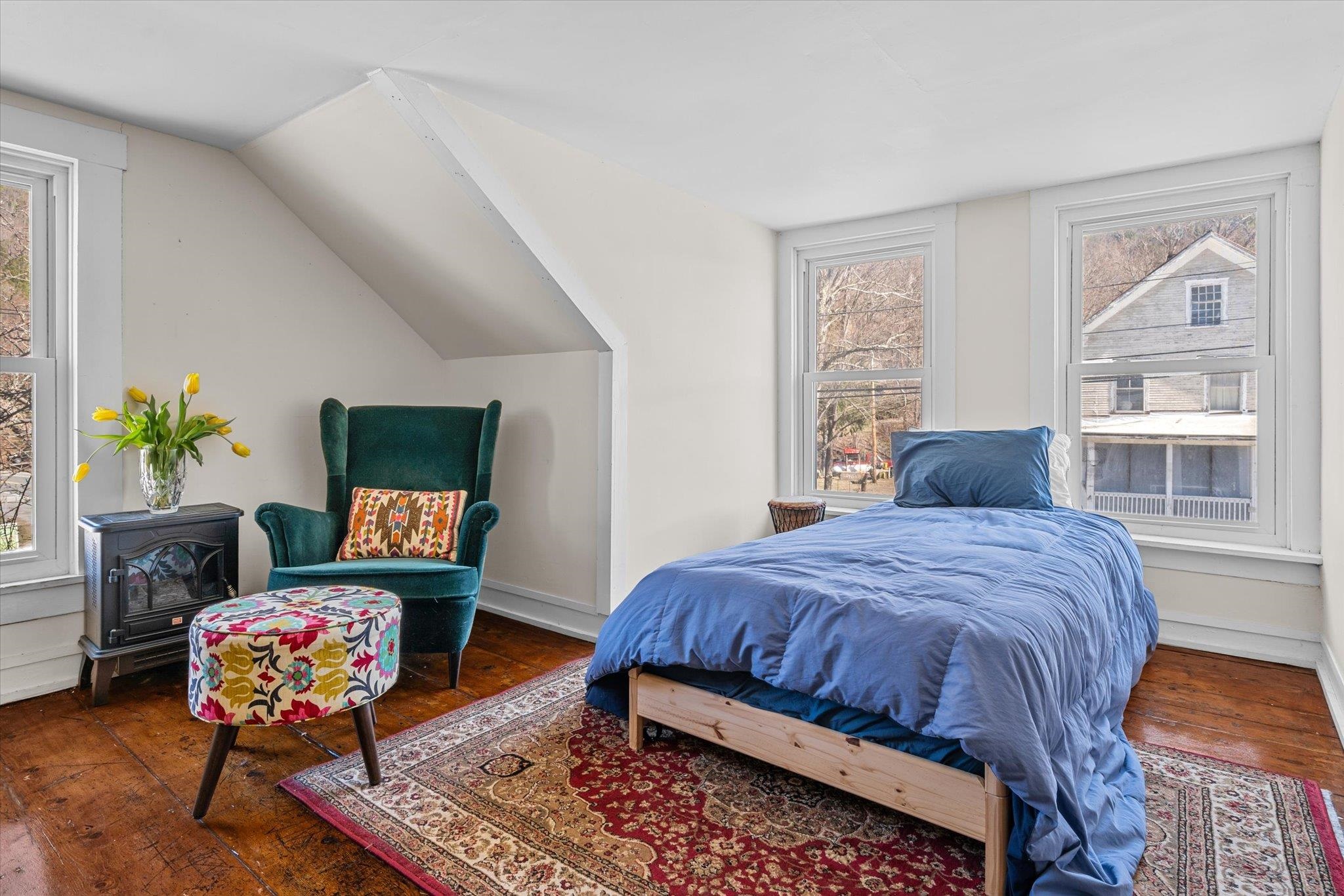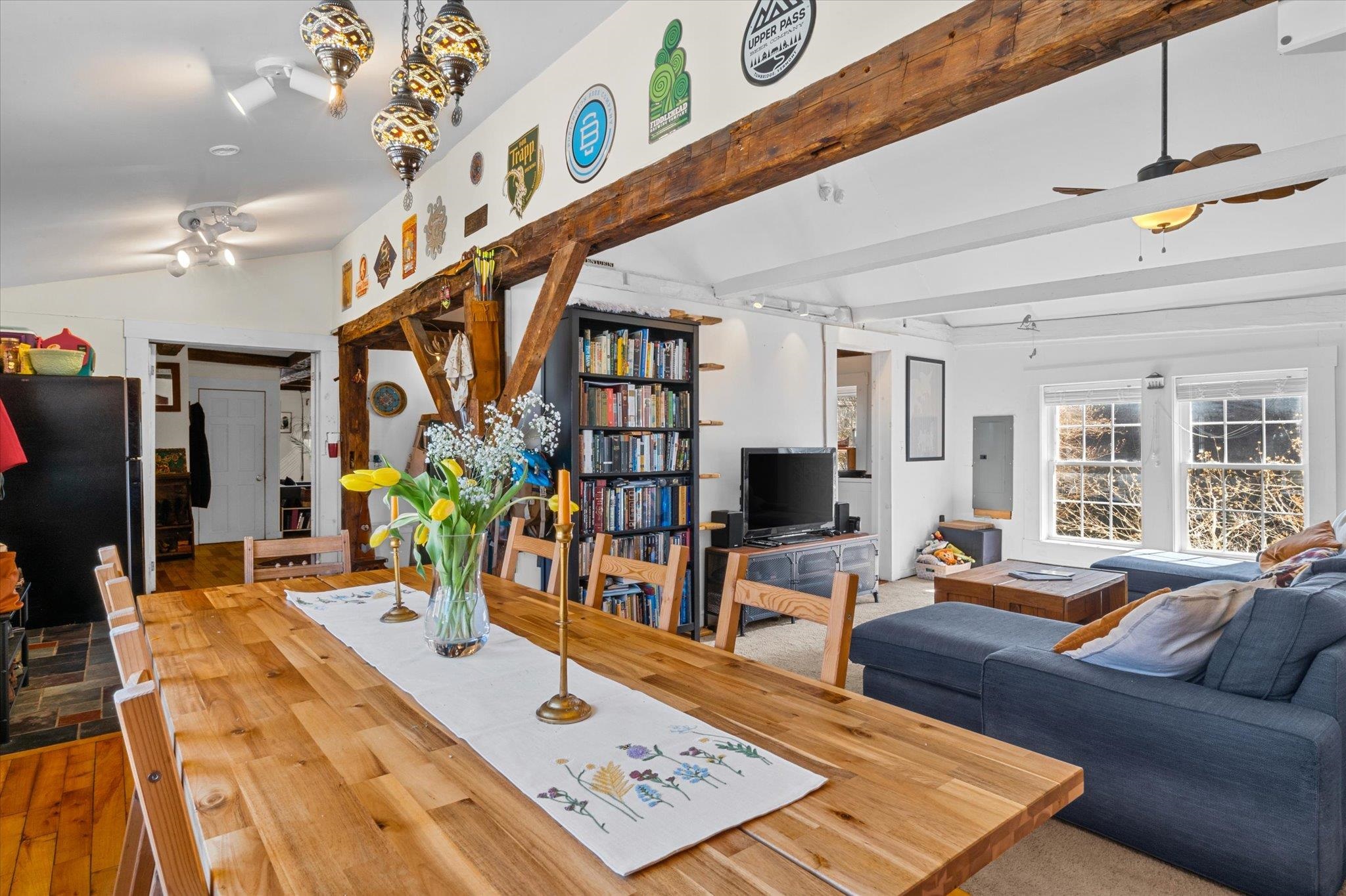 NEW PRICE! Experience the "Feng Shui" of the Pineapple Outpost in beautiful Rochester, a charming and vibrant town. This captivating early Post and Beam home presents an exquisite blend of historic charm and modern conveniences. Inside, discover wide pine floors, exposed beams, and a cozy fireplace in the main-level primary bedroom, each element showcasing the home’s rustic elegance. With two bathrooms and two spacious living rooms, the open layout is perfect for relaxing and entertaining family and friends. Venture upstairs to find two additional bedrooms, a generously sized walk-in closet, and a lovely reading nook adorned with built-in bookshelves—a perfect spot for unwinding with your favorite book. This home is not just about charm; it has outstanding modern amenities: solar panels, a Tesla battery for energy storage, foam insulation, high-speed internet, and access to top-notch public water and sewer services from one of Vermont's best municipal systems. For outdoor enthusiasts, Rochester is a true paradise! Join the Ridgeline Outdoor Collective to explore countless biking and hiking trails, or take a stroll to the White River for kayaking, tubing, and refreshing swims. Keep fit with a nearby fitness and yoga center, and indulge in culinary delights at Maple Soul, an award-winning farm-to-table restaurant steps from your front door. The best part? You’ll be in the midst of ski country, with both Killington and Sugarbush resorts 30 minutes away.