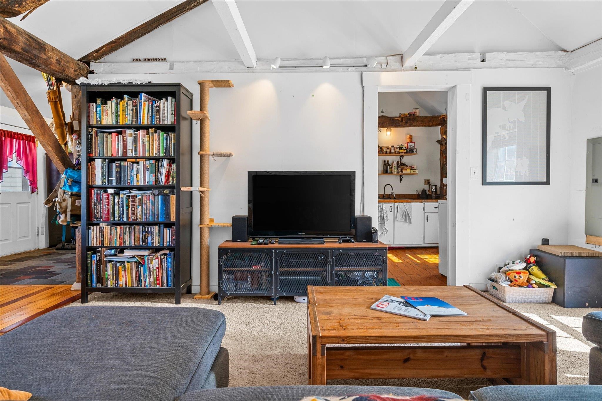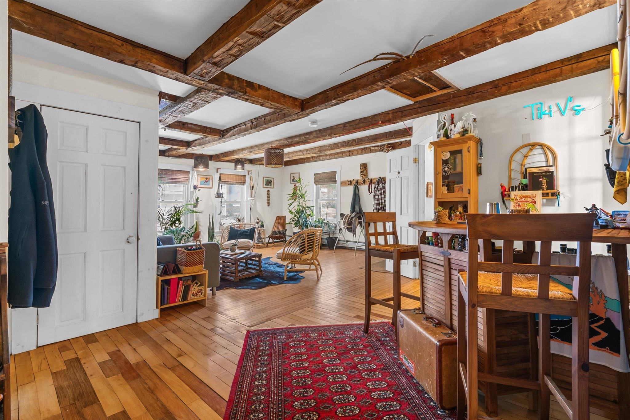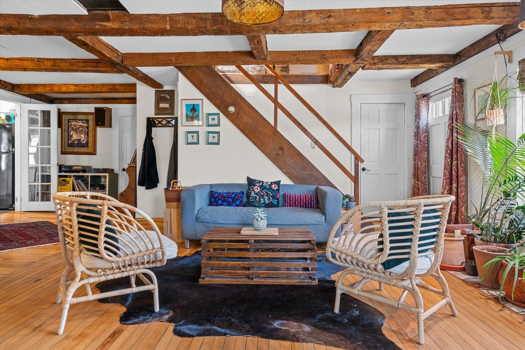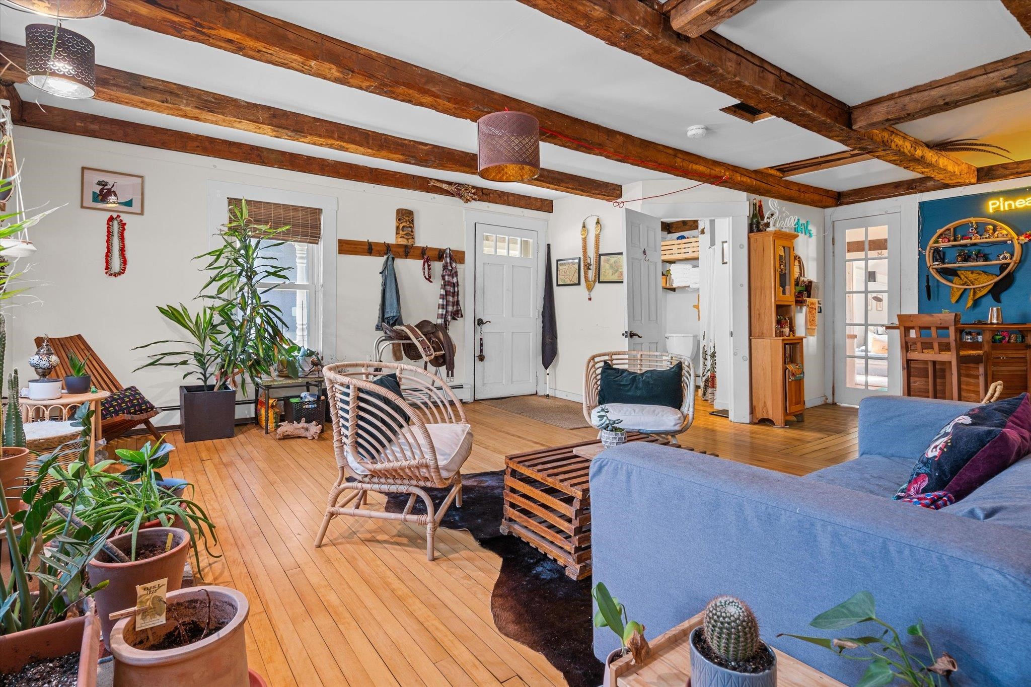 NEW PRICE! Experience the "Feng Shui" of the Pineapple Outpost in beautiful Rochester, a charming and vibrant town. This captivating early Post and Beam home presents an exquisite blend of historic charm and modern conveniences. Inside, discover wide pine floors, exposed beams, and a cozy fireplace in the main-level primary bedroom, each element showcasing the home’s rustic elegance. With two bathrooms and two spacious living rooms, the open layout is perfect for relaxing and entertaining family and friends. Venture upstairs to find two additional bedrooms, a generously sized walk-in closet, and a lovely reading nook adorned with built-in bookshelves—a perfect spot for unwinding with your favorite book. This home is not just about charm; it has outstanding modern amenities: solar panels, a Tesla battery for energy storage, foam insulation, high-speed internet, and access to top-notch public water and sewer services from one of Vermont's best municipal systems. For outdoor enthusiasts, Rochester is a true paradise! Join the Ridgeline Outdoor Collective to explore countless biking and hiking trails, or take a stroll to the White River for kayaking, tubing, and refreshing swims. Keep fit with a nearby fitness and yoga center, and indulge in culinary delights at Maple Soul, an award-winning farm-to-table restaurant steps from your front door. The best part? You’ll be in the midst of ski country, with both Killington and Sugarbush resorts 30 minutes away.